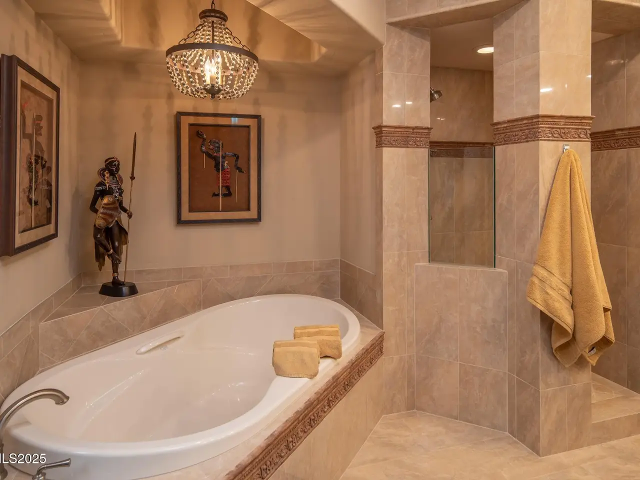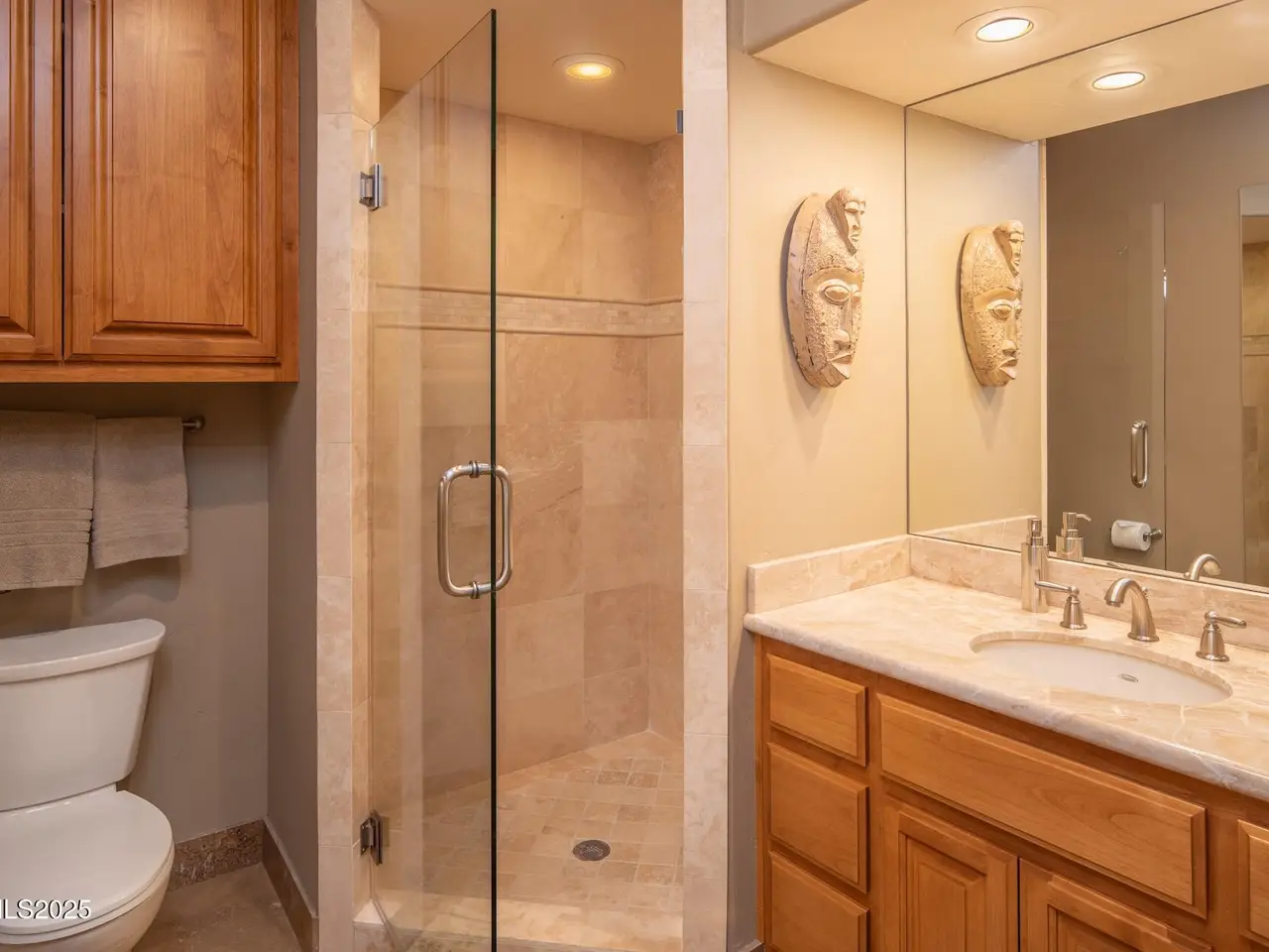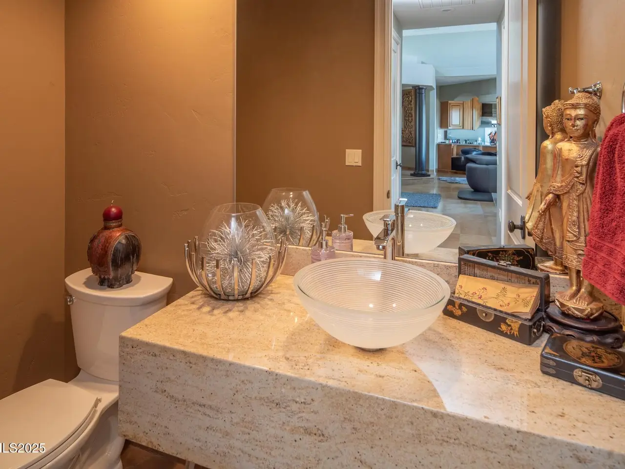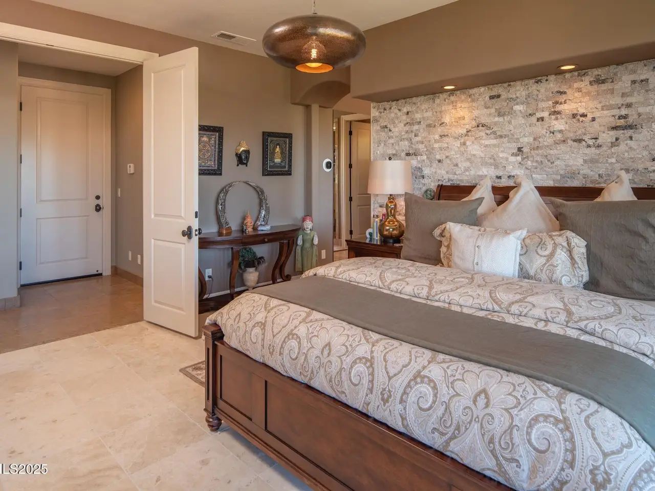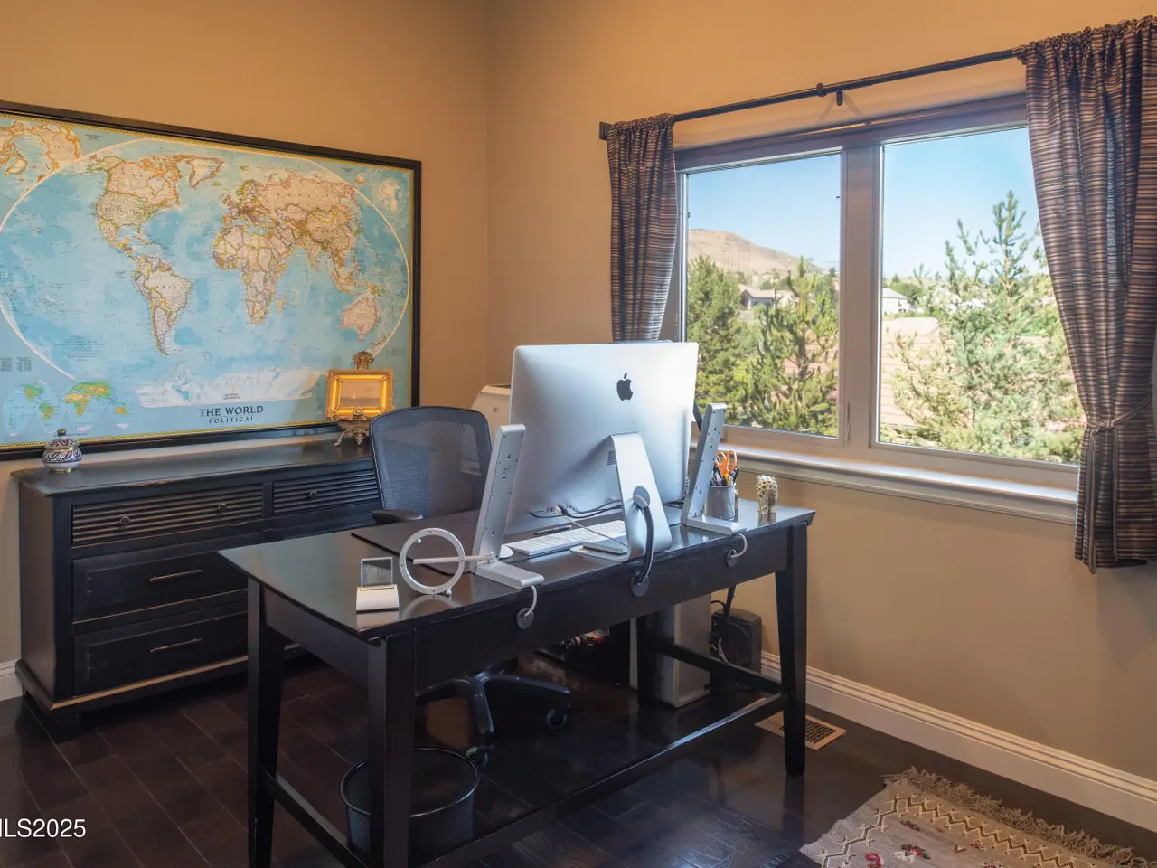 Perched above Reno behind the gates of Mountainshyre in the Caughlin Ranch community, 4905 Mountainshyre Road offers a lifestyle of elegance, security, and comfort. Completed in 2013, this 3904 sqft. custom home spans three levels and blends timeless architecture with modern conveniences, all while showcasing breathtaking views of the city skyline and surrounding mountains. You're instantly welcomed by the home's lush curb appeal, with its paver driveway that leads to the stone-accented exterior, fresh stucco finish, and quartzite steps, making a striking first impression. Inside, a travertine foyer welcomes you to soaring ceilings and windows that frame the panoramic views. The living room features a 20-foot vaulted ceiling, expansive windows, teak hardwood floors, and a dramatic three-sided gas fireplace. The dining room is defined by vaulted ceilings, faux columns, and an elegant chandelier. The open kitchen has slab granite counters, alder cabinetry, a six-burner Jenn-Air range, and paneled Jenn-Air refrigerator. A hexagonal breakfast nook offers unmatched morning views, while a large walk-in pantry with etched glass door provides ample storage. The first of two primary suites offers views from the private deck access, a stone fireplace, and beautiful travertine flooring. The spa-like bath features dual vanities, a soaking tub with mosaic surround, marble counters, and a custom-tiled shower. A large walk-in closet with alder built-ins leads to a reinforced safe room with keypad entry. The lower floor includes an entertainment room with recessed lighting, built in audio, and hardwood flooring with access to the outdoors. Down here, you'll find the second primary suite, currently being used as an office. It features hardwood flooring, blackout shades, and a sleek gas fireplace, and a warm wood paneled ceiling. The attached bath is just as luxurious as its upstairs counterpart and also features walk-in closets and second safe room. Three more downstairs bedrooms provide versatility, each with large closets for ample storage. They share a marble-appointed bathroom with alder cabinetry and walk-in shower. The top floor is dedicated to a home gym featuring commercial-grade flooring, mirrored walls, ceiling fans, and built-in audio. Step outside to a yard designed for year-round enjoyment. The expansive deck, accessed from the living room and primary suite, overlooks Reno's skyline and mountains. A built-in gas BBQ with granite counters makes it ideal for entertaining. The lower, covered patio provides a shaded outdoor retreat. Automatic sprinklers maintain the lush yard with apple, cherry, and plum trees, alongside the private vineyard with its 11 vines. The three oversized garages are finished with epoxy floors, built-in cabinets, and central vacuum outlets, and warm water hook ups for winter car washing. Behind its elegance, the home's advanced technical features include 3 Rheem HVAC units with individual zones, high-efficiency insulation, 75-gallon gas water heater plus 50-gallon electric tank with recirculating pump, hardwired Cat-6 internet and antenna system, 4 camera Lorex surveillance system with monitor, whole-house alarm and DrainVac central vacuum system. Much of this is tucked behind a 221 sqft utility room which is not included in the home's overall square footage. This estate represents a rare opportunity to own one of Reno's most distinctive properties, where craftsmanship, security, and beauty converge.