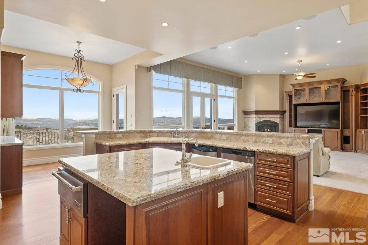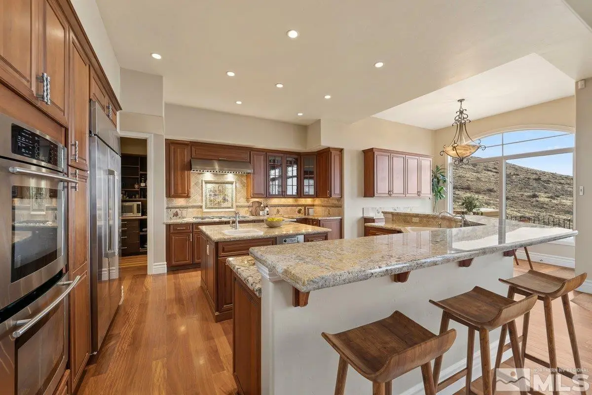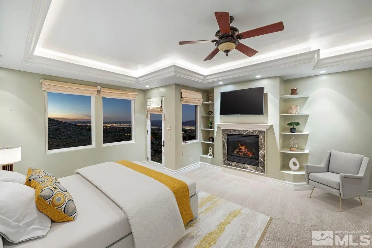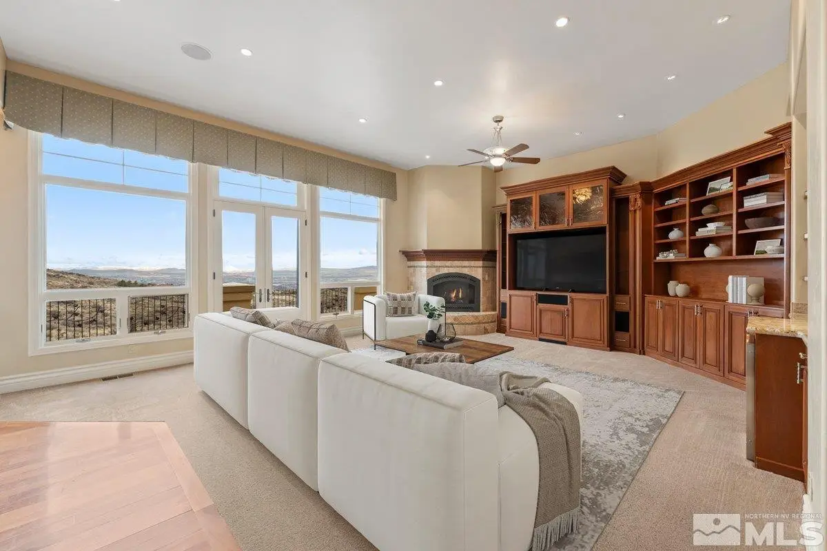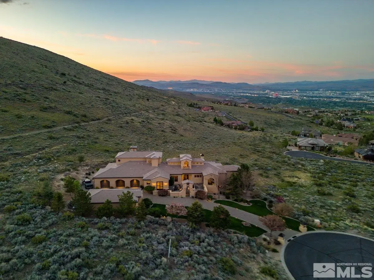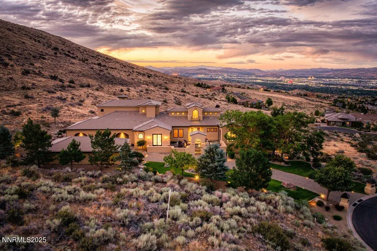 Nestled in the distinguished gated Arrowcreek community, discover a well-appointed estate with unparalleled appeal, where no details have been overlooked. From the breathtaking cityscape views to the idyllic perspectives of nearby mountains and two pro-level golf courses, this sprawling property was designed for comfortable luxury, offering ample space throughout while maintaining accessibility and privacy for all household members. Inside the manor, be greeted by one of Renos finest villas and a main level featuring a fully equipped chef's kitchen, formal dining room, and great room boasting a wet bar, fireplace, and custom cabinetry. The primary level also showcases a parlor room, full-sized laundry room, and three generous ensuite bedrooms, all three of which feature gas fireplaces. Inside an expansive primary suite, admire tranquil views spanning from bedroom to bathroom, where you'll appreciate a stunning fireplace, enormous walk-in closet, custom built-ins, luxurious sunken tub, and attached private office. Accessible by elevator or stairs, the vast lower level highlights an exceptional area for entertaining and day-to-day living with the finest touches, including a wine cellar, four bedrooms (three of which are ensuite), full laundry room, and an incredibly spacious living area that's perfect for gathering with the whole family. Take an elevator ride, or the stairs, to the homes top level and enjoy a suite that includes a spacious walk-in closet, private bathroom, gas fireplace, full-sized office with custom built-ins, and access to an upper balcony, where youll be awestruck by the panoramic views. This property includes both an attached four-car garage and detached three car garage, providing exceptionally flexible areas for car enthusiasts, golf simulator aficionados, athletes-in-the-making, and more. The estate also boasts ample storage space, a Generac generator, fire sprinklers around the home's exterior, a Lutron system, and more. This radiant retreat isnt just a place to call home, its the embodiment of extraordinary living inside and out. Come and enjoy all of the amenities that living in Arrowcreek provides! The Residence Center includes 3 swimming pools, year-round hot tub, fitness room with equipment, tennis courts, pickleball courts, basketball court, bbq and picnic areas, coffee bar and meeting rooms. There are also paved walking trails and parks throughout the development. Arrowcreek is home to a phenomenal 36 hole private country club with different membership opportunities. Located only approximately 35 minutes from Lake Tahoe and around 20 minutes from the Reno/Tahoe Airport. (Disclosure, a portion of the home is virtually staged.)