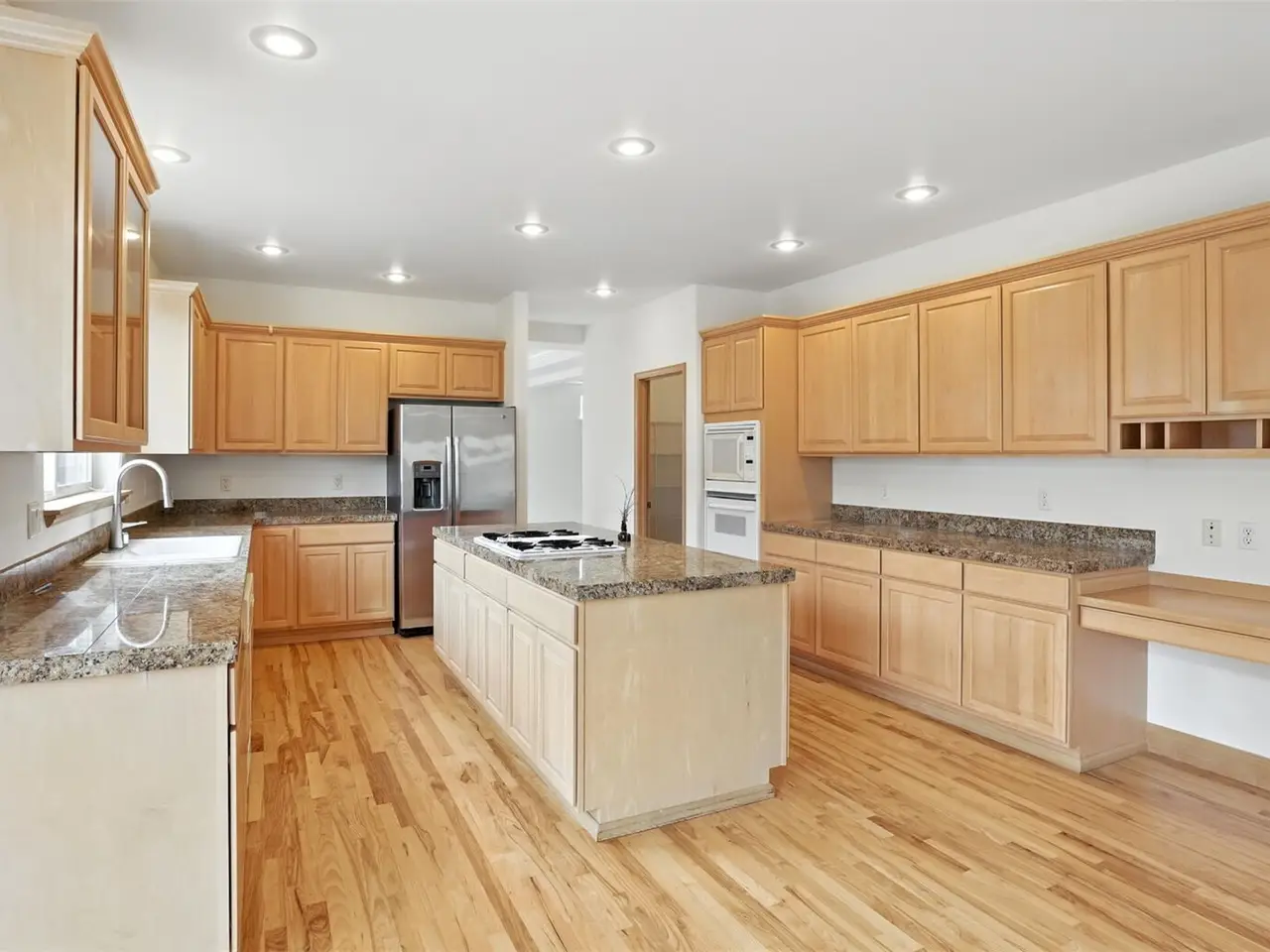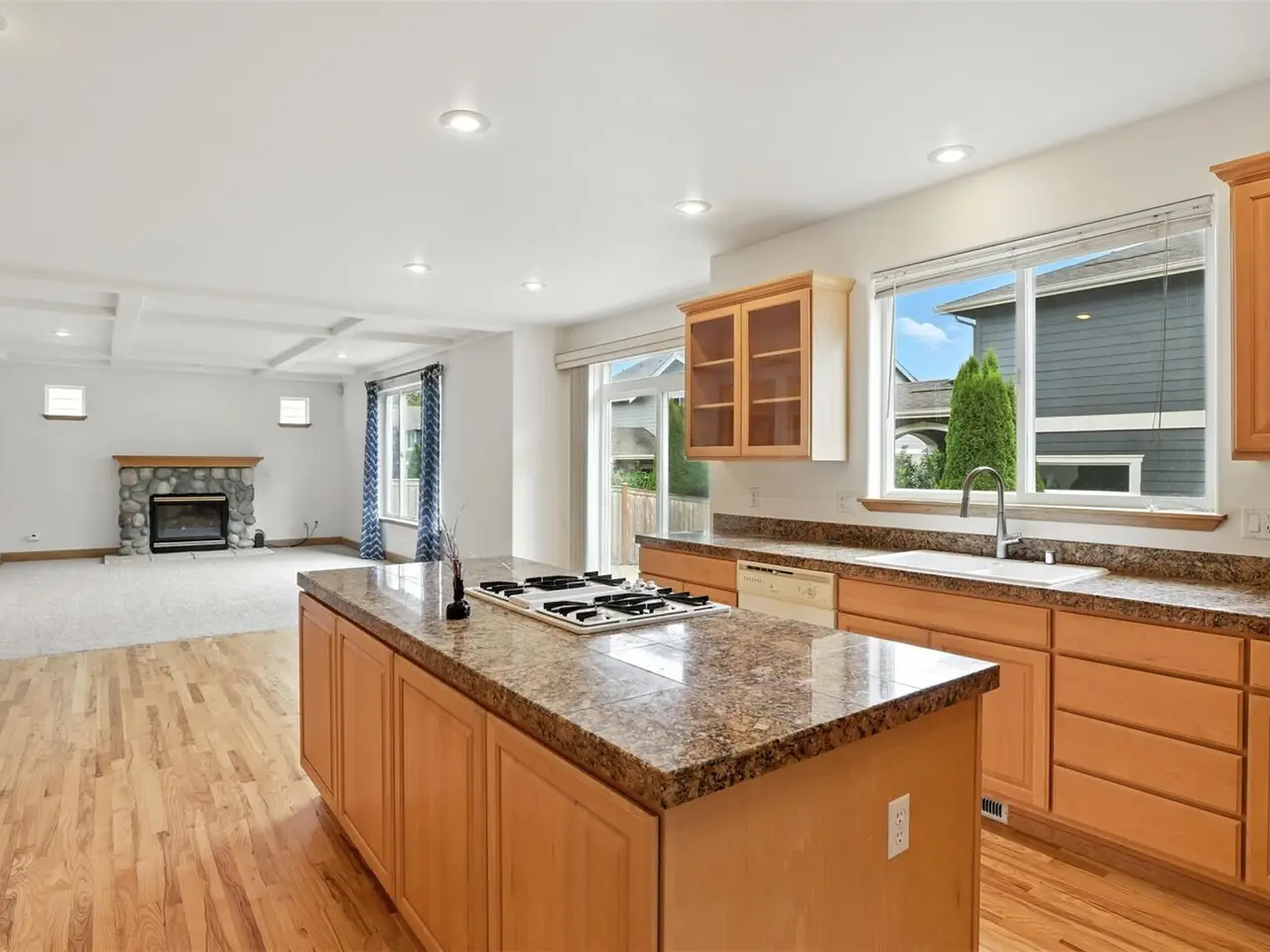 The Parks in Fairwood. Immaculately maintained delightful home w/6 bedrooms, 2.75 bathrooms, 3 car garage w/ideal open floor plan filled w/natural light. Main floor offers chef's dream kitchen w/gas stove on island, formal dining room, living room/family room w/gas fireplaces & attached 3/4 bath-ideal office or guest suite. The upper level offers 4 generously sized bedrooms. The primary suite has spacious walk-in closet & Spa like ensuite. Fully fenced level back yard oasis is perfect for entertaining. Sited on cul-de-sac w/parks & trail nearby. Home improvements 2022 included roof/gutter/siding replacement, new exterior/interior paint & main level wooden floor refinishing, fence w/ gate 23. Premium carpet/pad and tile 2024/5. Inspected