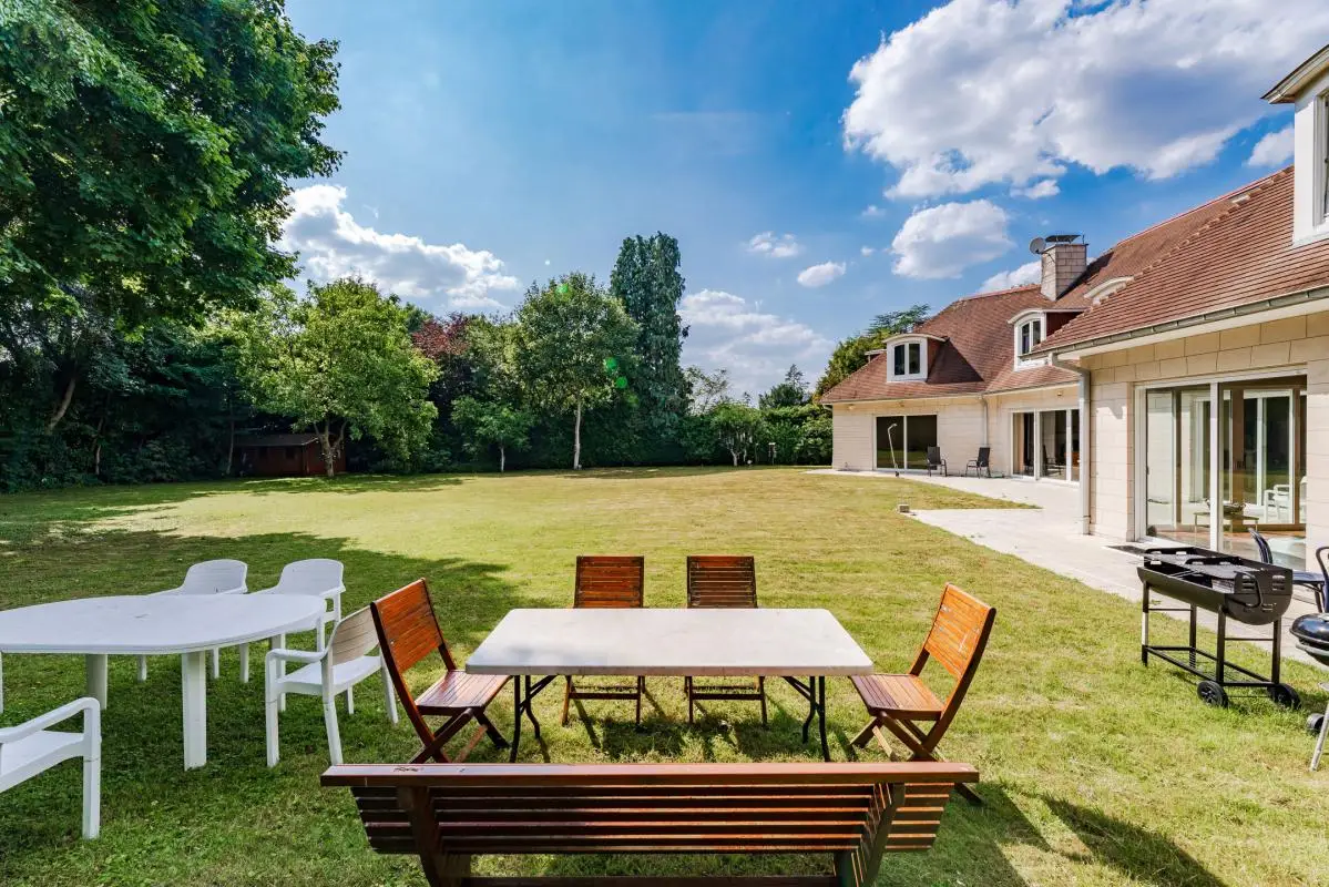On the edge of Uccle, in a quiet, leafy residential setting, attractive family villa built in 1985, enjoying a magnificent south-west-facing garden (plot of 25.67 ares). With a built area of 600 m², it offers spacious 85 m² reception rooms opening onto the terrace and garden, a fully-equipped kitchen with breakfast area, 5 bedrooms including a large master suite, and 4 bathrooms. A vast converted basement includes a gym with bar and cloakroom. A 3-car garage completes the property. PEB: B A bright, well-designed villa in a peaceful setting, within easy reach of Uccle's amenities and ideal for a luxury family life.