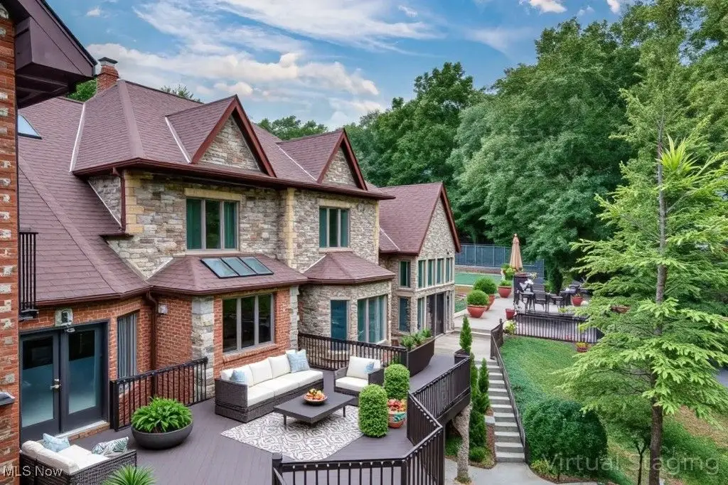 Resort-Style Living in a Magnificent Gated Estate! Experience the epitome of luxury in this stunning gated estate, featuring a Stone and Brick European manor set on over 3.5 acres, with picturesque views of a serene pond and lush landscape. Recently renovated within the past year, this light-filled home boasts over 10,000 square feet, designed perfectly for grand-scale entertaining and opulent living. As you enter, you'll be greeted by a dramatic foyer that leads into a magnificent two-story grand hall, complete with a stately fireplace and expansive windows that frame the breathtaking surroundings. The gourmet kitchen, a chef's dream, opens to the family room and is equipped with every amenity imaginable, featuring central island, stone countertops, stainless steel appliances, and a fabulous octagonal morning area. The spacious second floor offers two primary suites, each with fireplaces and luxurious updated bathrooms. One suite includes multiple balconies, a coffee bar, and walk-in closets, while the other boasts its own circular staircase leading to a viewing tower. Additionally, there are three more bedrooms, each with refinished wood floors and modern bathrooms. The walkout lower level provides an exceptional entertainment space, featuring a home theatre, full kitchen, bar, a billiard room with a fireplace, and a redwood sauna. Additional highlights include Commercial-grade mechanical systems, luxurious saltwater pool complex, first-floor exercise room or guest bedroom, 5+ car garage, guest apartment, and weather-sensitive skylights. The outdoor area is equally remarkable, offering multiple decks and patio spaces, an outdoor fireplace, a covered lanai, waterfall, stocked pond with a floating dock, a tennis court with an integrated refreshment station, and a circular motor court. This meticulously maintained home is ready for its new owner, awaiting those who appreciate the finest in resort-style living.