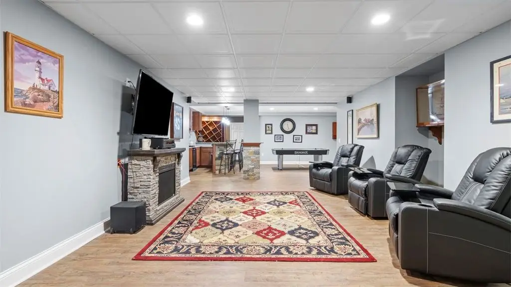Gorgeous home with unique floor plan - not cookie cutter! MIL Suite with private entrance on first floor, very open with plenty of closet space. Saltwater pool and outdoor hot tub included with beautiful landscaping, and fenced in yard. Large open kitchen and dining area, wonderful for entertaining. Four bedrooms upstairs, including master with ensuite bath and expansive closet. 2000 Sq Ft finished basement with lots of storage closets and full bath. Includes humidor room, wet bar, pool table room and workout room. Three car garage with room for 5 cars in the driveway. MIL Suite was used as successful AIRBNB. Spiral staircase on second floor leads to private space for office, meditation or yoga. NO HOA! Driveway is HEATED! Do not miss the opportunity to see this wonderful home!