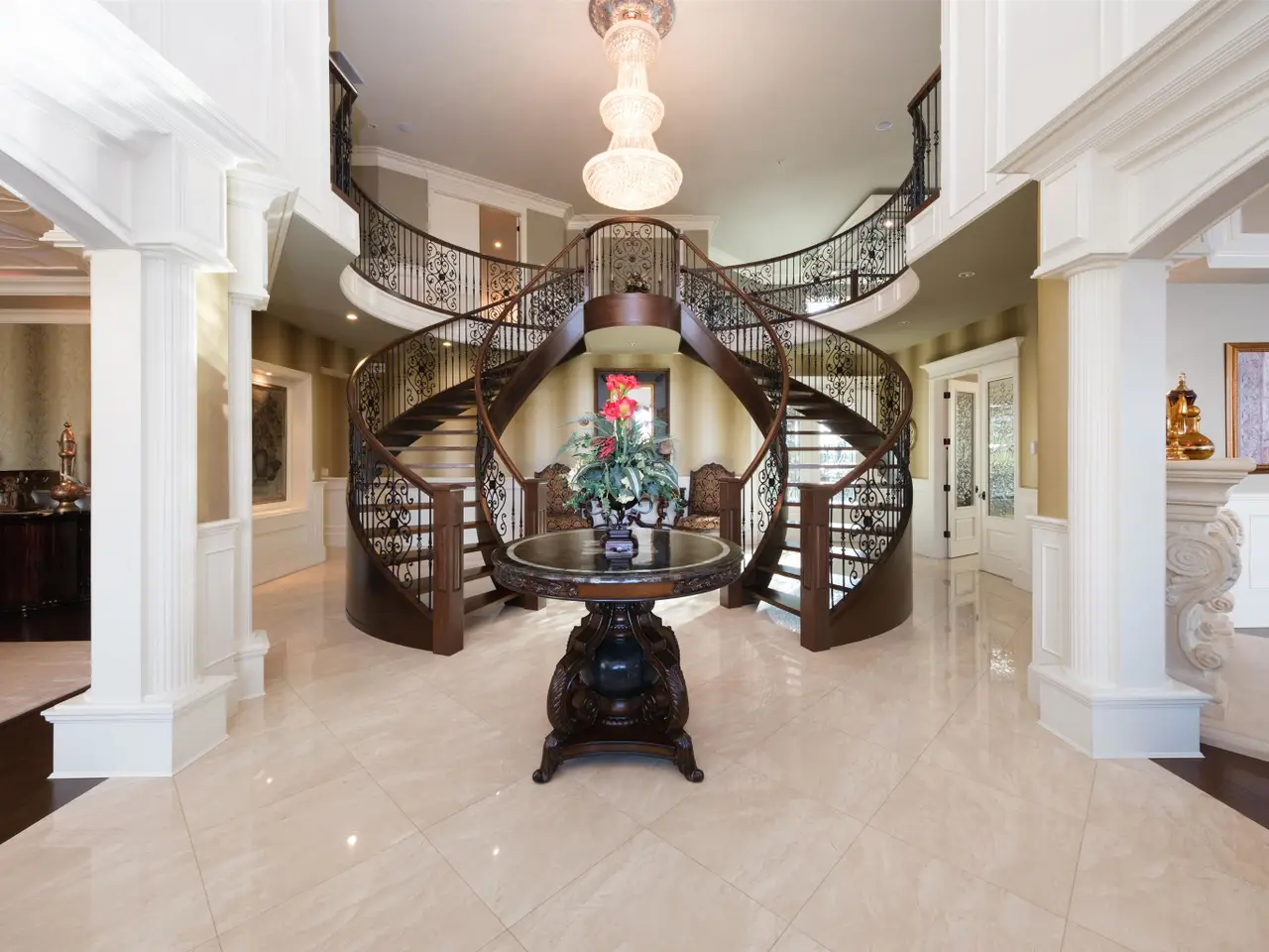 RARE—Discover a bespoke custom home across nearly 2 acres, showcasing over 9,000 sq. ft. of lavish living space. Enter a world of grandeur through a majestic foyer, highlighted by an iconic floating staircase. Beyond, a sanctuary for entertainment unfolds: a chef's dream kitchen, a warm family room, and a patio complete with a built-in BBQ, all curated for unforgettable soirees. The elegant living and dining rooms, alongside a refined piano alcove, radiate sophistication. Revel in top-tier finishes: marble floors, cambria countertops, and sub-zero refrigerators. The cinematic home theater, stylish bar, and chilled walk-in wine cellar set the stage for lavish evenings. Each of the 5 expansive bedrooms boasts a beautiful ensuite. Experience luxury firsthand, book your private tour today!