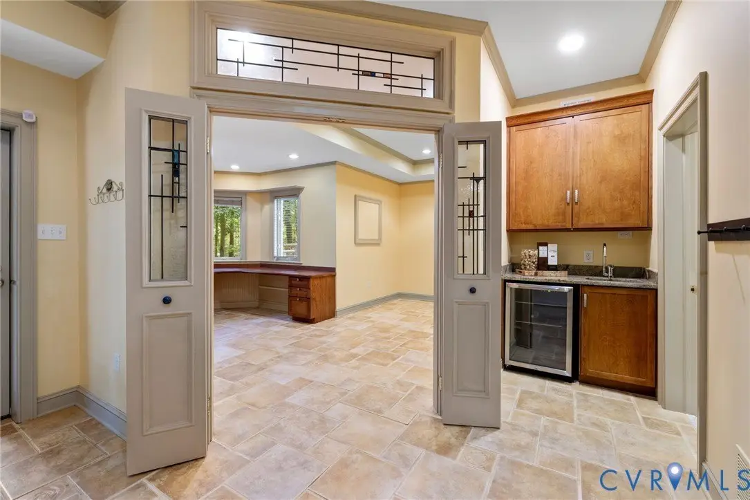 Country living with easy access to all of Richmond! This beautifully maintained brick home on nearly an acre in Lower Tuckahoe features 9' ceilings, marble tile entry floors, newly refinished Oak floors (2024), and recessed lighting throughout the main level. The eat-in kitchen is well-appointed with 5-burner gas range, stainless appliances, glass & stone tile backsplash, a walk-in pantry and is open to the family room with gas fireplace. An adjacent living room with 2-story windows and wet bar makes hosting large gatherings effortless. Tucked away from the main living space is a first-floor primary suite with sweeping views of the grounds and glass door leading to the rear deck. A generous bathroom and dressing room complete the primary. The second level boasts an additional primary suite and 2 more bedrooms with Jack & Jill bathroom complete with custom Wild Black Cherry cabinets and tile accent walls. All newer carpet on second level (2021). Retreating to the fully finished walk-out basement reveals a second family room with gas fireplace & custom built-ins, reading nook, office, wet bar, dry bar, 5th bedroom, and full bathroom. All newer carpet in daylight basement (2021). Continuing out to the patio a professionally designed landscape is punctuated with azaleas, several bonsai trees, and hardscaping. 6 minutes to Rte. 288, 11 minutes to I-64, 12 minutes to Short Pump, 23 minutes to Scott's Addition/Museum District/Fan.