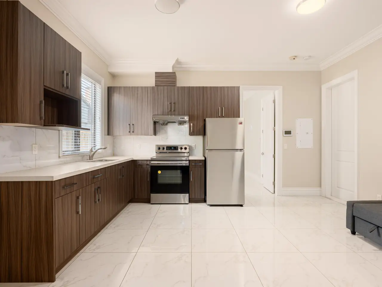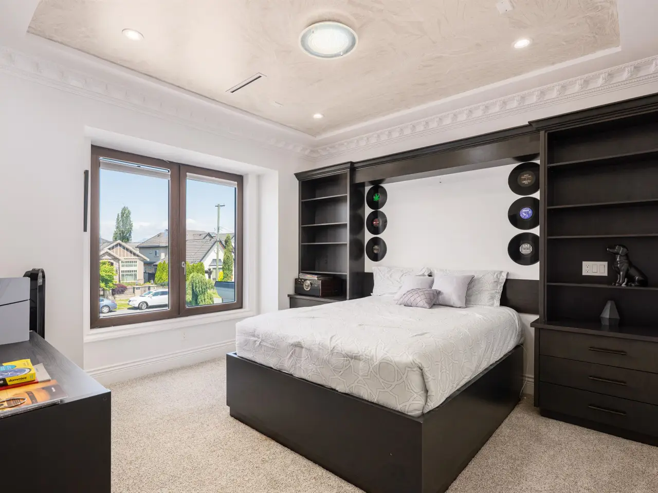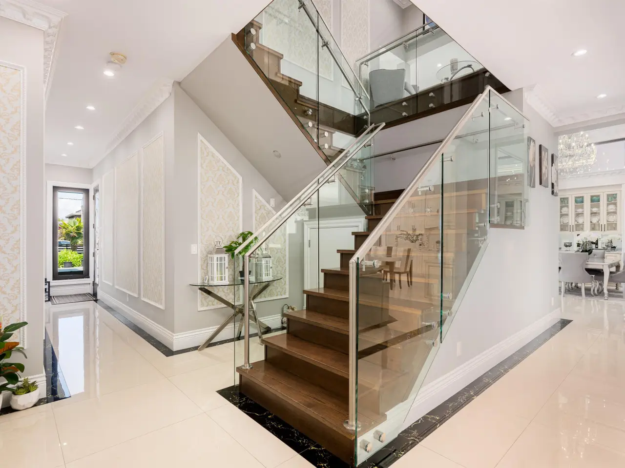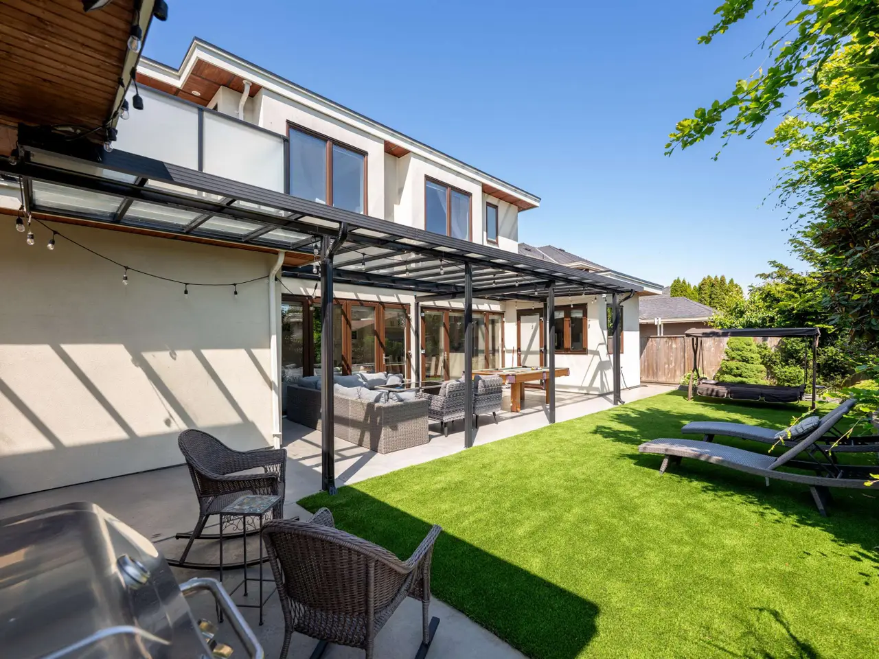 Better than new! This stunning south-facing custom home sits on an 8,713 sqft lot on a quiet street, featuring top-quality craftsmanship throughout. Soaring ceilings in the living and dining areas. Bright and cozy south-facing family room with large German folding patio doors. Main floor media room with full bath can be converted to an ensuite. Legal suite offers great mortgage helper potential. Upstairs boasts four spacious ensuite bedrooms. Equipped with intercom, built-in speakers, and security system. Close to shops, banks, restaurants, schools, transit, and more. A must-see!