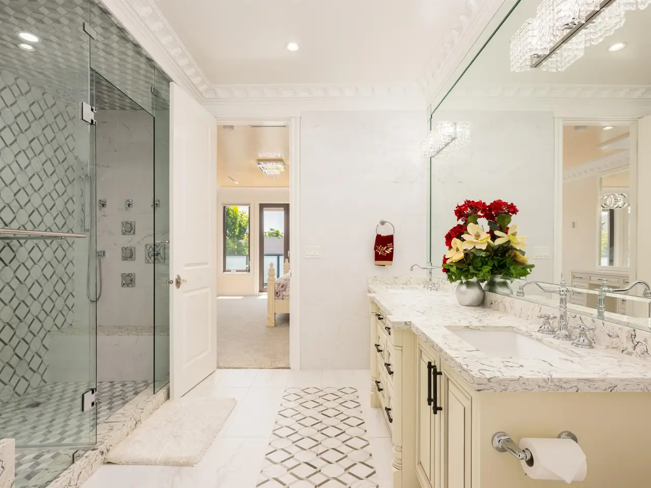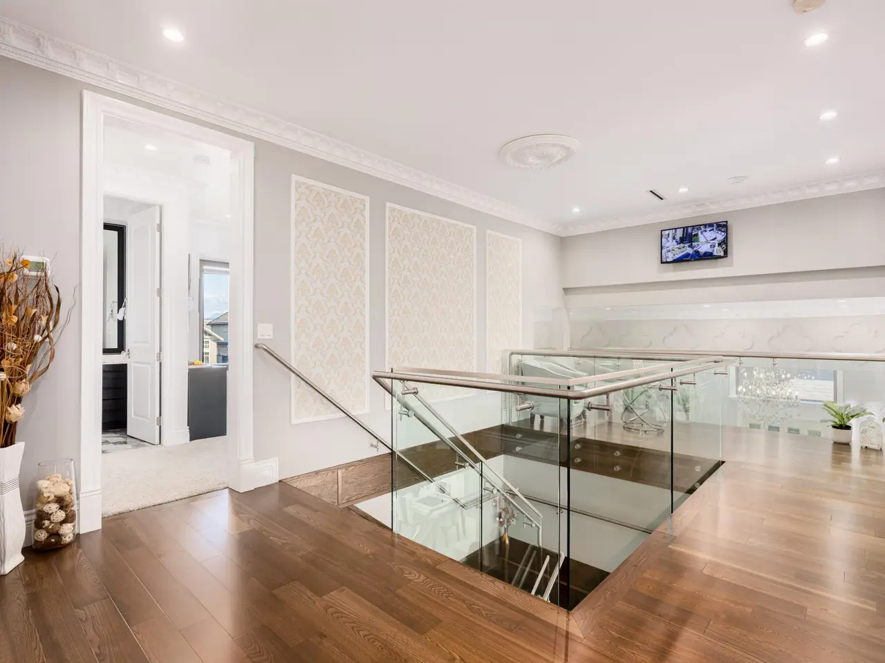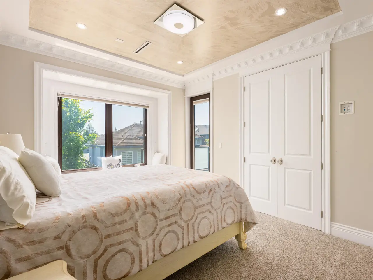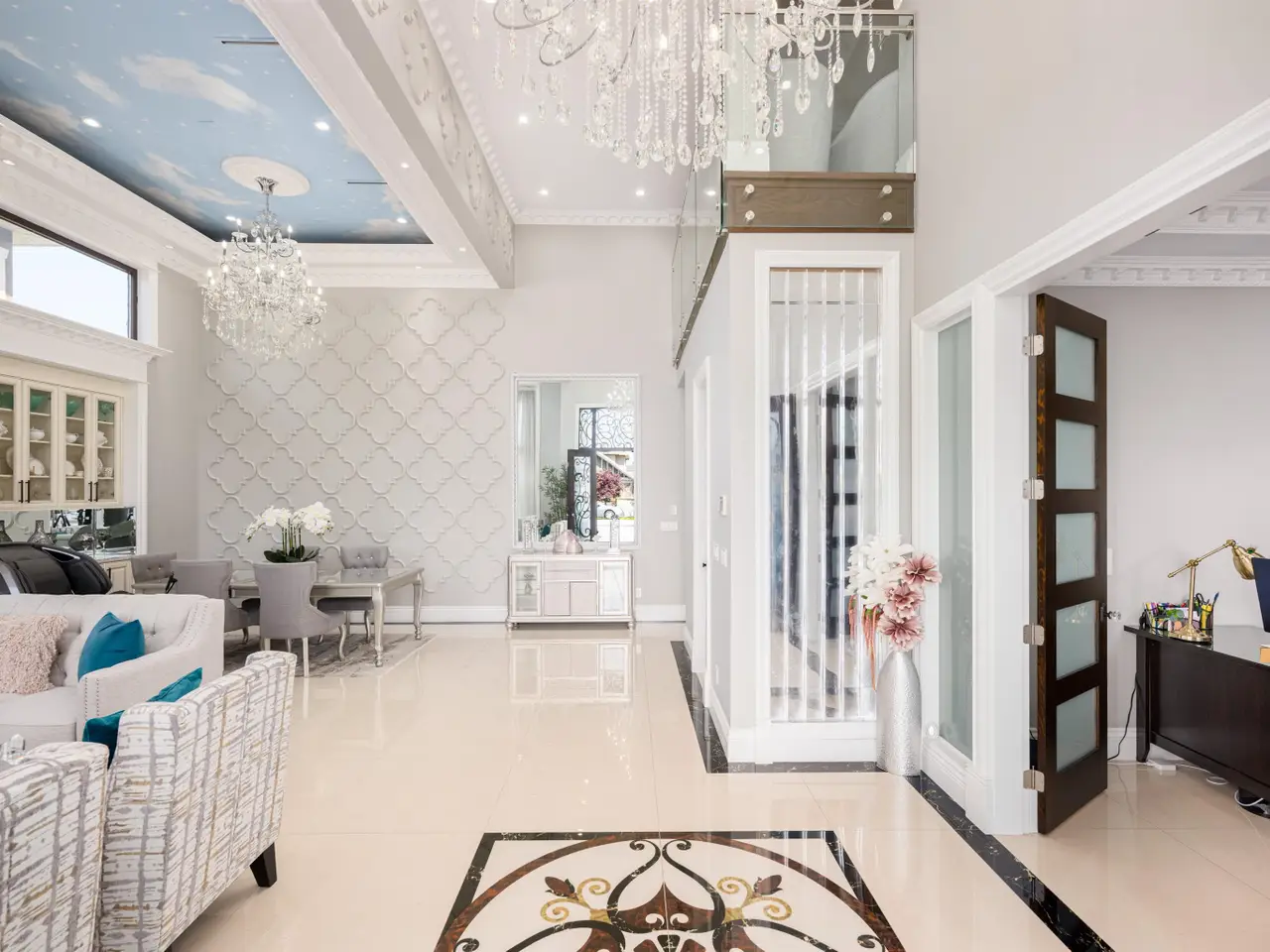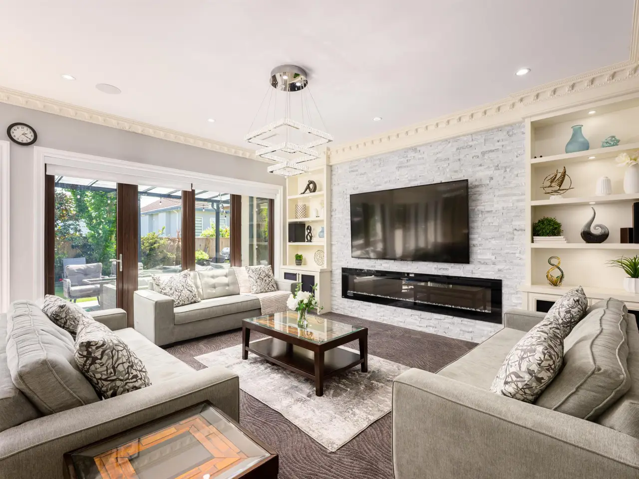 Better than new! This stunning south-facing custom home sits on an 8,713 sqft lot on a quiet street, featuring top-quality craftsmanship throughout. Soaring ceilings in the living and dining areas. Bright and cozy south-facing family room with large German folding patio doors. Main floor media room with full bath can be converted to an ensuite. Legal suite offers great mortgage helper potential. Upstairs boasts four spacious ensuite bedrooms. Equipped with intercom, built-in speakers, and security system. Close to shops, banks, restaurants, schools, transit, and more. A must-see!