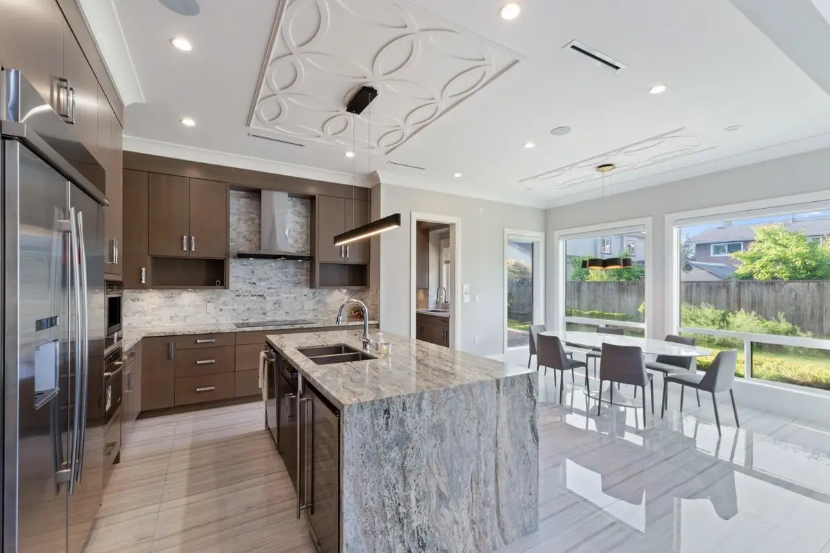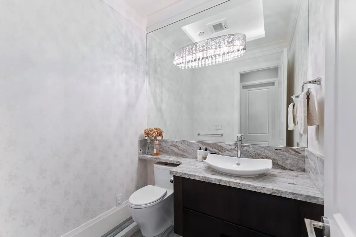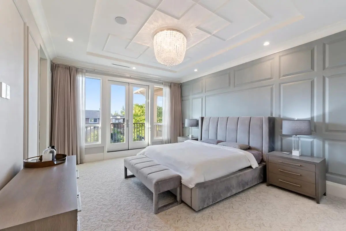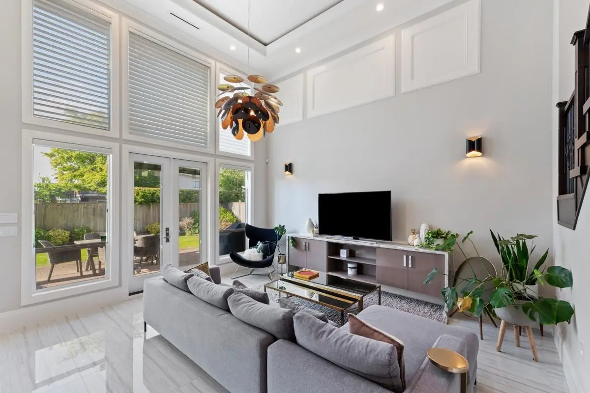 Modern French-inspired home in Richmond's prestigious Riverdale. Offers 5 beds & 6 baths, all bedrooms with ensuites, including one on the main level for added flexibility. Features a grand double-height family room, dedicated media room perfect for movie nights or karaoke, a spacious entertaining kitchen with premium built-in appliances, plus a separate wok kitchen for the culinary enthusiast. The luxurious primary suite includes a spa-like French-inspired bathroom, huge walk-in closet & private balcony. Efficient upper-level layout ensures comfort for the whole family. Well-maintained, sunny backyard ideal for kids & pets. Enjoy a private yet convenient lifestyle near Richmond Centre, top schools, parks, shops & restaurants—perfect for growing families or multi-generational living.