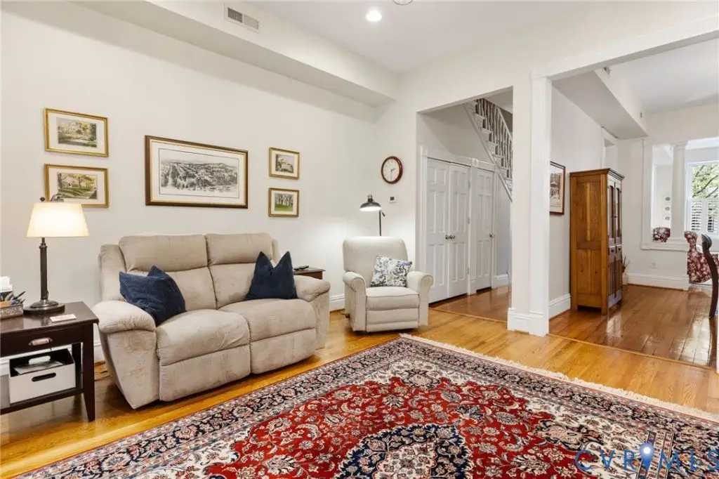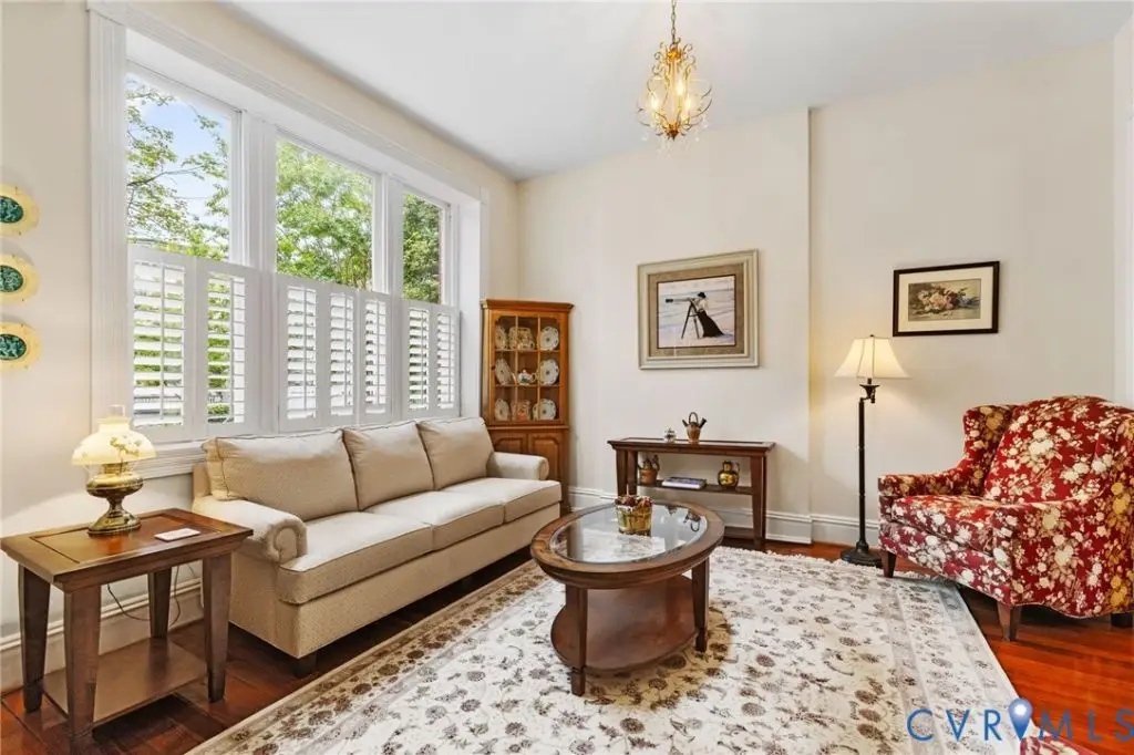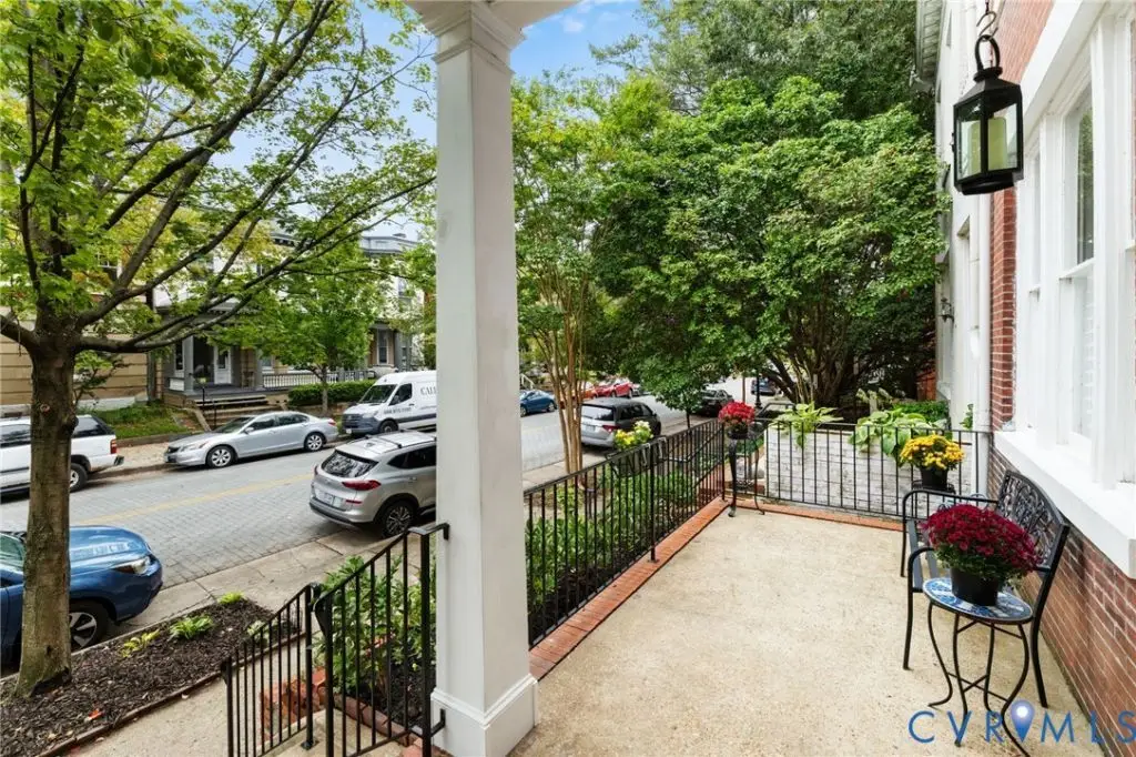 Welcome to this stately Fan District detached row home which exudes historic charm and is combined with many contemporary updates. Perched on the Monument Avenue side of the street, 2231 W Grace is elegant with solid brick walls and a welcoming front porch on which to sit and enjoy your neighbors, the Cityscape, or a cup of coffee. Upon entry are expansive and clear sight lines to the back of the home, as well as an exposed brick wall that runs from the foyer to the back of the home on the second floor making for quite a dramatic effect. The front living room is ideal for hosting lively conversation with family and friends after enjoying a meal in the enjoining dining room.Both spaces boast high ceilings, original wood floors, and a fireplace in the dining room which add to the character of this lovely early 1900's built home. Beyond the dining room is the family room allowing for casual living with lots of natural light, a powder room and is open to the kitchen. Need to have plenty of cabinets for all of your kitchenware?Look no further than this high quality cherry cabinet filled kitchen!You will enjoy baking and cooking for friends and family w/the Electrolux double ovens, Five Star four burner gas stove, brand new microwave, Bosch dishwasher, and two beverage fridges surrounded by attractive granite counters & high top bar. The second level is where you will find your sumptuous primary suite including soaring ceilings adorned by an exposed brick wall, a sitting area for relaxing or working, an endless walk in closet & full ensuite bath! Incredible light beam through the North facing windows which can easily be controlled w/ the use of the plantation shutters. Down the hall are two additional bedrooms which include two windows, plantation shutters, closets & overhead lighting.Finally,you will enjoy the outdoors on the patio & gardening area enclosed by a privacy fence.For those who aren't ready to give up suburban living, there is a generous one car garage and an option to rent a neighboring parking space too!