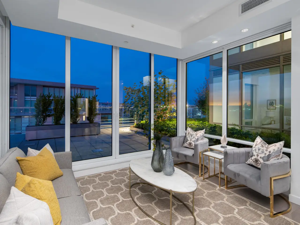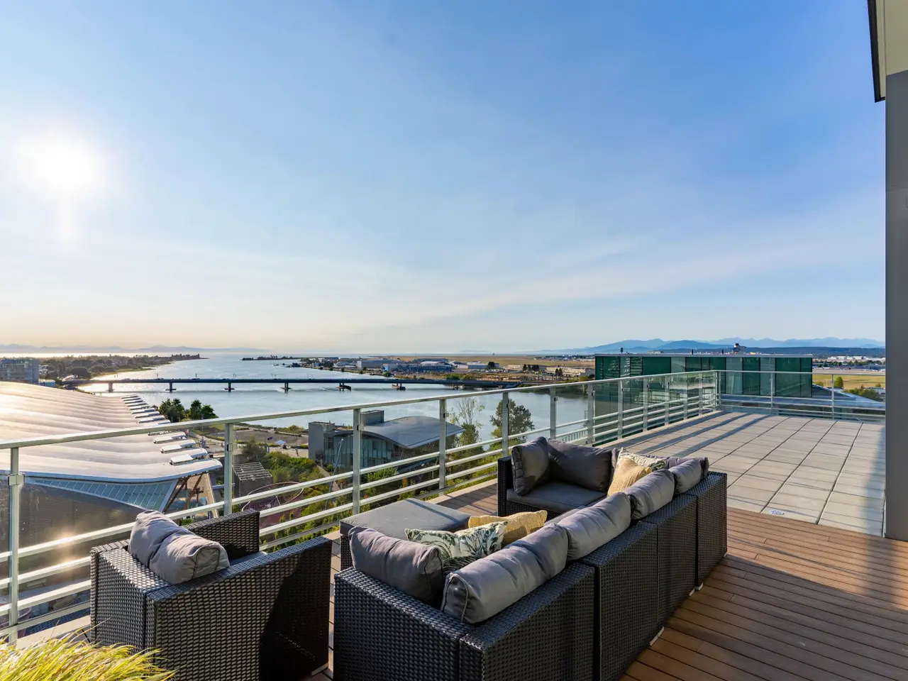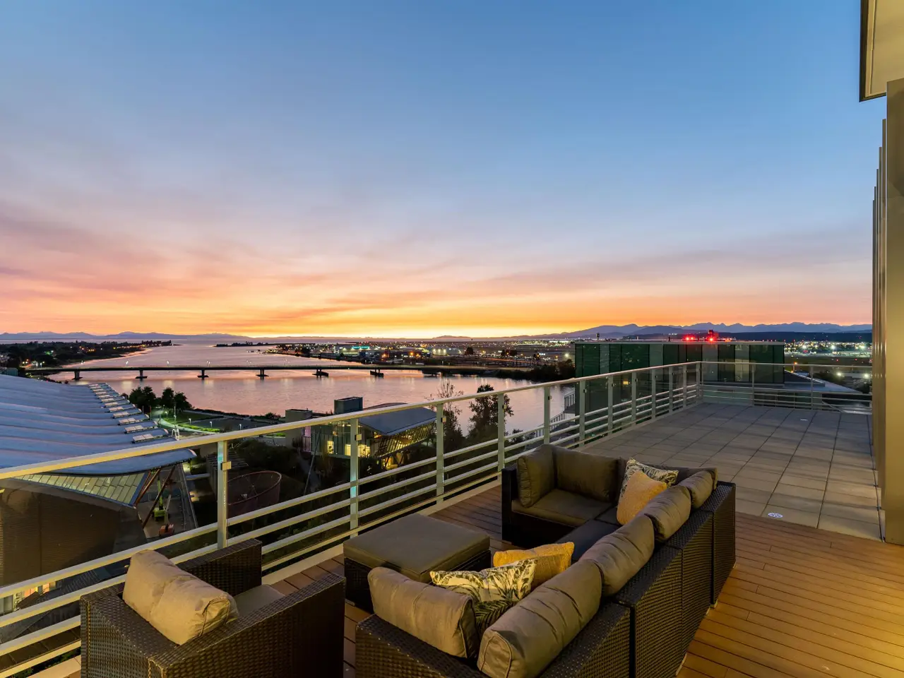 On a precious stretch of waterfront, 2 River Green by ASPAC defines contemporary high-end living. This spectacular two-storey penthouse offers over 3,098sf of refined interior space and a over 2,100sf private terrace. Enjoy breathtaking 180° unobstructed views of the water, mountain & city. Chef-inspired kitchen, complete with a dedicated wok kitchen, offers the versatility every cook desires. The double-height ceiling over the dining & stair areas creates an impressive sense of volume and light. One ensuite bedroom on the main level and three additional ensuites upstairs, providing the perfect blend of comfort and privacy. A true masterpiece of design and penthouse lifestyle. This home comes with a private two-car garage plus an additional parking stall. 5-Diamond resort-style amenities!
