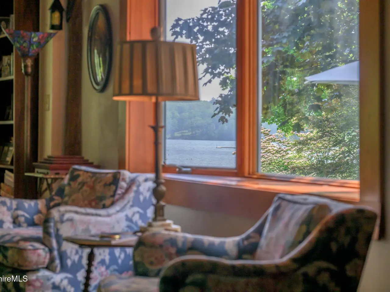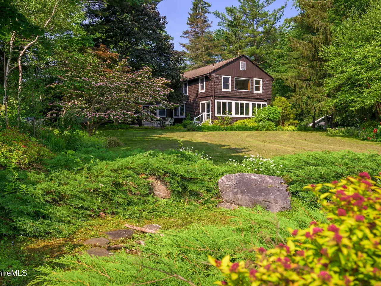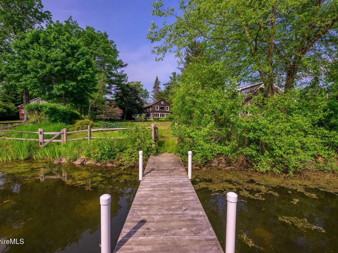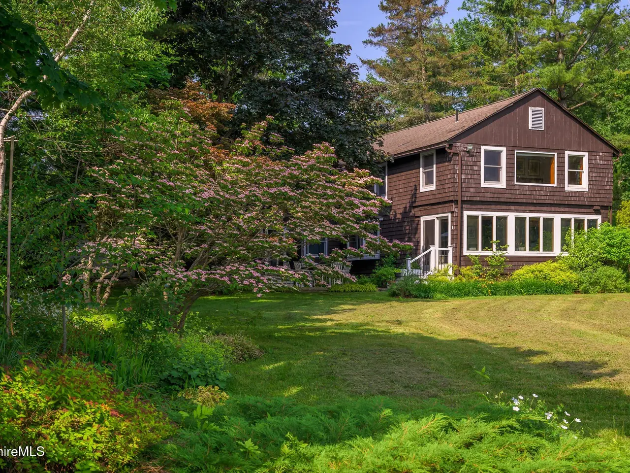 WATERFRONT home on Richmond Pond. With 65' of frontage and over half an acre, this charming four season home has 4 bedrooms, 2 1/2 bathrooms and wonderful outdoor living areas. Gorgeous perennial gardens, a spacious patio off the kitchen/great room, fire pit, dock, and a rear garage door (perfect for boat access and storage) all while enjoying the beautiful lake views.. Once inside is a terrific modern kitchen with large center island, spacious living room with field stone fireplace, half bath and a sunroom - all with lake views. Upstairs is the primary with lake views and a tastefully updated primary bathroom. 3 addt'l guest rooms and guest bath (also updated) and a bright, sunny art studio or home office. Also, easy access to the town beach and public boat launch, & Tanglewood.