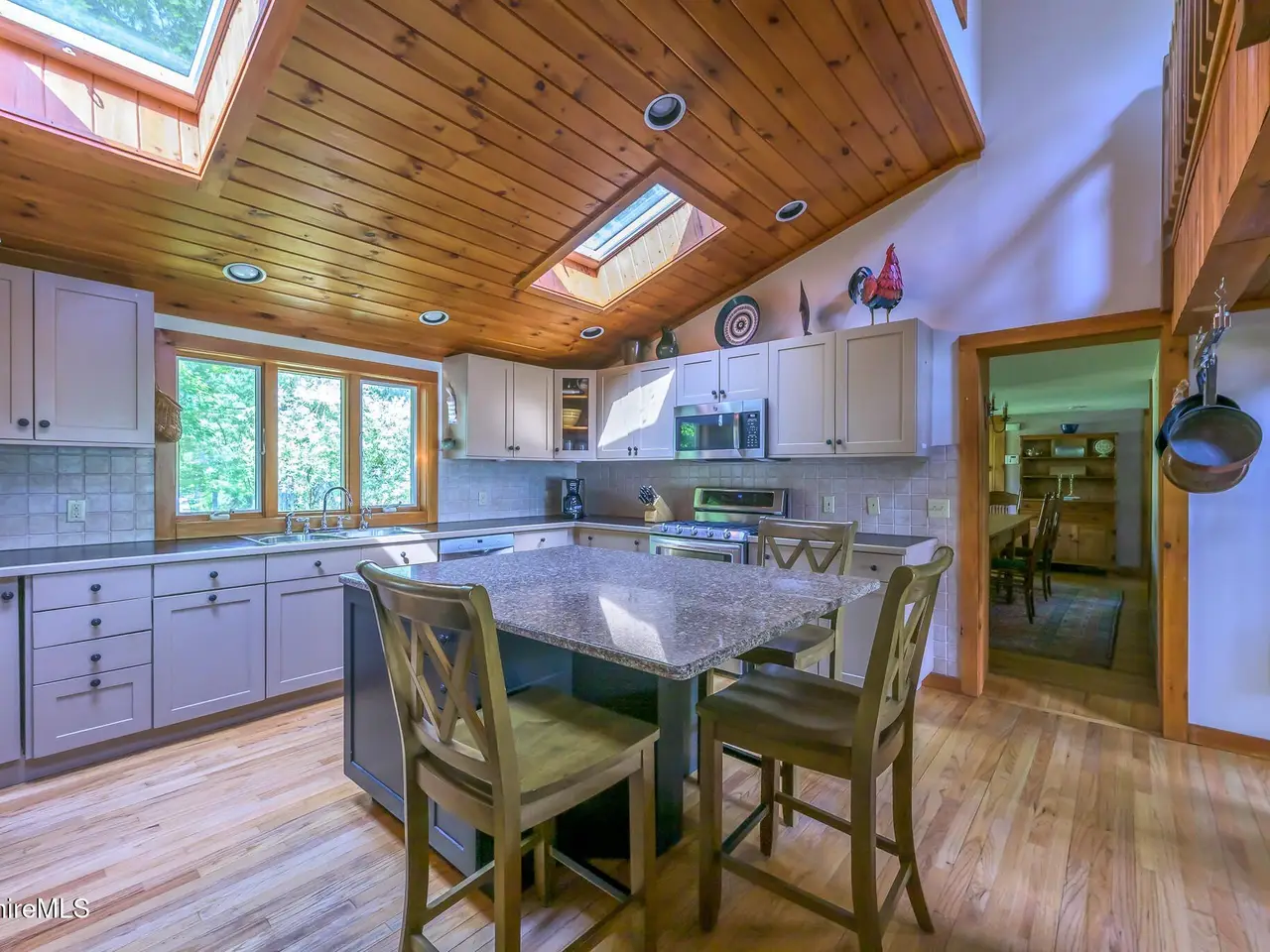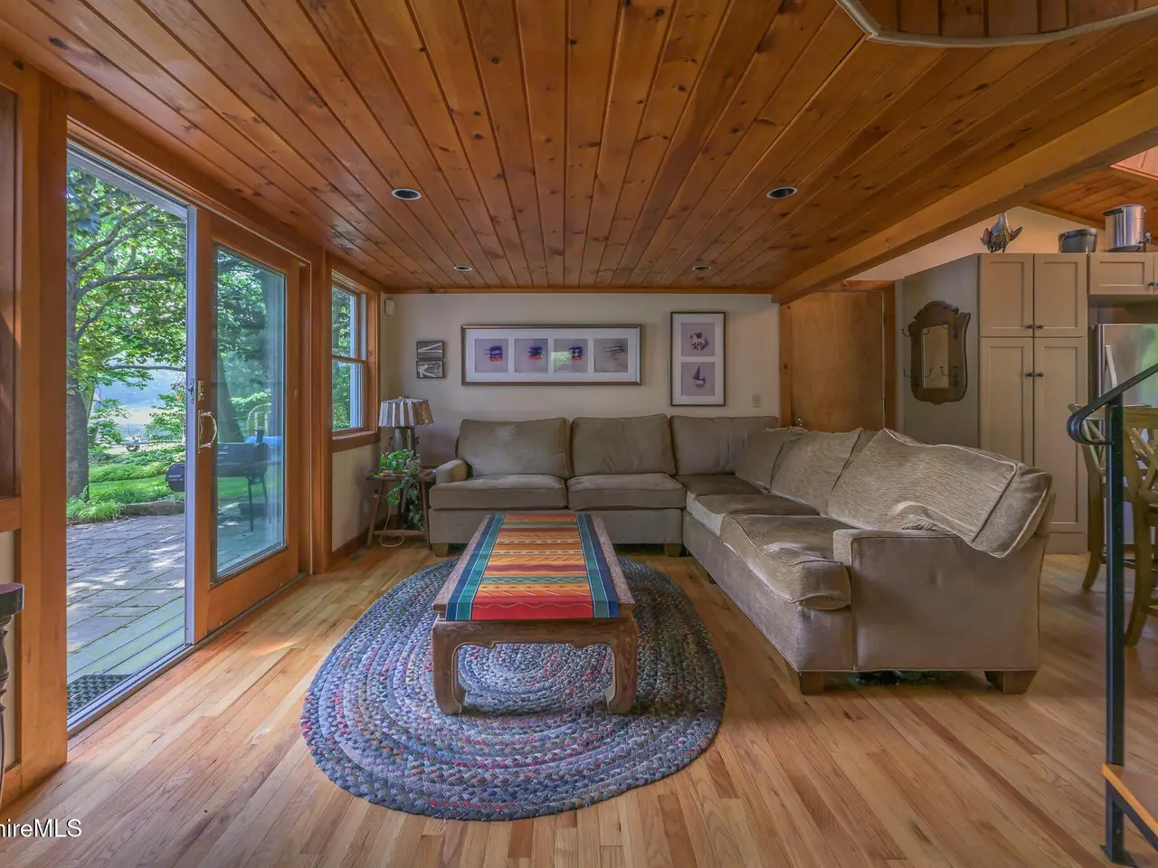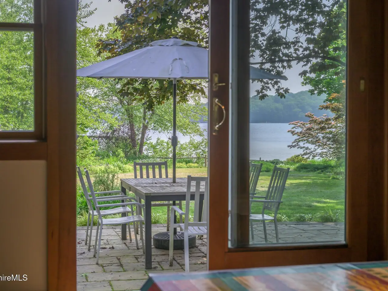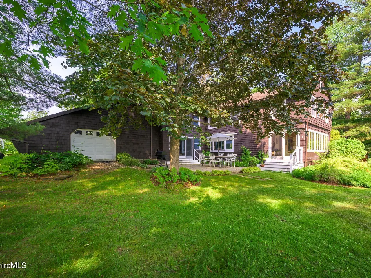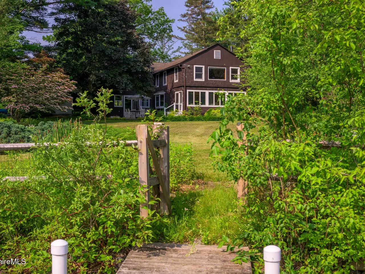 WATERFRONT home on Richmond Pond. With 65' of frontage and over half an acre, this charming four season home has 4 bedrooms, 2 1/2 bathrooms and wonderful outdoor living areas. Gorgeous perennial gardens, a spacious patio off the kitchen/great room, fire pit, dock, and a rear garage door (perfect for boat access and storage) all while enjoying the beautiful lake views.. Once inside is a terrific modern kitchen with large center island, spacious living room with field stone fireplace, half bath and a sunroom - all with lake views. Upstairs is the primary with lake views and a tastefully updated primary bathroom. 3 addt'l guest rooms and guest bath (also updated) and a bright, sunny art studio or home office. Also, easy access to the town beach and public boat launch, & Tanglewood.