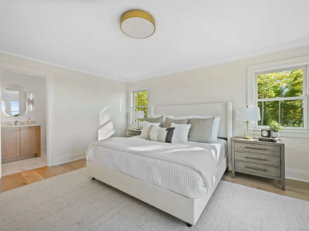 A masterclass in modern luxury, this breathtaking Ridgefield estate has been meticulously reimagined by premier builder Thomas Sturges Construction, achieving a rare balance of architectural brilliance, refined comfort, and energy efficiency, all set against awe-inspiring panoramic 50-mile views of the Hudson River Valley. Completely transformed, the residence unveils a sophisticated open-concept design where wide-plank oak floors, walls of glass and impeccable craftsmanship define every space. The chef's kitchen is a showpiece of form and function with natural stone counters, custom cabinetry and professional-grade Viking appliances seamlessly flowing into a chic dining area and luminous living room anchored by a sleek gas fireplace. The main-level primary suite is a private sanctuary, offering dual walk-in closets and a spa bath worthy of a five-star retreat. Upstairs, two additional ensuite bedrooms showcase exquisite finishes and elevated comfort. The lower level extends the living experience with a full in-law or au pair suite, complete with separate entrance, laundry and a stunning family room framed by stone-accented walls. Outdoor living is redefined with tiered decks, a granite patio, Wagner pool and spa and a romantic gazebo set amid manicured grounds. Great NYC commute. Perfectly sited minutes from Ridgefield's boutique shops, acclaimed dining and cultural attractions. An exceptional residence embodying the pinnacle of modern elegance and timeless craftsmanship!
