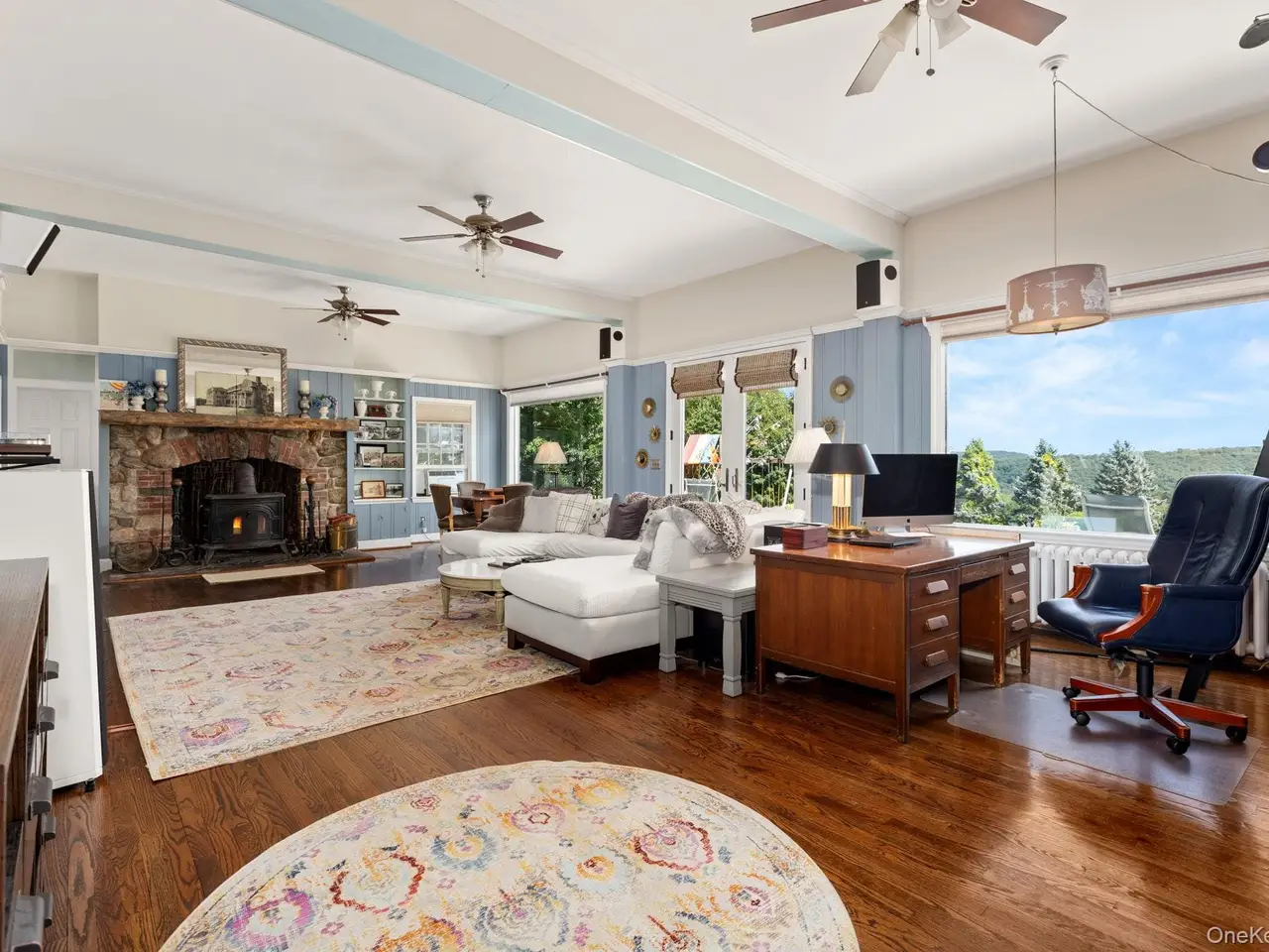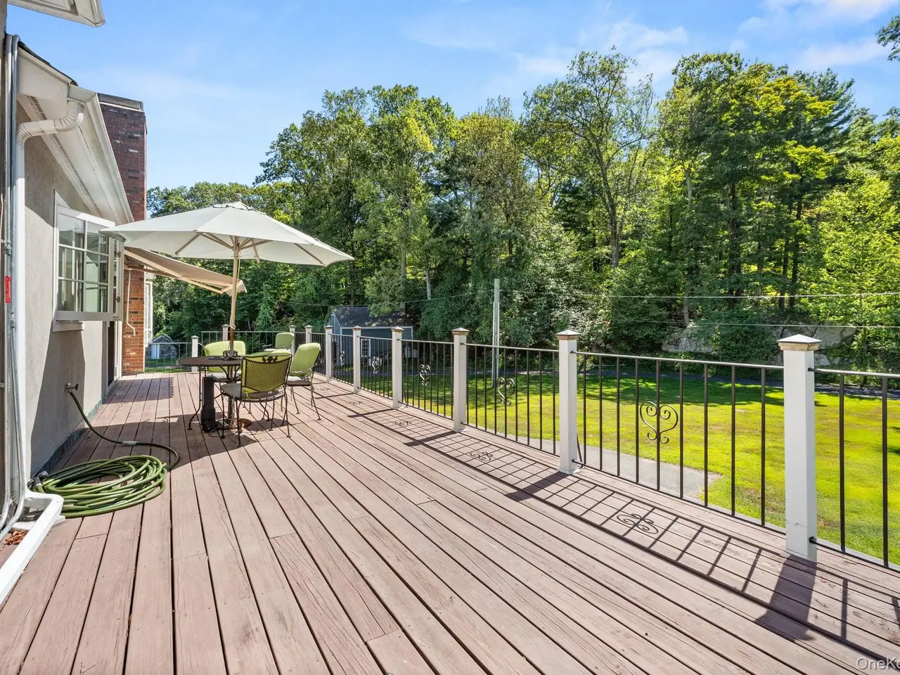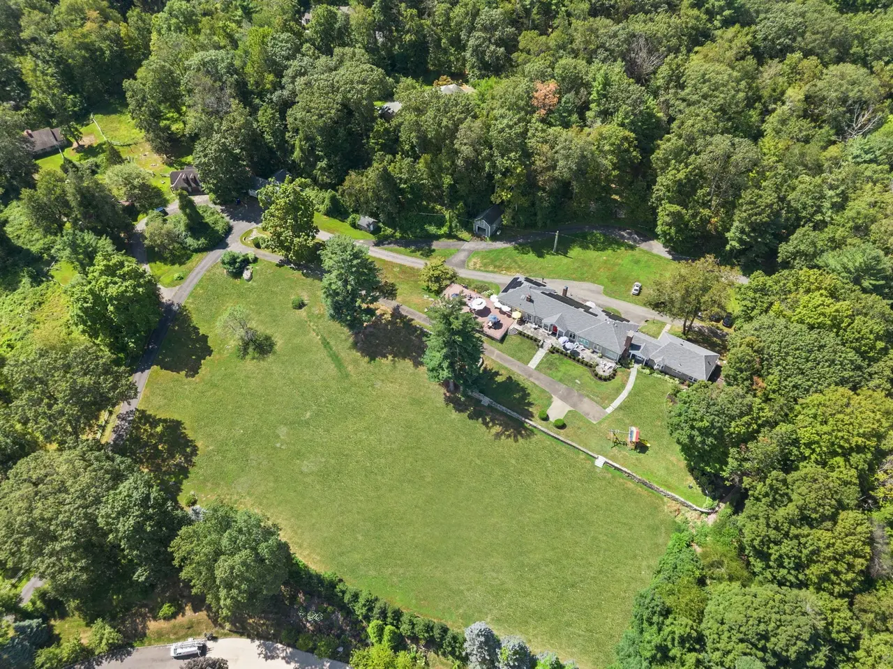 Historic Ridgefield Estate - Where Legacy Meets Modern Luxury. Originally built in 1911 as the Ridgefield School for Boys, this unique estate once anchored a vast 115-acre campus and featured more than 100 rooms, including classrooms, dormitories, and offices. When the school closed, the property was purchased by Francis D. Martin, who gave it a bold architectural overhaul by removing the top three floors, reshaping its silhouette but preserving its timeless character. Today, the lower level still holds remarkable original features: a working walk-in refrigerator and compressor, a functioning coal burner, a vintage dumbwaiter, and the legendary Dungeon Room, all offering a rare, tangible connection to the property's rich and storied past. The home is nestled on an expansive 4.98-acre parcel of picturesque land, located in coveted Ridgefield, Connecticut, this exquisite residence presents an unparalleled blend of grandeur and comfort. Enjoy a one-floor residence that has been preserved and reimagined into a beautifully renovated ranch-style property offering 4,808 square feet of living space. The home offers breathtaking panoramic views in the town of Ridgefield. The landscape is adorned with a lush tapestry of vibrant, clustered trees. As the seasons turn, this ever-changing natural spectacle provides a captivating backdrop year-round, perfectly complementing families who love to entertain. The modern 2019 kitchen renovation boasts 10-foot-tall ceilings, all Thermador appliances including a convection and steam oven, six-burner gas cooktop, and a 3-tier dishwasher. The 10-foot island accommodates a prep sink, a modern drawer microwave, and pull-out drawer fridge and freezer. The home offers spaces to accommodate large gatherings, for those who love to entertain. The kitchen provides abundant storage space while seamlessly blending historic charm with modern comfort. Boasting seven ample bedrooms, this home is designed to accommodate both intimate family living and elegant entertaining with ease. The five full bathrooms and two thoughtfully appointed guest half baths offer both convenience and privacy for residents and guests alike. An inviting, full house cottage adjoins the main residence, offering an ideal private sanctuary for an au pair, in-laws, or extended family. Thoughtfully designed for both comfort and convenience, this charming retreat contains a private entrance, washer/dryer, modern renovated kitchen, two full baths, a dining and living room, and a private deck. The attached cottage ensures independence while maintaining seamless access to the main home, perfectly balancing privacy with togetherness. The home is equipped with three fireplaces, including two wood-burning stoves, solar panels, covered garage spaces to accommodate 10 vehicles and over 2,000 square feet of outdoor deck and living space to enjoy the panoramic views. Mechanical updates feature a full house generator, HVAC system, a steam boiler, an electric hot water heater, and a new Trane air conditioning system. Surrounded by serene natural beauty, this property provides a tranquil retreat while remaining within reach of the vibrant community amenities that Ridgefield is renowned for. Experience the perfect harmony of refined living and rustic charm in this exceptional estate.