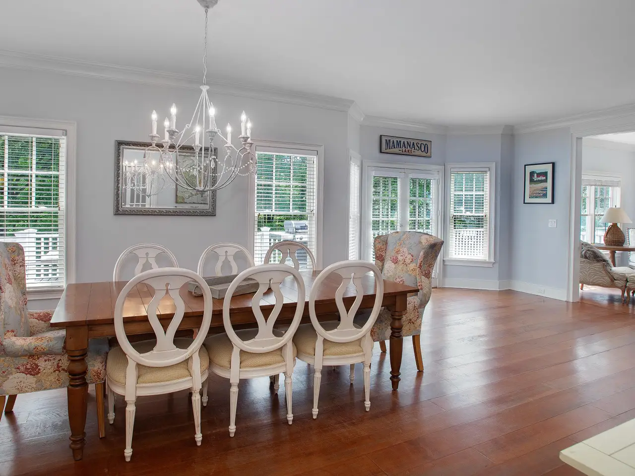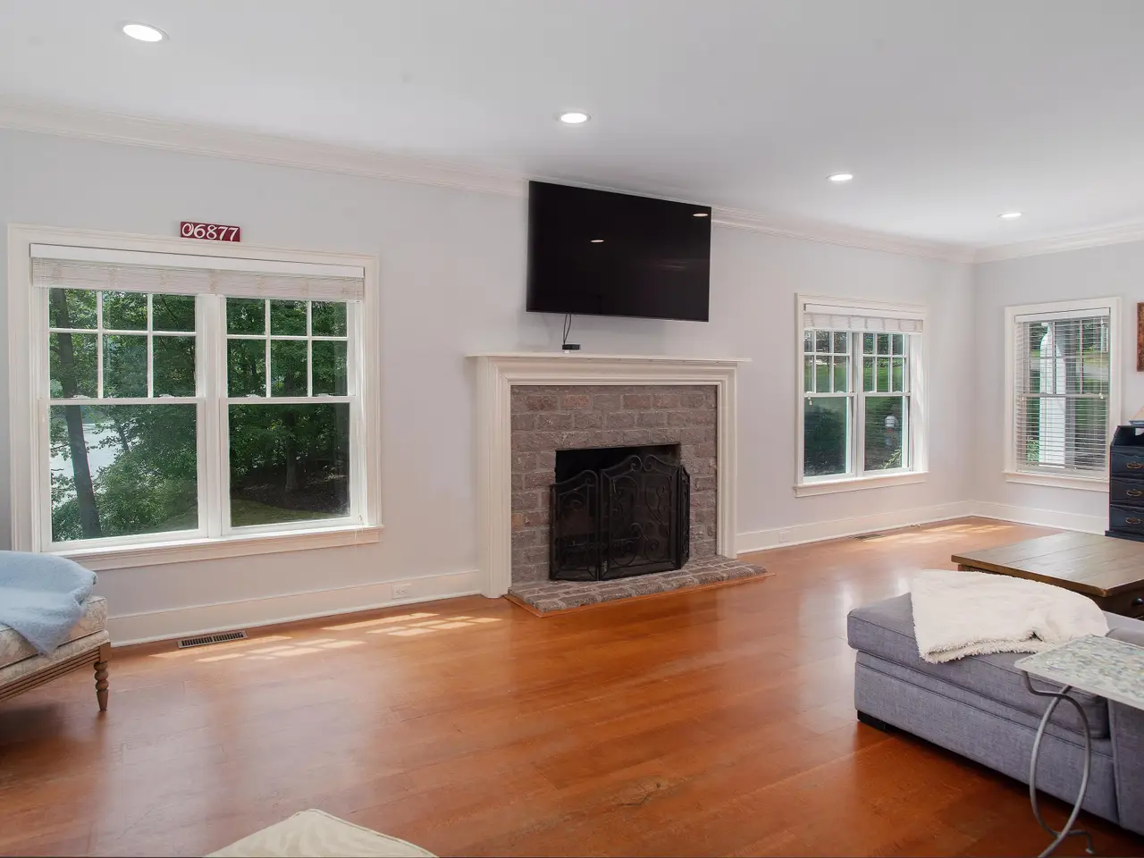 Welcome Home to your own waterfront retreat on Ridgefield's Lake Mamanasco! Perfectly sited on 1.57 acres, this charming Cape-style residence combines comfort, character, and year-round lake living. With soaring 9-foot ceilings, hardwood floors, and an abundance of natural light, the home feels open and inviting from the moment you walk in. The beautifully updated kitchen features soapstone counters, crisp white cabinetry, and professional stainless steel appliances, with a butler's pantry and wine fridge connecting to the dining room. The adjoining spacious family room, featuring a fireplace and French doors that open to the deck, is perfect for everyday living and entertaining. An office, mudroom with built-in desk and laundry, and a welcoming front porch add to the appeal. The upper-level primary suite is a true retreat with a walk-in closet, deck access, and serene water views. Four additional bedrooms and two full bathrooms complete this level. The walkout lower level offers a family room with French doors to the yard, a den, and a full bath. Outside, enjoy expansive decks, patios, and seating areas overlooking the tranquil lakefront--swimming, fishing, or kayaking right from your backyard. Mature trees and plantings provide privacy, while the location offers quick access to Ridgefield's vibrant village and easy commutes to Fairfield, Westchester, and NYC. Note, a new code-compliant, 5-bedroom septic is being installed! Welcome Home!!