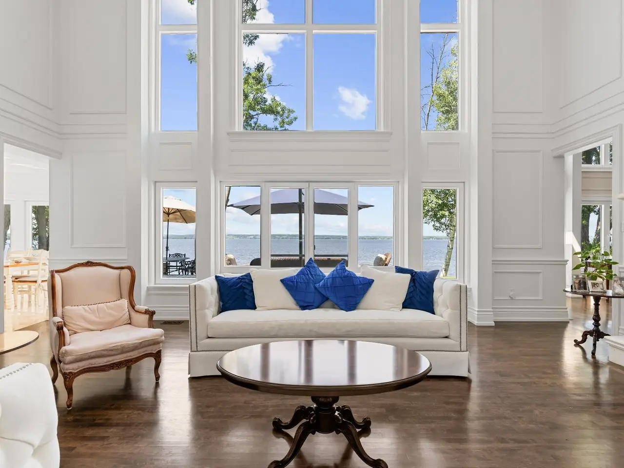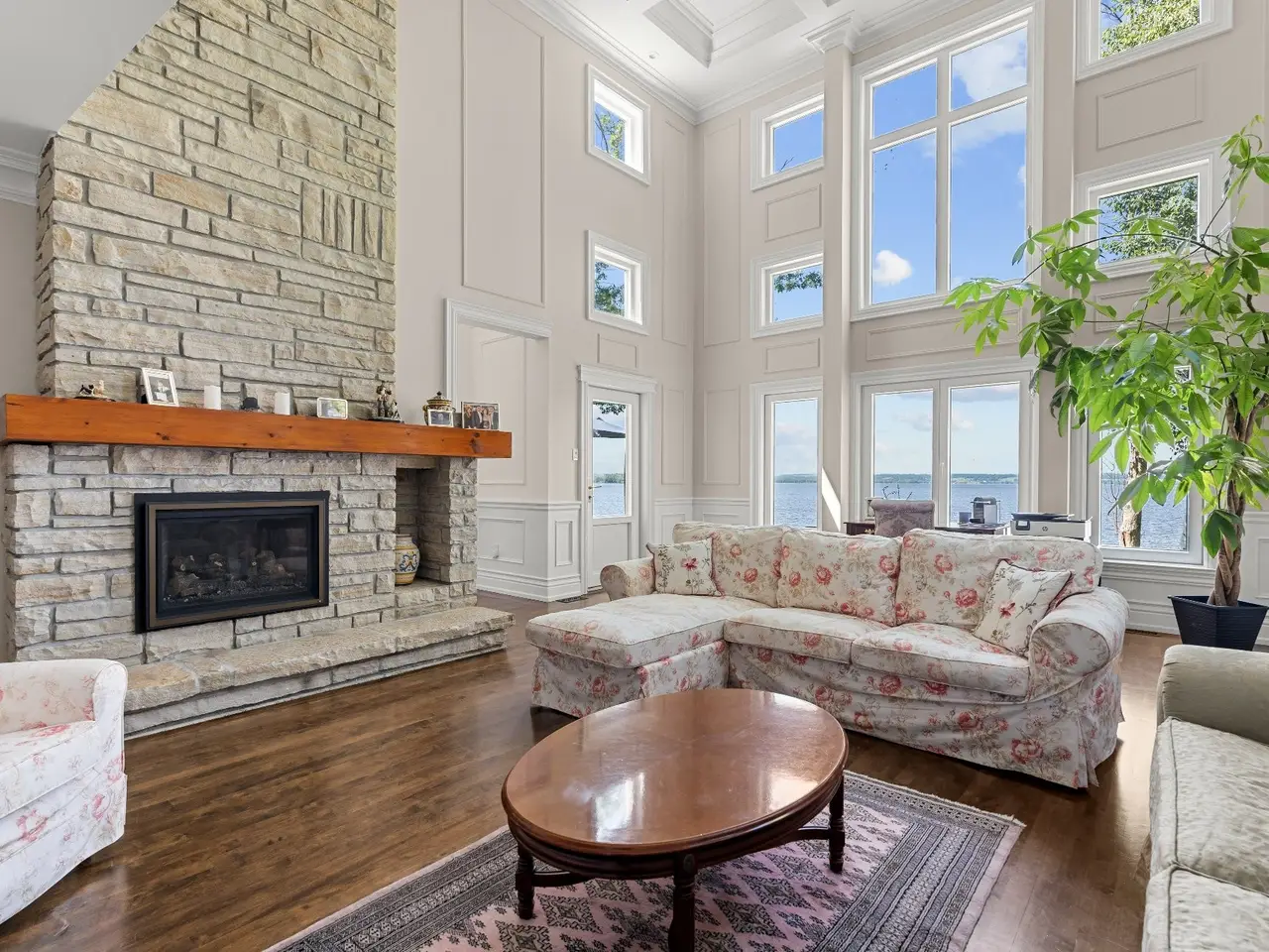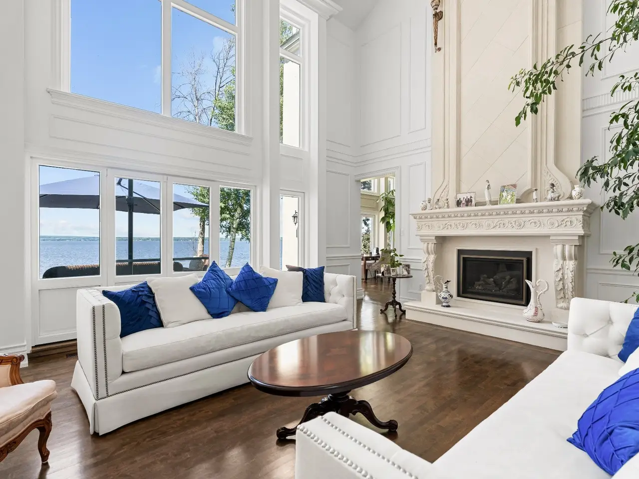This private cul-de-sac waterfront estate offers 5,000-plus square feet of luxury living with balconies throughout and water views from nearly every room. The grand main living area boasts soaring 20-foot-plus ceilings, complemented by three family rooms, a stunning chef's kitchen, and hand-crafted finishes executed with precision. Relax in the finished basement or savor breathtaking sunsets from your private dock or from your primary bedroom! Take advantage of being a part of the exclusive Hudson Club amenities such as a private beach, gorgeous pool, and tennis courts. A rare chance to own elegant waterfront living at finest! You will not be disappointed!