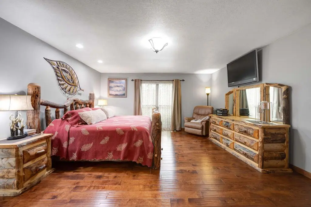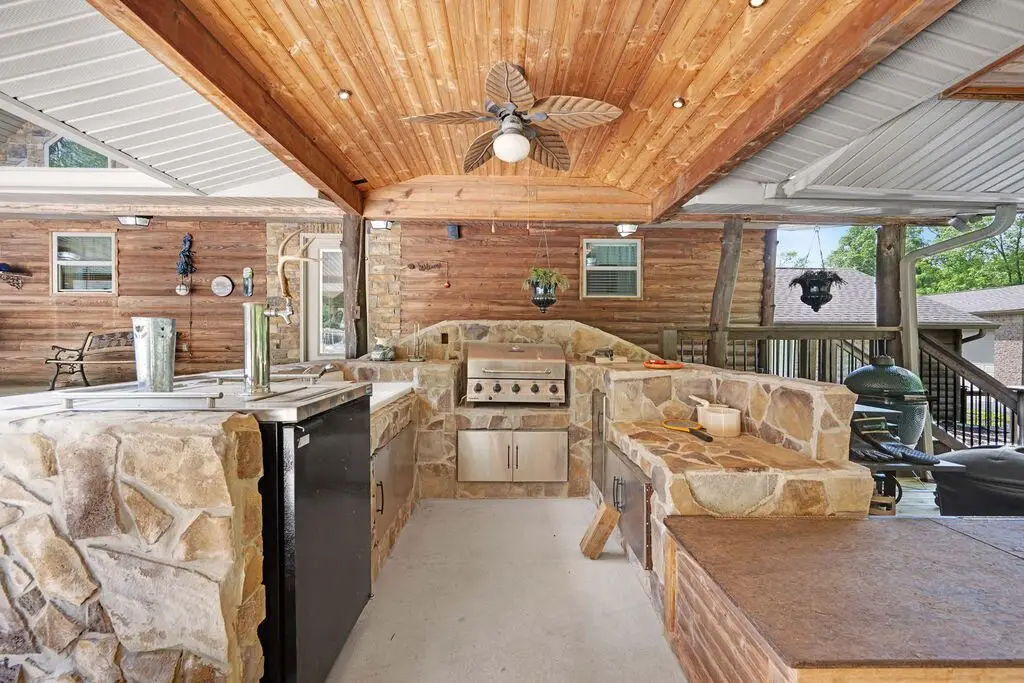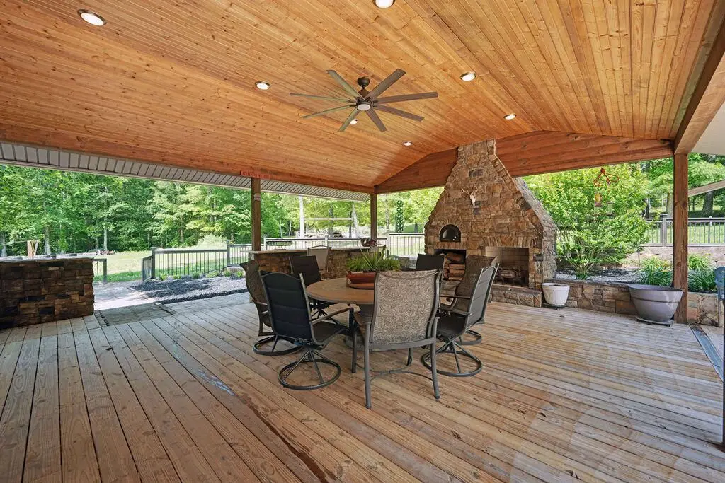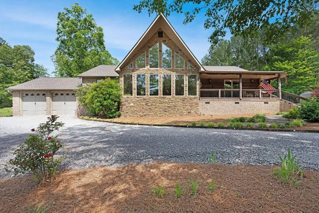 Welcome to your private sanctuary - where luxury meets rustic charm in this stunning custom-built home inspired by the serene beauty of the Smoky Mountains. Nestled on approximately 6.74 acres, this 2,718± sq ft masterpiece is a rare opportunity to own a conventionally framed, log cabin-style retreat, meticulously crafted by its original owners with no detail spared. Totally updated, roof, windows, HVAC, and water heaters have been replaced 2023-2025. Nothing spared. As you arrive, you'll be greeted by one of two private ponds, setting a tranquil tone before you even step inside. The interior opens to a breathtaking great room with soaring cathedral ceilings, seamlessly connected to a gourmet kitchen featuring custom cabinetry, premium countertops, and high-end appliances - perfect for both entertaining and everyday living. The luxurious primary suite is a true retreat, complete with its own fireplace, dual walk-in closets, a spa-like ensuite with upscale finishes, and even a private sauna. Two additional bedrooms, a spacious office (or optional fourth bedroom), a full bath, and a well-appointed laundry room round out the main home's thoughtful layout. Ideal for guests or multi-generational living, the separate 1500 sf guest house offers an open-concept design, full kitchen, and bath - perfect as a mother-in-law suite, extended stay for older children, or a potential income-producing Airbnb. Step outside to your very own resort-style oasis. The expansive patio and sparkling pool are rivaled only by the stylish cabana - complete with built-in grill, refrigerator, and cooler storage to keep refreshments flowing all day long. Additional features include a large 4-bay garage for your RVs, boats, or collector cars, a dedicated workshop, and even a deer-skinning station for outdoor enthusiasts. 6.64 acres joining this property with 2 buildings can be purchased for $250k. This is more than a home - it's a resort lifestyle. Schedule your private showing.