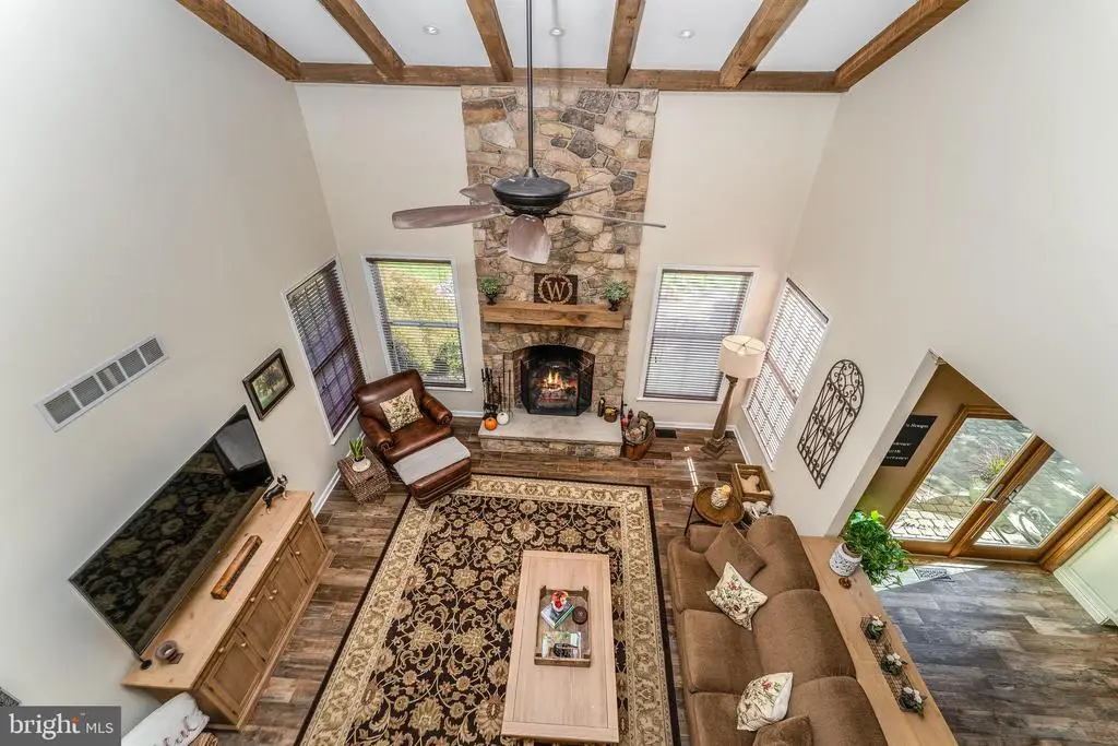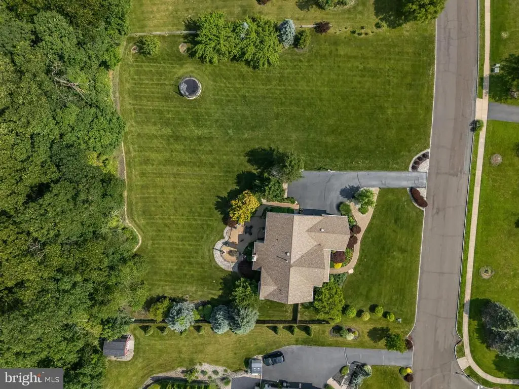 Meticulously maintained and thoughtfully updated, this expansive Colonial offers an open floor plan and a tranquil cul-de-sac setting. Surrounded by lush landscaping and backing to woods for added privacy, the home invites relaxation on the rocking chair front porch at sunset or entertaining on the spacious paver patio overlooking the park-like backyard. At the heart of this home is the large, recently renovated gourmet kitchen, featuring a generous center island and high-end appliances. The kitchen opens to a dramatic two-story Family Room showcasing a custom floor-to-ceiling stone wood-burning fireplace with a gas log starter, reclaimed hand-hewn beams, and a beautifully crafted custom mantle the perfect blend of rustic warmth and modern luxury. The first floor offers both front and back staircases for easy access throughout the home. A spacious office provides a bright and inspiring workspace, highlighted by custom doors sourced from France. Formal living and dining rooms create an elegant setting for entertaining, while a convenient powder room and laundry room add everyday functionality. Ceramic tile flooring extends throughout the first level, enhancing the homes clean, cohesive design. The second-floor primary suite is a true retreat, featuring three walk-in closets with custom organization systems and a spa-like bath with a soaking tub and double vanities. A beautifully renovated hall bath serves the three additional bedrooms, each offering generous space and natural light. A large gym completes the second floor, providing a perfect area for fitness and wellness at home. The finished basement extends the homes living space, featuring stained epoxy flooring and a spacious recreation room ideal for gatherings or media. Two additional flex rooms offer versatility for a home office, hobby space, or guest area. A powder room, walk-in closet, multiple additional storage closets, and a large unfinished area provide ample room for comfort and organization. A three-car garage completes the home, featuring built-in storage systems and an epoxy-coated floor for a clean, organized, and functional space. Enjoy complete peace of mind with recent upgrades, including a new roof (2024), updated HVAC system, two commercial-grade sump pumps in the basement, a new hot water heater, and a septic pump installed in 2025. The septic system has been inspected and approved by the Health Department, ensuring everything is in top working order for the next homeowner.