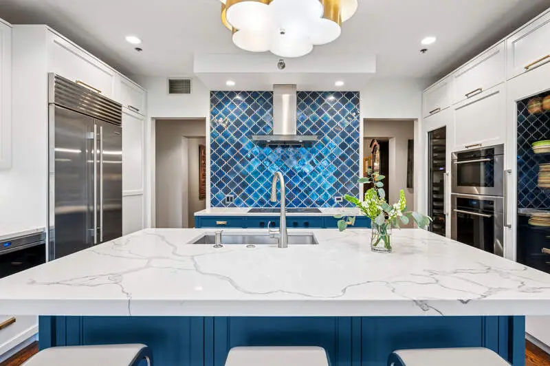 Absolutely stunning and fully renovated 3-bedroom + office, 2.5-bath top-floor condo in a prime River Forest boutique building. Nothing has been left undone-every inch of this home has been thoughtfully customized by the current owners with the highest attention to detail. You'll love the ideal flow of this spacious floor plan, featuring 9-foot ceilings, beautiful hardwood floors, and oversized windows that fill the home with natural light. The welcoming foyer includes a large walk-in closet and a stylish half bath with a custom stone vanity. The expansive living room overlooks tree tops and a peaceful courtyard, anchored by a striking custom-built fireplace and one of three sliding doors that lead to your private balcony. The true chef's kitchen is a showstopper with handcrafted cabinetry, quartz countertops, designer tile backsplash, and top-tier Sub-Zero, Wolf, and Bosch appliances. Enjoy casual dining at the eat-in island or a full table setup with two more sliding doors that open to the balcony. A flexible floor plan allows for a formal dining room or additional lounge space, while each bedroom offers excellent closet storage, custom window treatments, and designer lighting. The office can easily serve as a fourth bedroom or den. The serene primary suite offers a true retreat with fully outfitted custom walk-in closets and a luxurious spa-like bath, complete with heated floors, marble finishes, a soaking tub, large walk-in shower, and a double vanity with ample storage plus 2 linen closets! Large utility room with side by side washer/dryer, sink, additional storage! Additional highlights include heated garage tandem parking space and storage unit. All of this in a walk-to-everything location-this is River Forest living at its best. Don't miss this rare opportunity!