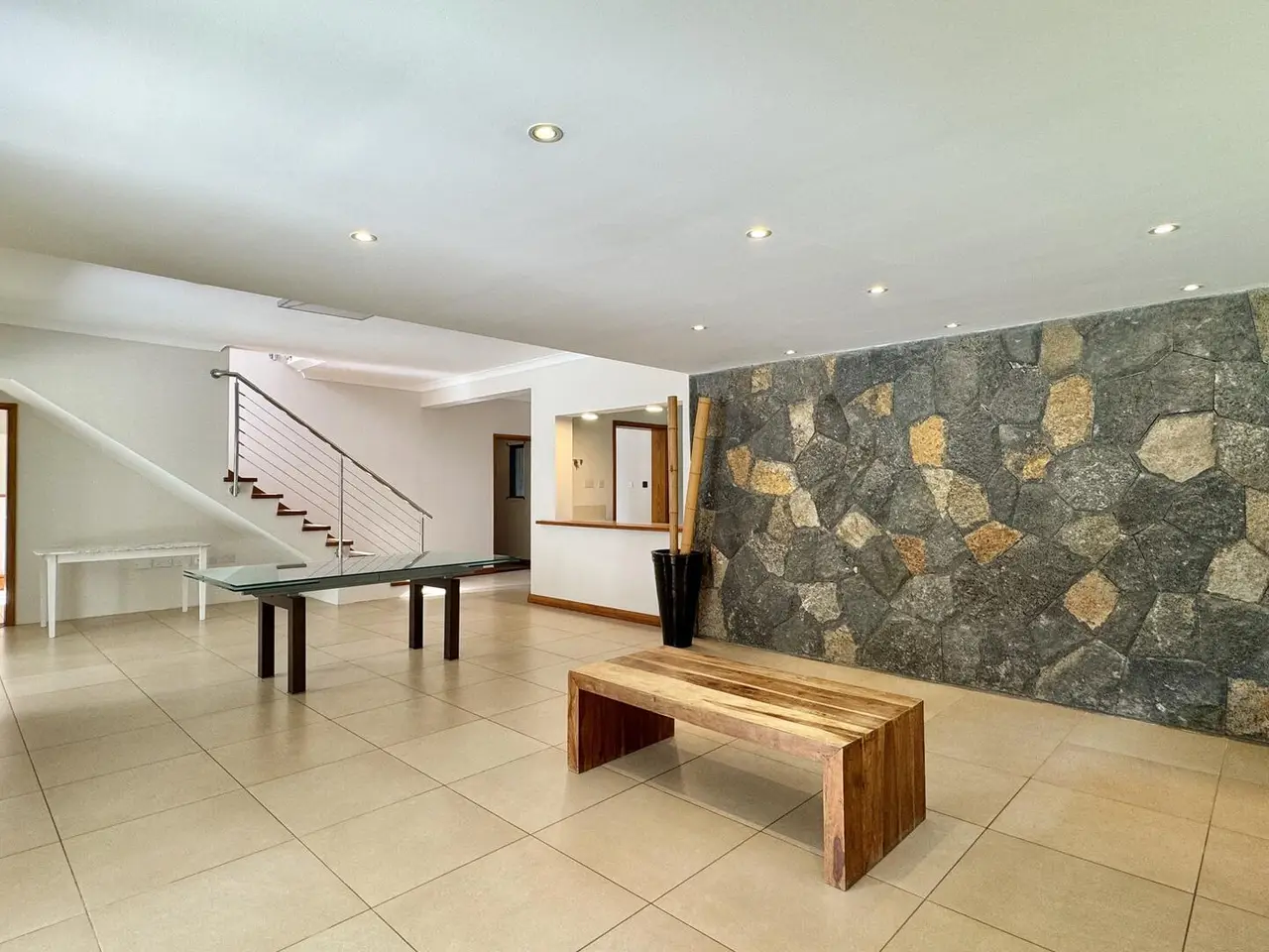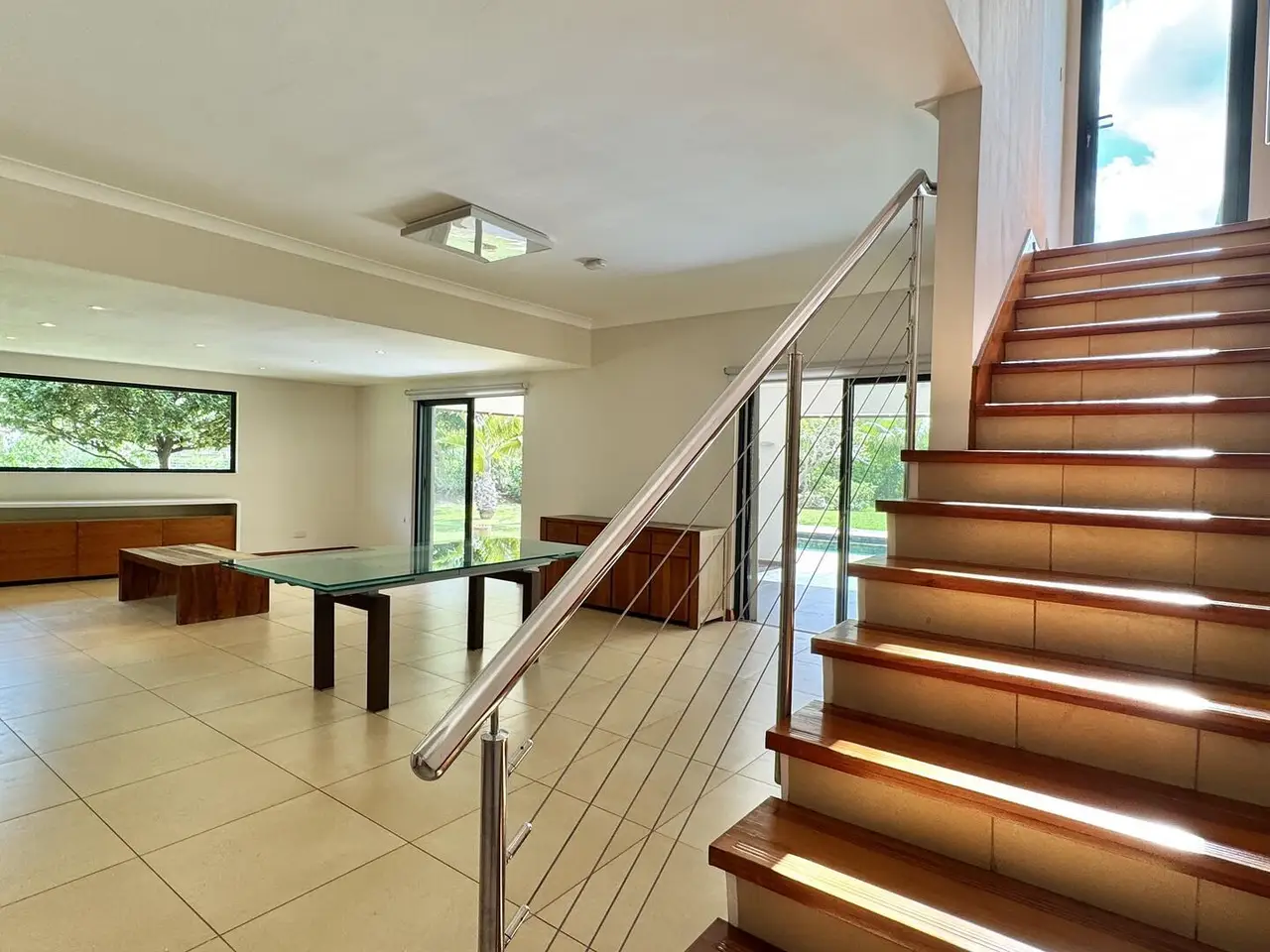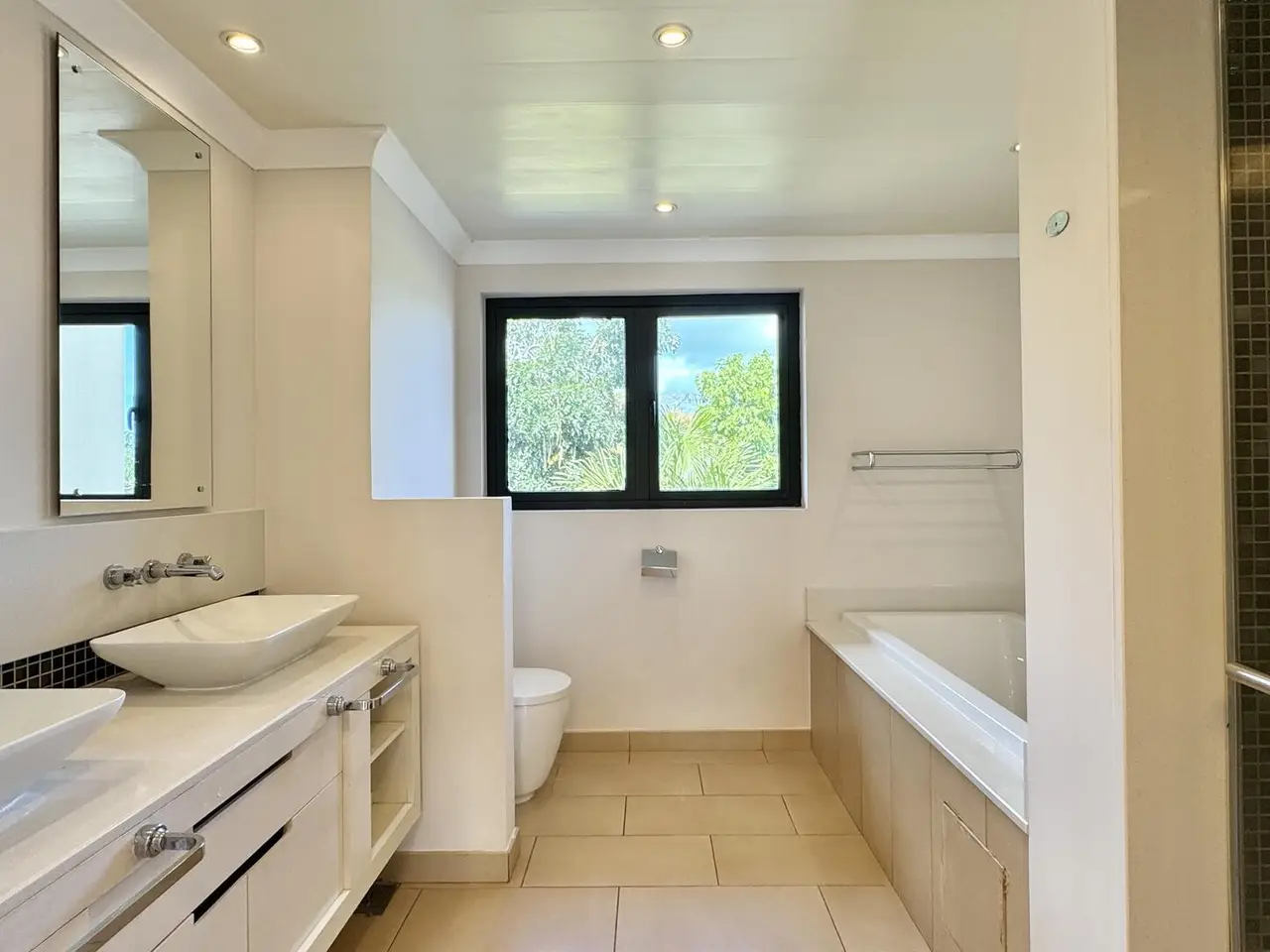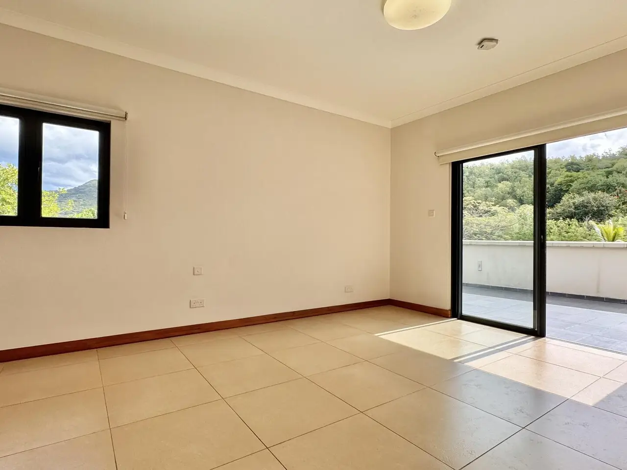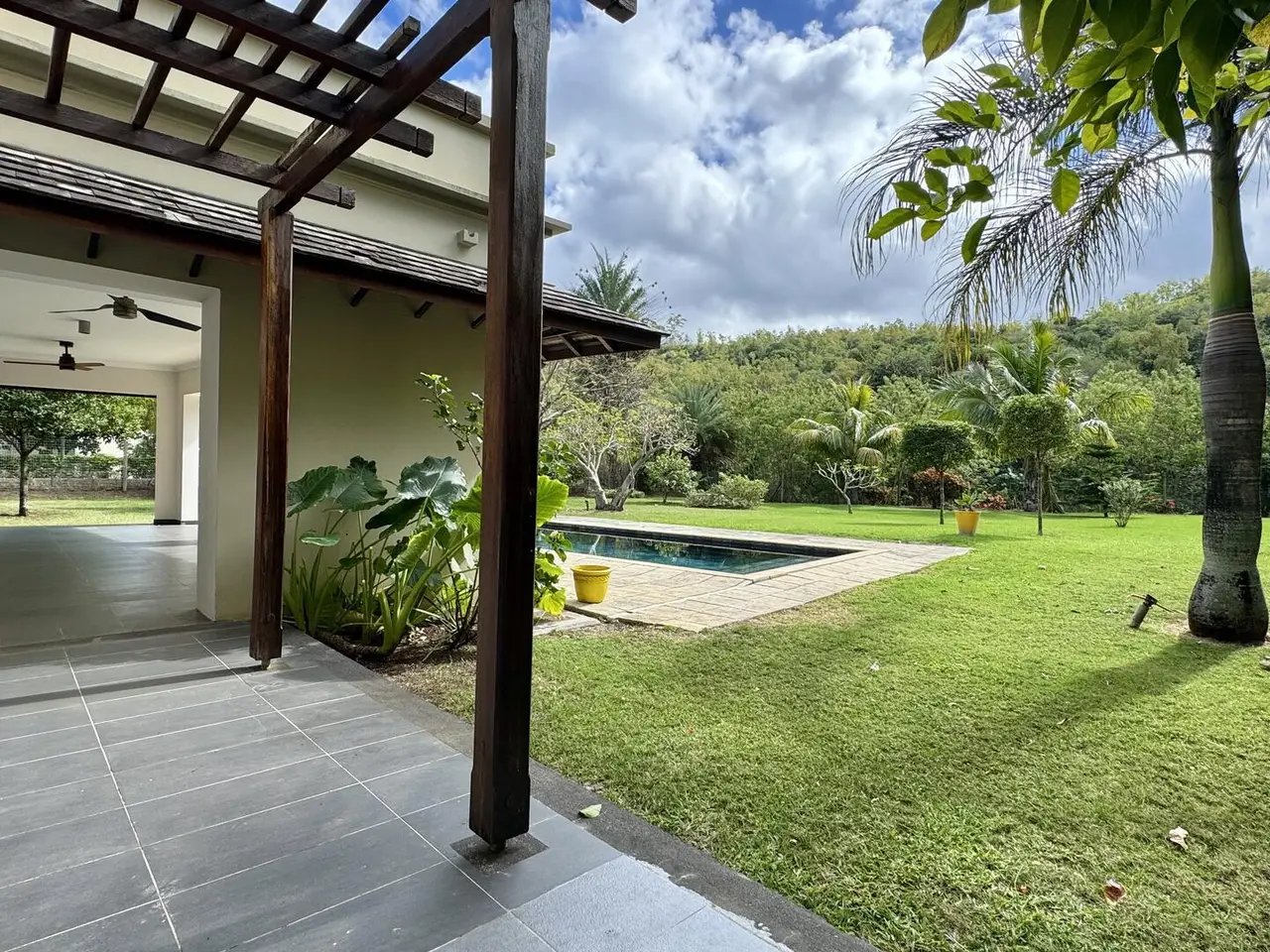 Surrounded by mature gardens and framed by mountain views, this 4-bedroom villa in Rivière Noire presents a refined lifestyle opportunity under the IRS scheme — ideal for foreign buyers seeking a luxury property in Mauritius. Set on 2086 m² of land with 497 m² of built area, the home combines contemporary comfort with fluid indoor-outdoor living. A covered veranda extends beside a private stone-edged pool, creating a natural flow from the spacious lounge and dining zones. Inside, soft light enhances the clean finishes and feature stonework, while the kitchen invites easy, sociable cooking. The villa offers four generously sized bedrooms and three well-appointed bathrooms, ensuring space and privacy for family or guests. One of the bedrooms opens onto a panoramic terrace with sweeping views — perfect for relaxing moments from sunrise to sunset. Built in 2015 and located in a secure residential estate, the property includes three parking bays and electric water heaters. A peaceful yet connected address for those seeking a long-term investment in Mauritius' west coast lifestyle. Contact DIANE WATKINS – Property Consult for a private viewing!