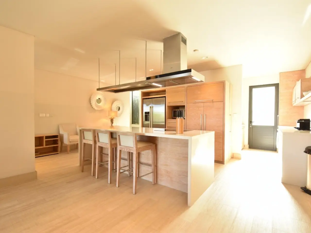 This tastefully furnished, 3-bedroom duplex is situated in the only residential Marina in Mauritius with a private plunge pool and views onto the marina. The entrance to the duplex leads to a contemporary open-plan kitchen that follows in turn to a vast living and dining area. With a habitable surface of 207 m2, the duplex offers generous rooms, with practical spaces not forgotten such as a storeroom and an exterior courtyard accessible via the kitchen. Glass concertina doors in the living and dining room give access to the semi covered terrace and plunge pool which path the way to the marina giving easy access to the sea. Situated on the first floor, all 3 bedrooms have their own adjoining shower rooms. The master bedroom includes a private balcony brushed with soothing palm tree leaves, ensuring complete privacy and tranquility. Residents at the marina benefit from the incredible lifestyle the estate has to offer. This includes easy access to the Black River lagoon, quality boat services, a well-managed syndic, as well as a membership club with equipped gym, spa and sports club with lap pool and tennis courts; not to mention its proximity to Black River’s sought-after amenities and infrastructure. Mauritian residence permits applicable upon purchase. Private mooring attached to title deed.