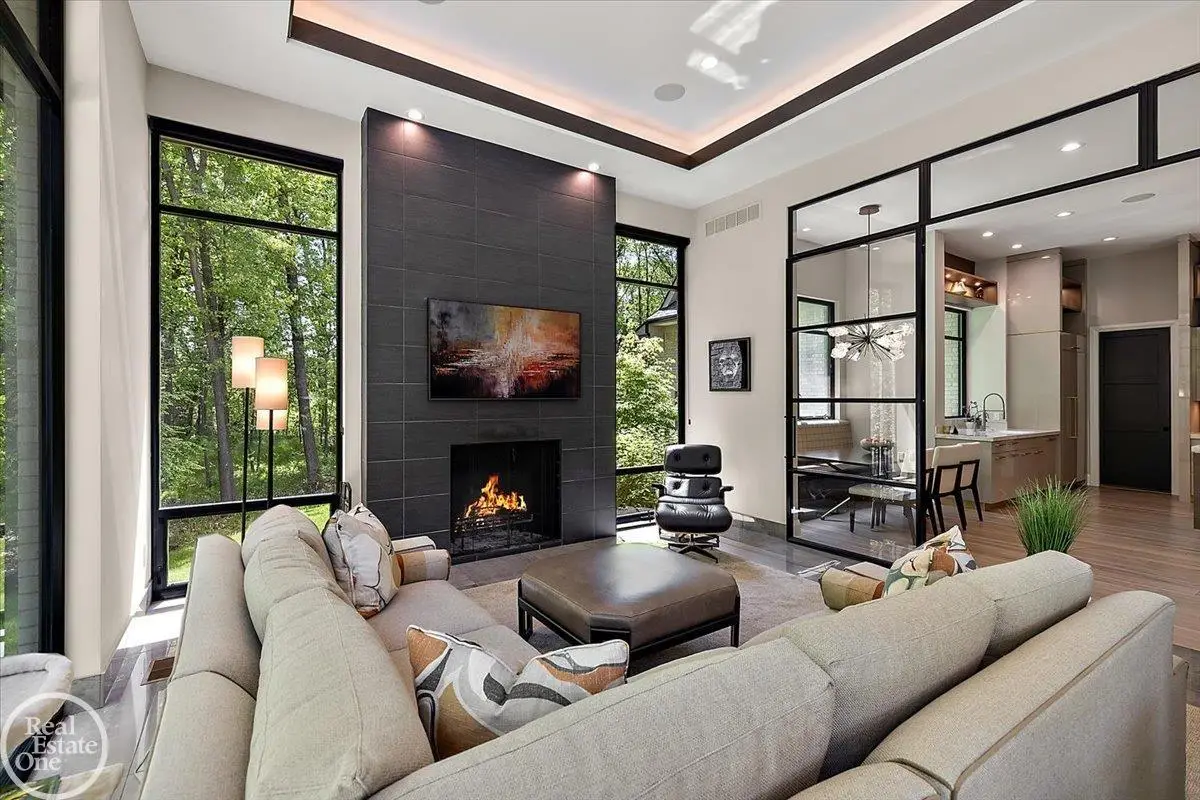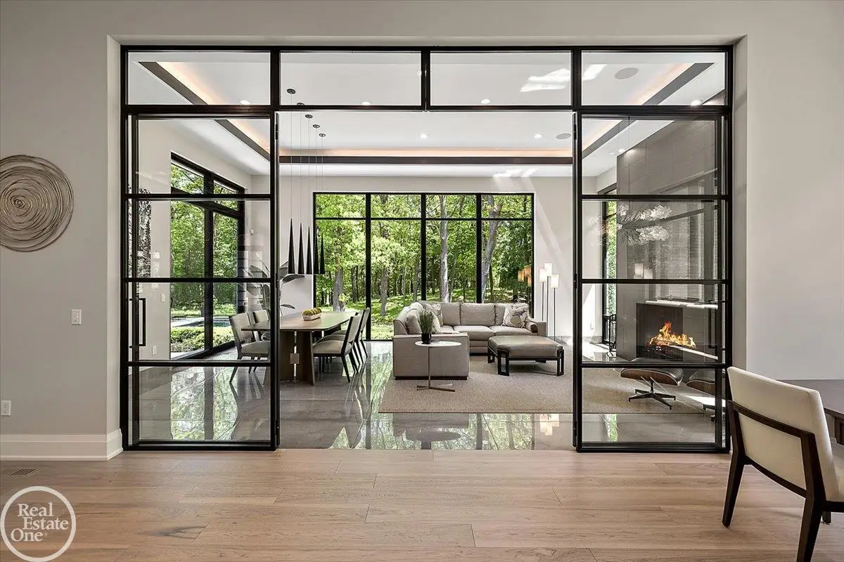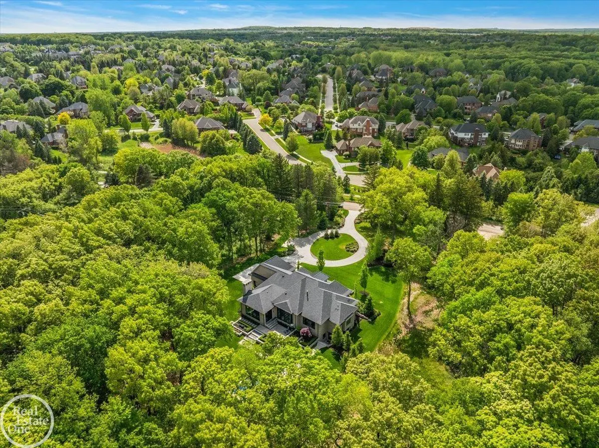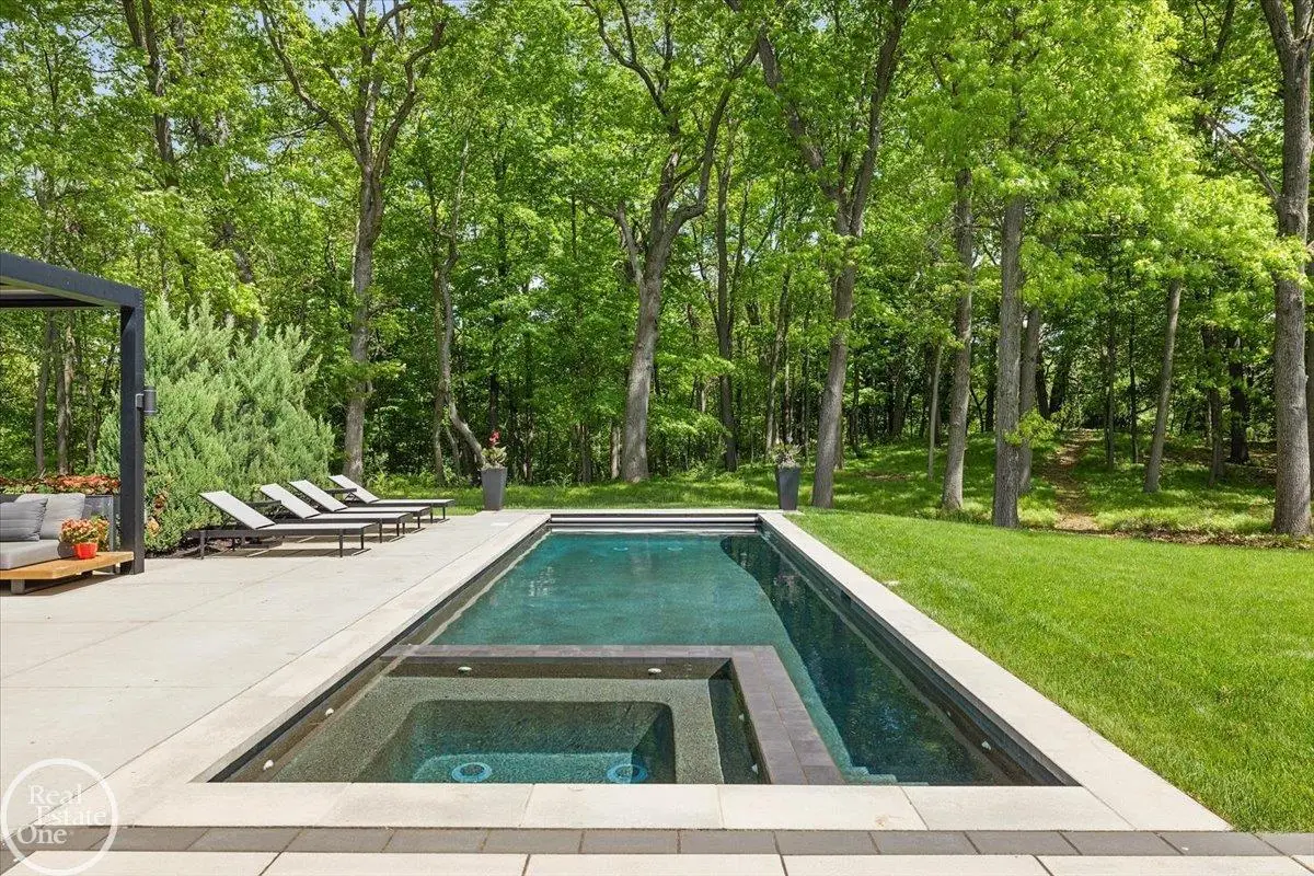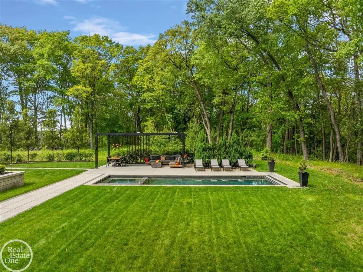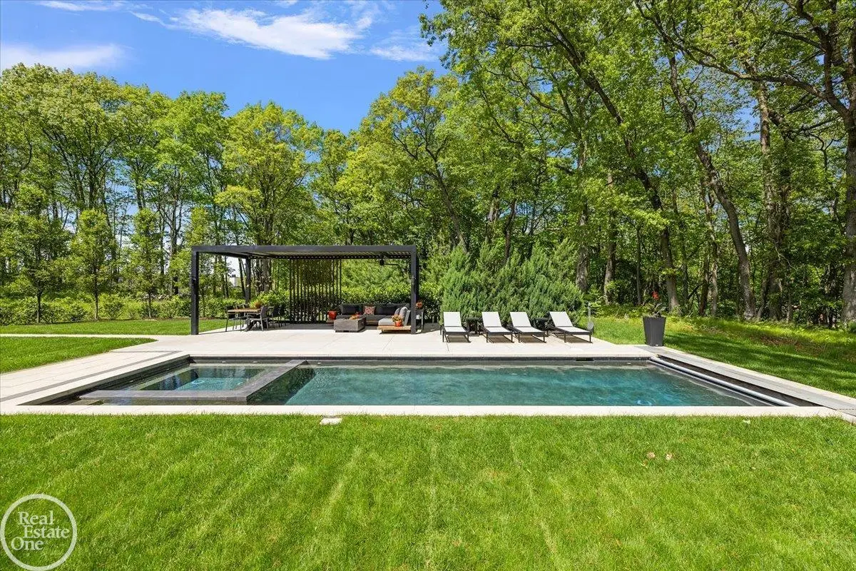 Experience unparalleled modern luxury in this custom-built 2021 Cranbrook masterpiece. Featured in Detroit Design Magazine, this home showcases exquisite interior design by Tutto Interiors, boasting the finest materials and craftsmanship throughout. Situated on 3 private wooded acres, this residence offers a serene escape with an urban edge. The open floor plan, highlighted by soaring 14-foot ceilings and expansive walls of windows, floods the home with natural light and breathtaking views. The gourmet kitchen, equipped with Thermador appliances, is an entertainer's dream. Relax in the stunning great room with its floating fireplace or unwind in the four-seasons glass room, featuring an industrial loft aesthetic and a natural fireplace. The primary suite offers a spa-like experience with a luxurious bath, steam shower, and dual walk-in closets, all overlooking the tranquil wooded landscape. The finished walk-out lower level leads to a 35x12 inground pool, complete with a custom pergola and firepit, perfect for outdoor gatherings.