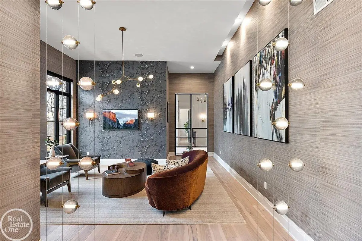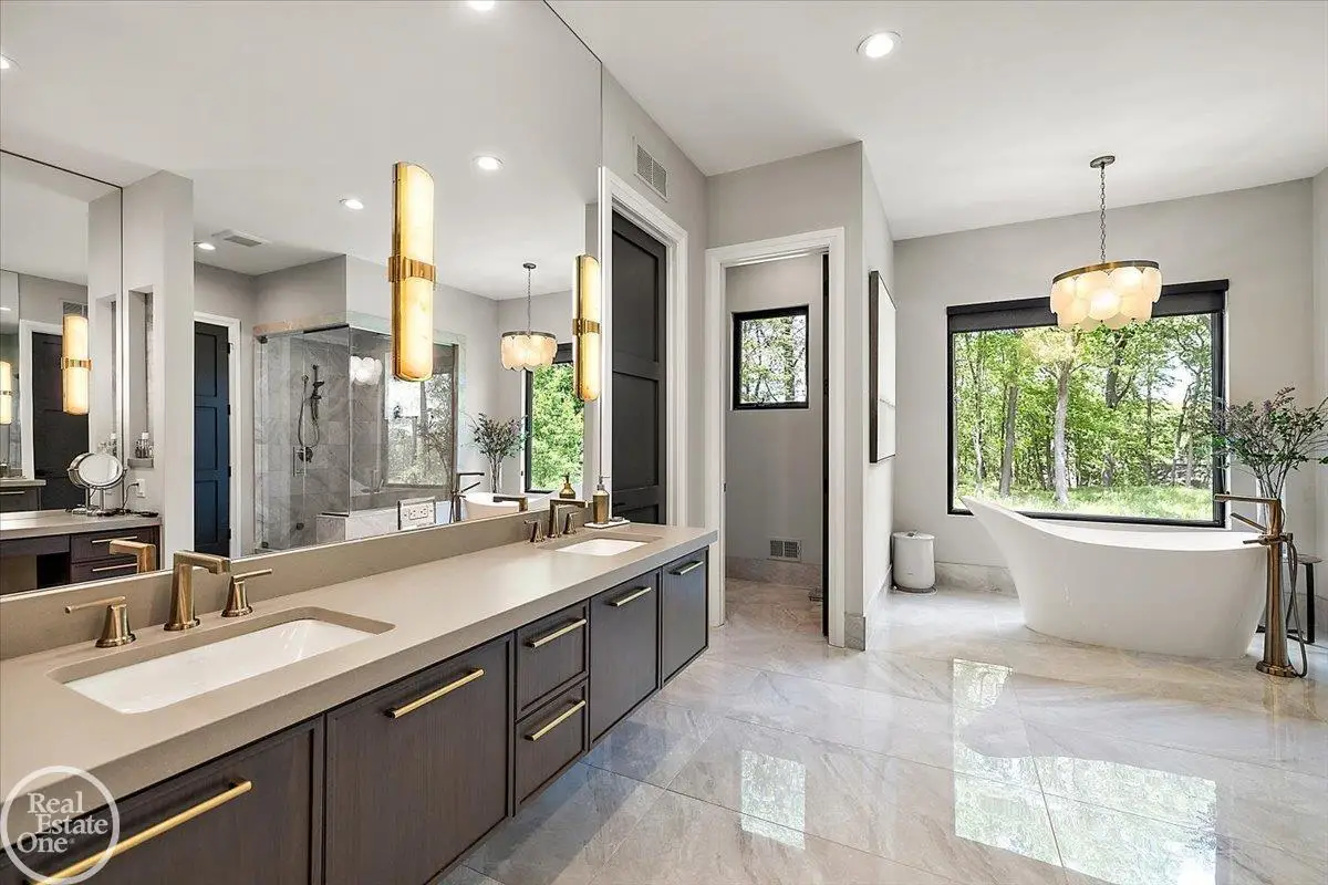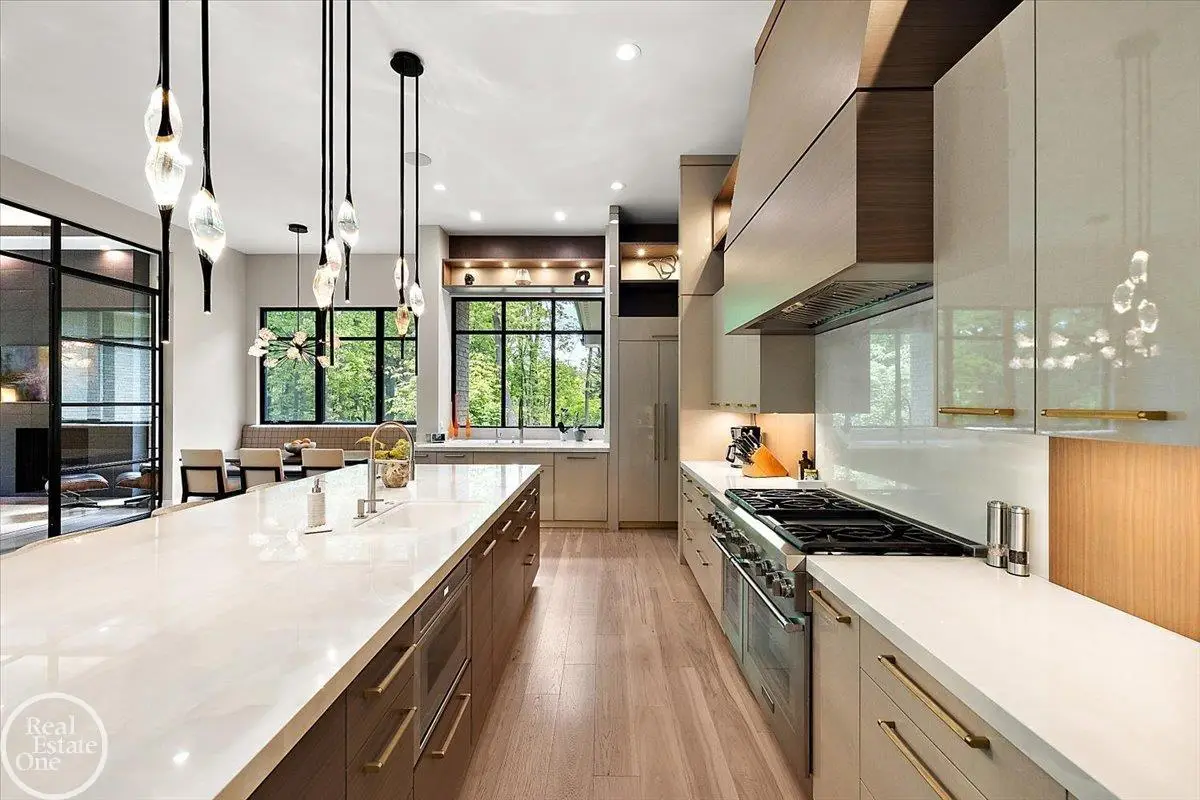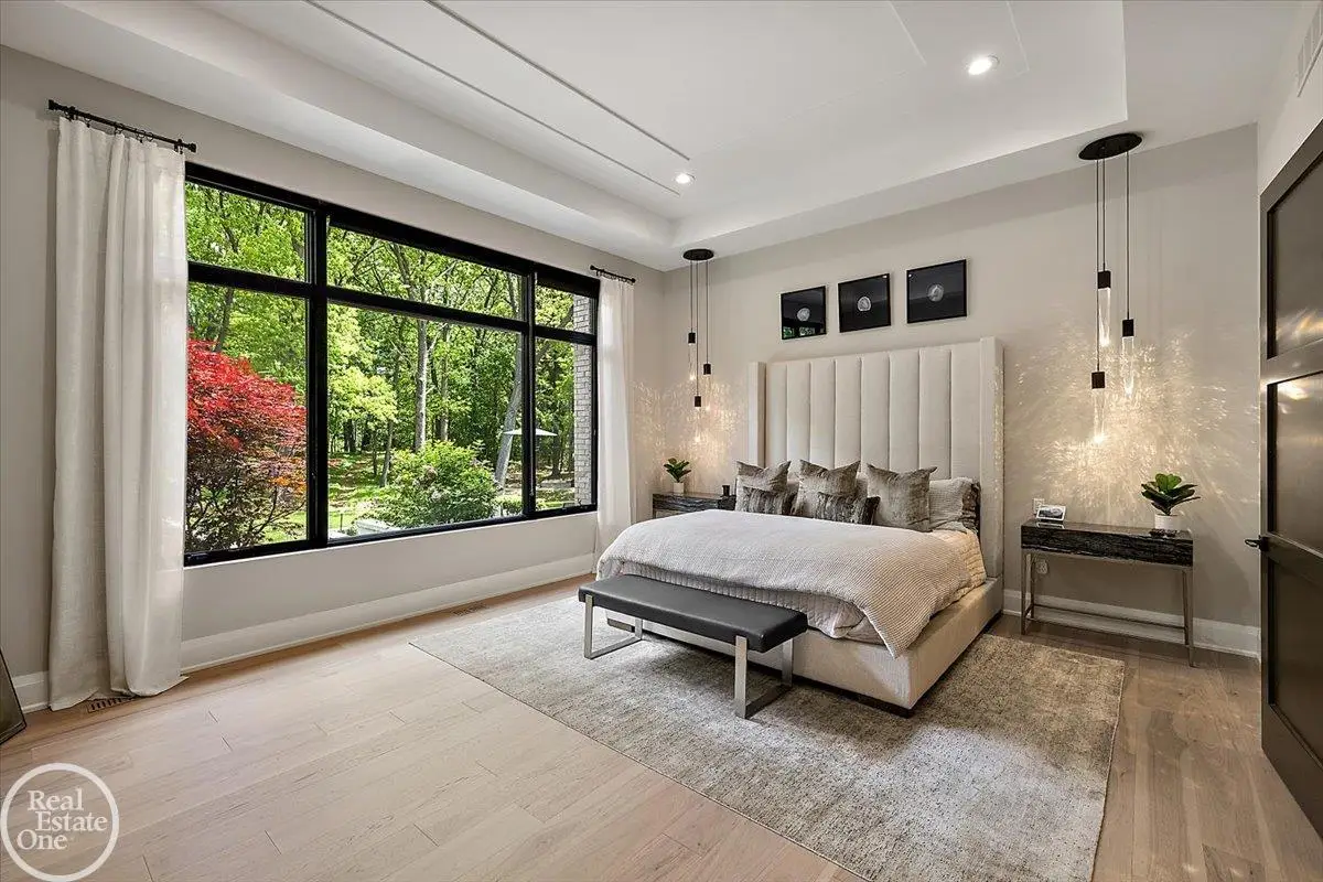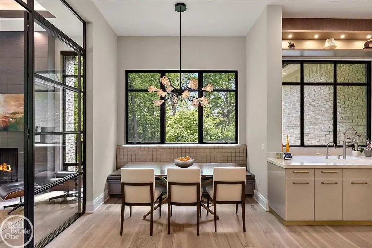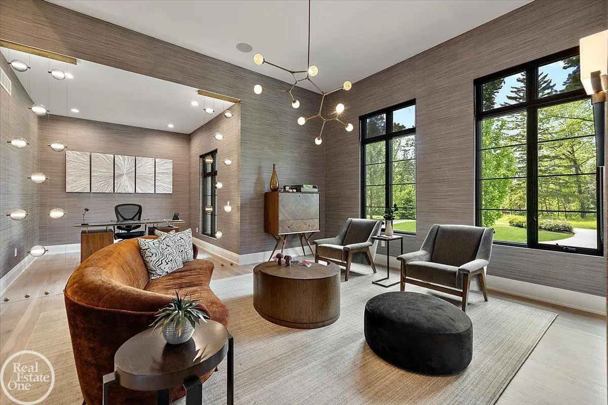 Experience unparalleled modern luxury in this custom-built 2021 Cranbrook masterpiece. Featured in Detroit Design Magazine, this home showcases exquisite interior design by Tutto Interiors, boasting the finest materials and craftsmanship throughout. Situated on 3 private wooded acres, this residence offers a serene escape with an urban edge. The open floor plan, highlighted by soaring 14-foot ceilings and expansive walls of windows, floods the home with natural light and breathtaking views. The gourmet kitchen, equipped with Thermador appliances, is an entertainer's dream. Relax in the stunning great room with its floating fireplace or unwind in the four-seasons glass room, featuring an industrial loft aesthetic and a natural fireplace. The primary suite offers a spa-like experience with a luxurious bath, steam shower, and dual walk-in closets, all overlooking the tranquil wooded landscape. The finished walk-out lower level leads to a 35x12 inground pool, complete with a custom pergola and firepit, perfect for outdoor gatherings.