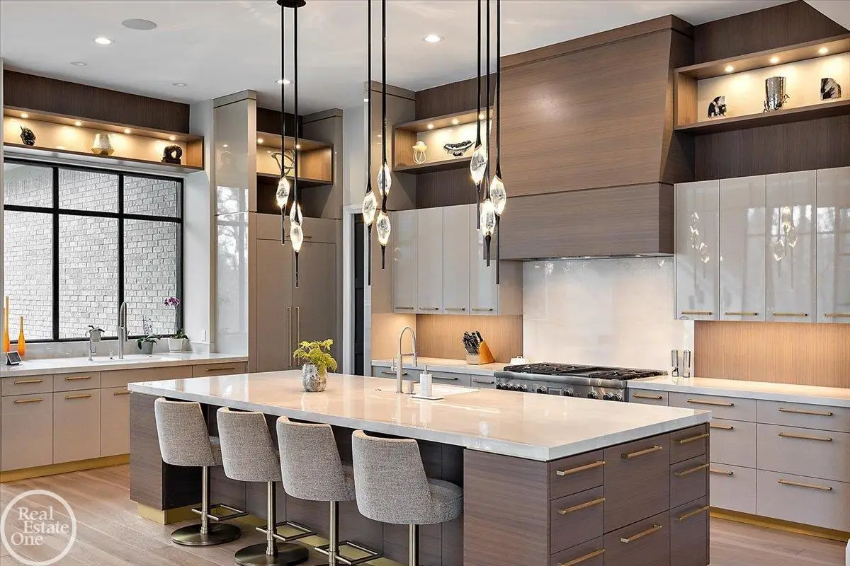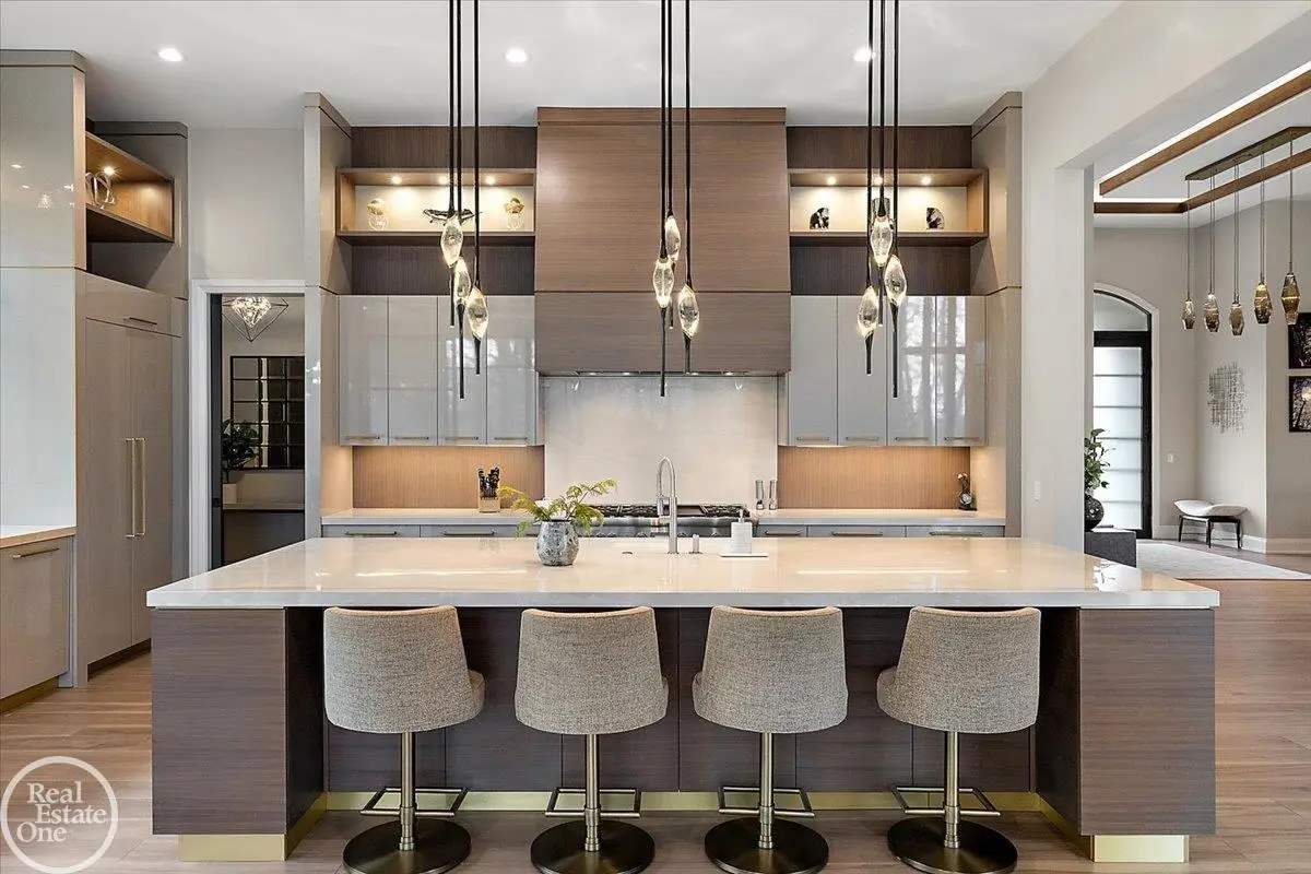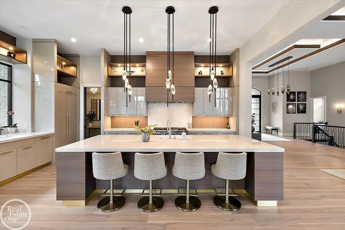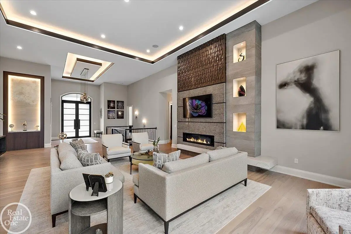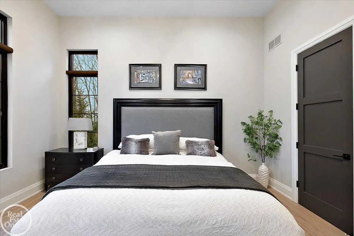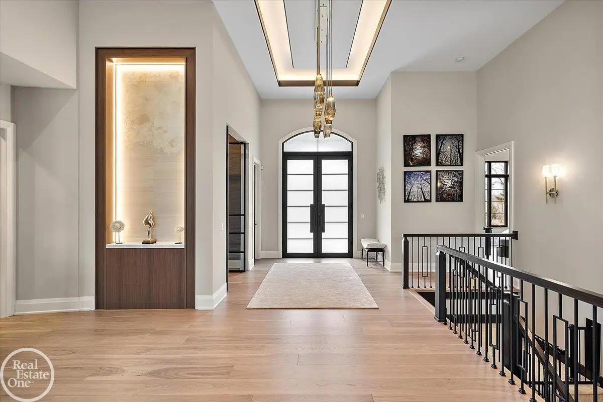 Experience unparalleled modern luxury in this custom-built 2021 Cranbrook masterpiece. Featured in Detroit Design Magazine, this home showcases exquisite interior design by Tutto Interiors, boasting the finest materials and craftsmanship throughout. Situated on 3 private wooded acres, this residence offers a serene escape with an urban edge. The open floor plan, highlighted by soaring 14-foot ceilings and expansive walls of windows, floods the home with natural light and breathtaking views. The gourmet kitchen, equipped with Thermador appliances, is an entertainer's dream. Relax in the stunning great room with its floating fireplace or unwind in the four-seasons glass room, featuring an industrial loft aesthetic and a natural fireplace. The primary suite offers a spa-like experience with a luxurious bath, steam shower, and dual walk-in closets, all overlooking the tranquil wooded landscape. The finished walk-out lower level leads to a 35x12 inground pool, complete with a custom pergola and firepit, perfect for outdoor gatherings.