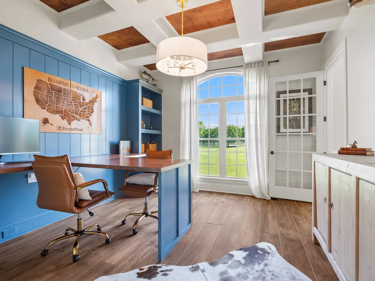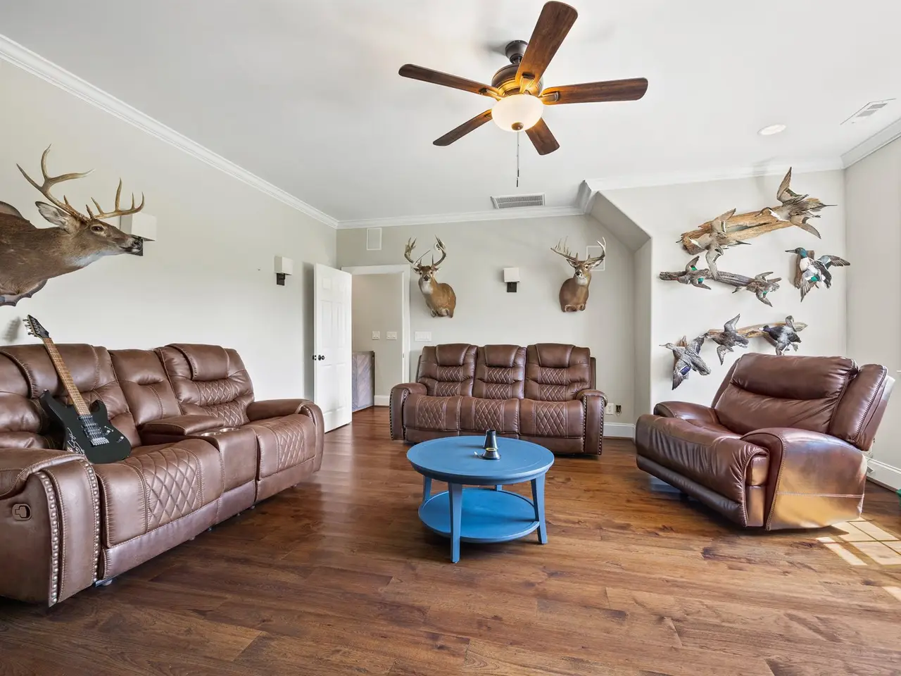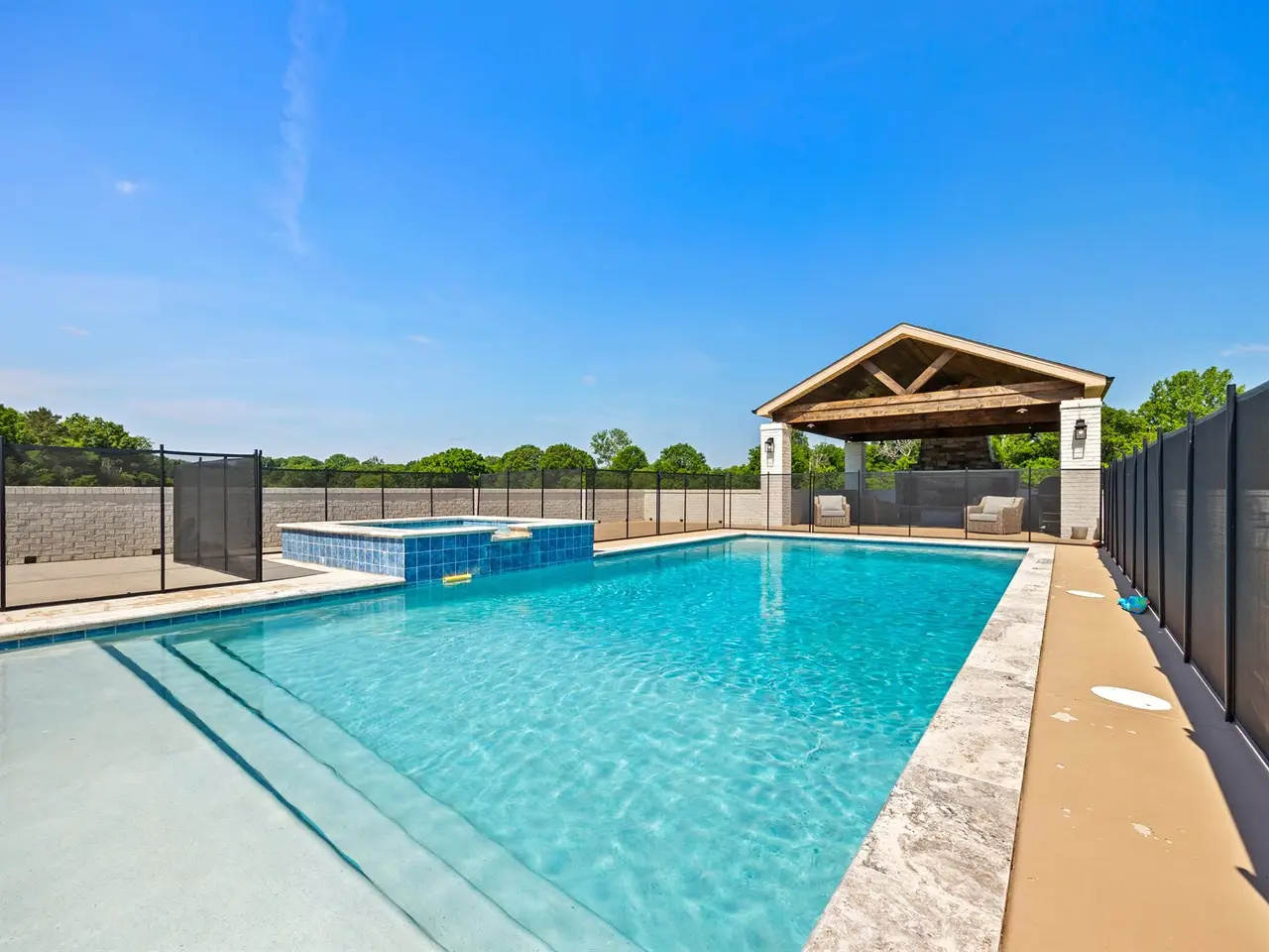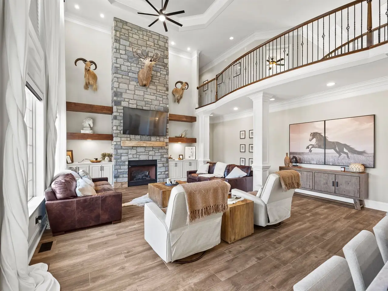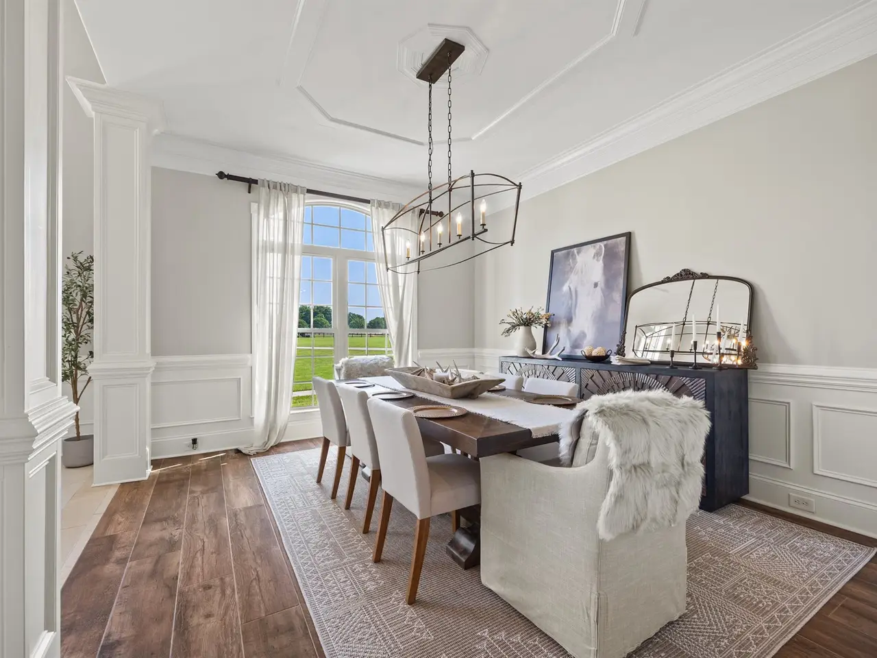 Welcome to an extraordinary opportunity to own a private, gated estate on 38.1 fully fenced acres of pastureland. This stunning modern brick home has been beautifully updated & offers 5 spacious bedrooms, including 2 luxurious primary suites - one on the main level with a sitting area & another upstairs. The heart of the home is an impressive chef's kitchen featuring double quartz islands, a Sub-Zero refrigerator, Wolf appliances, custom cabinetry & more. Step outside to a resort-style backyard oasis with a heated saltwater pool with lounge deck & hot tub. A covered pavilion with a wood-burning fireplace adds year-round enjoyment. The grounds also include a stocked pond, multiple fenced pastures with run-in sheds for livestock & 2 expansive barns. The front hobby barn spans over 3,400 sq ft, is heated & cooled, includes 2 oversized RV doors & is equipped with permanent kennels. A second 2,300 sq ft barn at the rear of the property offers additional storage. Septic is for 4 bedrooms.