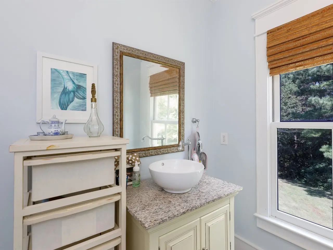 Experience refined living on 5.42 acres with this exceptional property, blending timeless charm and thoughtful design. The main house offers three bedrooms and 3.5 baths, featuring a welcoming living room with gas logs, a formal dining room, and an amazing kitchen with a butcher block work island, breakfast bar, double ovens, 6-burner gas cooktop, and pot filler. Just off the kitchen, a stylish keeping room with wet bar and built-ins provides the perfect space for entertaining. The main-level primary suite is a retreat of its own with a claw-foot tub, tiled shower, dual sinks, and a spacious walk-in closet. The upper level offers 2 bedrooms, each with a private bath for added convenience. Outdoor living is a true highlight of this property, offering multiple spaces to relax and entertain. Enjoy morning coffee on the charming front porch, take in serene views from the upper balcony, or host gatherings on the spacious patio. The screened porch, complete with a wood-burning fireplace, creates a cozy spot for year-round enjoyment - perfect for crisp fall evenings or quiet winter nights. Adding even more versatility, the detached two-car garage includes a beautifully appointed guest suite above, featuring a comfortable living area, bedroom, and full bath - an ideal retreat for overnight visitors, extended stays, or even a private home office.