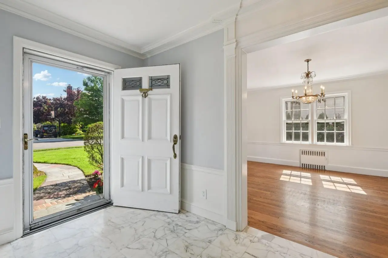Nestled in the heart of picturesque Old Canterbury on a dead end street , this stately Colonial Revival offers timeless elegance. Brick exteriors, symmetrical facades, a slate roof, and a gracious center hall floor plan set the stage, while decorative crown moldings, wainscoting, and gleaming hardwood floors add layers of sophistication throughout. Step through the classic entryway into a grand foyer adorned with intricate millwork and marble tile floors-an elegant prelude to the home's finely crafted interior. Arched openings to the formal living and dining rooms feature layered casings and exquisite moldings that echo a tradition of bespoke detailing. The sunlit formal living room, anchored by a handsome wood-burning fireplace, flows effortlessly into a cozy den bathed in natural light. The formal dining room, spacious and is ideal for entertaining in style. The updated eat-in kitchen features sleek stainless-steel appliances, granite countertops, and ample cabinetry, perfectly balancing form and function. A tastefully designed powder room and a flexible first-floor suite-ideal for guests or as a home office-complete the main level. Upstairs, the primary suite offers a serene retreat with its private bath and generous walk-in closet. Two additional bedrooms and a stylish family bath provide comfort and space for all. A walk-up attic, accessible from the second-floor landing, delivers convenient and abundant storage. The lower level impresses with its high ceilings, exposed beams, and expansive layout that accommodates a play area, laundry, and utility spaces. Outdoors, the private backyard is a lush sanctuary framed by mature hedging-perfect for dining al fresco or relaxing in quiet seclusion. Additional highlights include an attached two-car garage with storage, central air conditioning, gas cooking and heating, RVC Utilities ,water/garbage/Police and electric Rockville Centre school district. With its blend of classic charm and thoughtful updates, this home is a rare gem ready to welcome its next chapter.