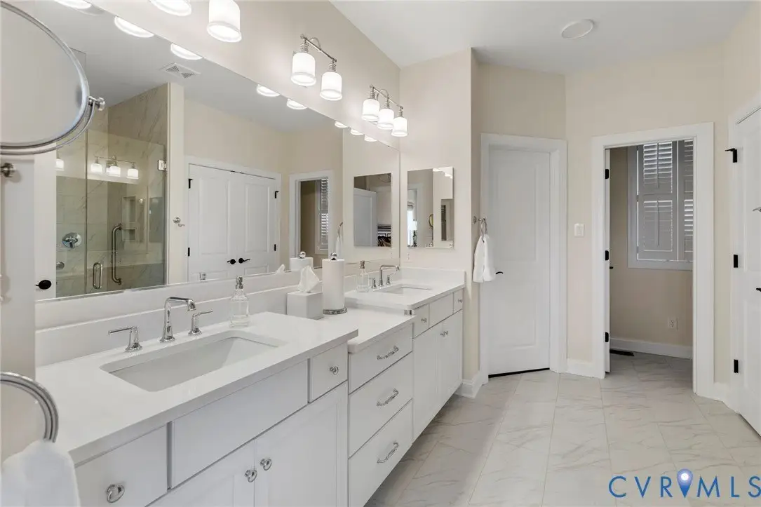 This home is loaded with custom upgrades and thoughtful details throughout. Cabinetry additions include a library with built-ins and desk, full-height mudroom and laundry cabinets with crown, drying rods, shoe storage, and utility sinks. The chef's kitchen offers quartz counters, Wolf ovens, SubZero refrigerator/freezer, Cove dishwasher, and modified cabinetry with undercabinet lighting. Closets feature solid shelving and a custom primary suite system. The primary en-suite features a walk-in shower, double vanities, and a double-door linen closet. Three bedrooms are located on the first floor, including the primary. Premium whole-house painting by H.J. Holtz includes epoxy garage floors and finished trim. Lighting upgrades LED fixtures, fans, mirrors, and dimmers. Outdoor living shines with a pavilion, stone fireplace, retractable enclosures, heaters, deck with chef's kitchen, lighting, and storage. Added value: Generac whole-house generator, oversized island, encapsulated climate-controlled crawlspace, two-zone HVAC, metal shed roofs, extensive recessed lighting, large walk-in storage space above the two-car garage, and 50 AMP exterior hook-up.