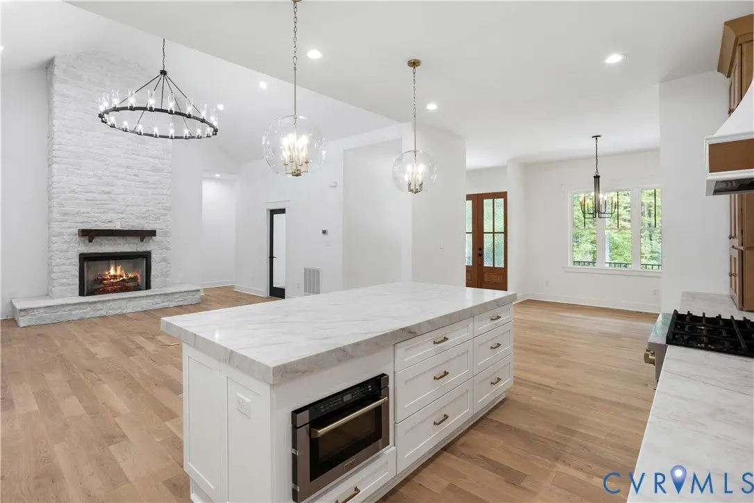 Location! Location! Location! ENJOY THE PRIVACY OF BEING ON 2+ ACRES AND ONLY 7 MILES FROM SHORT PUMP! This beautifully crafted modern farmhouse is a testament to this custom builders commitment to detail and luxury! This 4 bedroom, 3 1/2 bath 1 level home seamlessly blends modern design with timeless farmhouse elements creating an inviting space for family and friends. It is truly a showplace! From the moment you approach the home, the inviting front porch is a perfect retreat to sit, relax, and take in the peace and quiet. This floorpan is perfectly designed for 1 floor living. The gourmet kitchen has the latest trends with quartz countertops, stainless steel appliances, appliance storage in cabinets, gas cooking and gorgeous fixtures throughout. Keep all of the clutter out of the main kitchen by using the large butlers pantry with an abundance of cabinet space, full sink, beverage cooler and additional work area. Hardwood floors throughout with the exception of the tiled full baths and laundry. The vaulted Family Room with beautiful stone gas fireplace has access to the spacious covered porch centrally located in the back of the home. An office/hobby room is located off of the Family Room. The primary bedroom suite has access to the covered porch for your morning coffee, a built-in book case, and 2 walk in closets leading to the en-suite bath. The luxurious spa like primary bathroom has an oversized walk in shower with 2 rain shower heads in the ceiling, a soak in tub, quartz countertops and even a make-up vanity. There are 3 additional bedrooms located on the other end of the home. A half bath is conveniently located off of the covered porch and hallway for convenience. 10 ft ceilings throughout with the exception of the vaulted Family Room. Spacious 3-car garage. Conditioned crawlspace. Long paved driveway. An exterior outdoor lighting package is also included. This home is truly a gem! The pictures are the actual home which should be completed in the next 30 days.