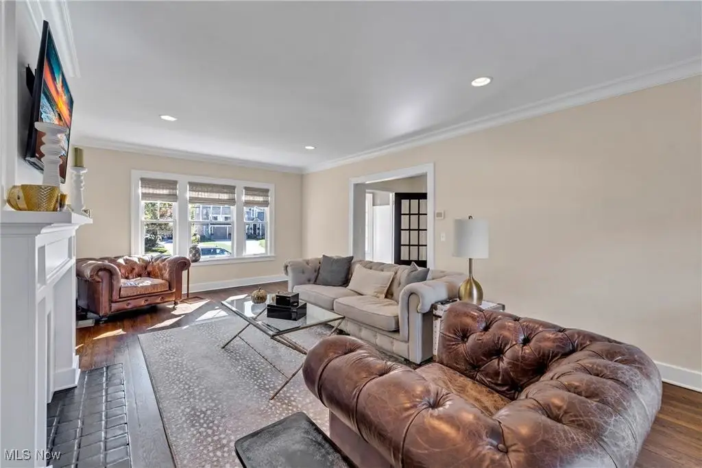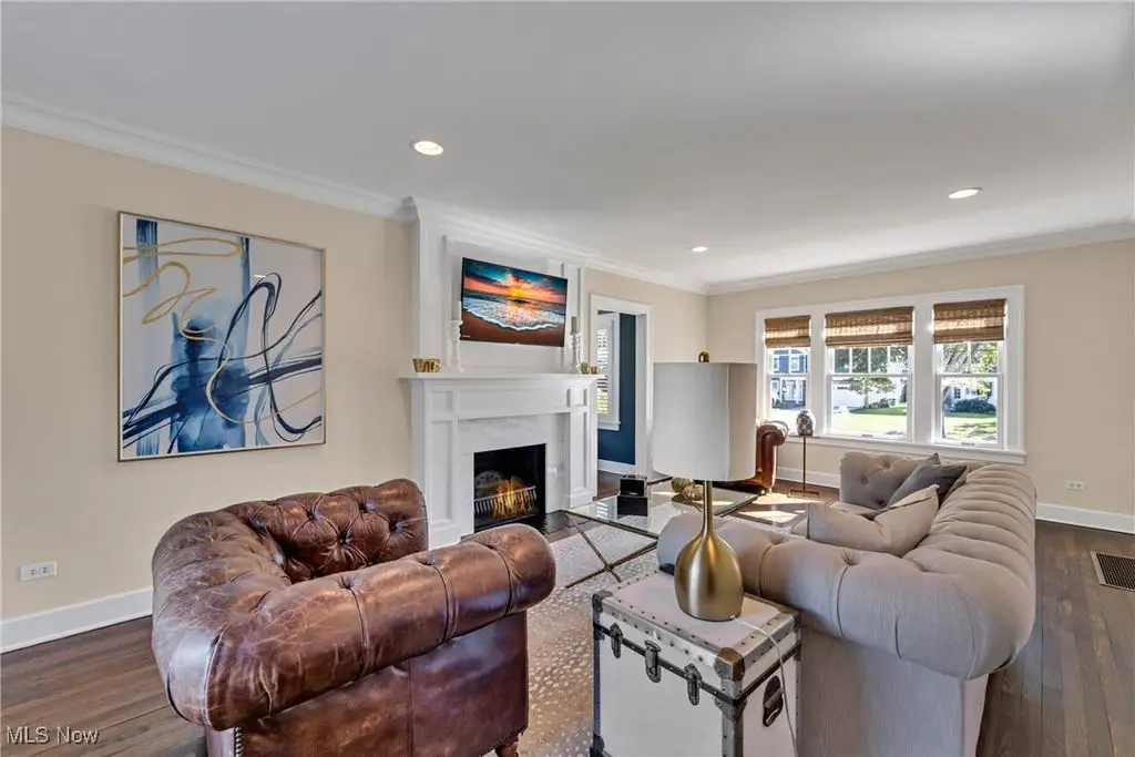 Welcome to this stunning 4 bed, 3.5 bath Colonial in the heart of Beachcliff, just steps from the lake. Completely transformed over the past several years, this home offers a perfect blend of style, function, and quality craftsmanship. Every inch reflects thoughtful design and attention to detail. Step inside to a warm and inviting living room centered around a beautiful fireplace, ideal for relaxing or entertaining and a nearby office or sunroom. The fabulous kitchen is a true showstopper, with an oversized island that opens seamlessly to the vaulted family room and dining area, creating an effortless flow for gatherings. The main level also features a convenient office space and a redesigned half bath, both as practical as they are stylish. Throughout the home, you'll find refinished hardwood floors, plantation shutters, new millwork, and a Sonos sound system for a cohesive, elevated living experience. Upstairs, the luxurious primary suite was expanded and a spa-like bath with a stunning walk-in shower and dual vanities was added, as well as a walk-in closet. 2 additional bedrooms are serviced by the renovated hall bath. A full bath was added on the third floor, creating the perfect guest or teen suite. The lower level has been transformed into a spacious recreation room, ideal for movie nights or gamedays, or gaming. Outside, enjoy the Trex deck overlooking a professionally landscaped yard, the perfect setting for outdoor living. Additional upgrades include the addition of A/C with two units for year-round comfort and countless upgrades that make this home truly move-in ready.