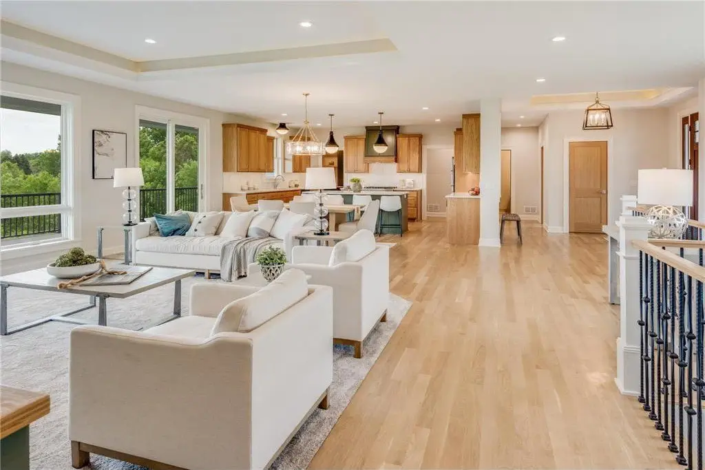 This breathtaking new construction home is perfectly positioned on a sprawling 6-acre lot on the border of Dayton & Rogers! This stunning rambler offers a thoughtfully designed open layout that exudes both comfort and elegance and is loaded with features throughout. From the beautiful white oak flooring to the tiled bathrooms showcasing gorgeous accent walls, this home is meant to impress everyone that sees it. The heart of the home is the dream kitchen, complete with an oversized walk-in pantry, a massive center island and naturally stained white oak cabinets. It is the ideal space for entertaining and daily living alike. The luxurious owner's suite includes stone-tiled flooring, a spa-like ensuite, and private access to a massive 40 x 12 covered porch—perfect for enjoying the serene pond water views year-round. The oversized family room in the lower level is a true showstopper, featuring a wet bar that makes it an entertainer’s paradise. With its blend of modern amenities and timeless style, this home is your opportunity to experience unparalleled craftsmanship in a peaceful, picturesque setting.