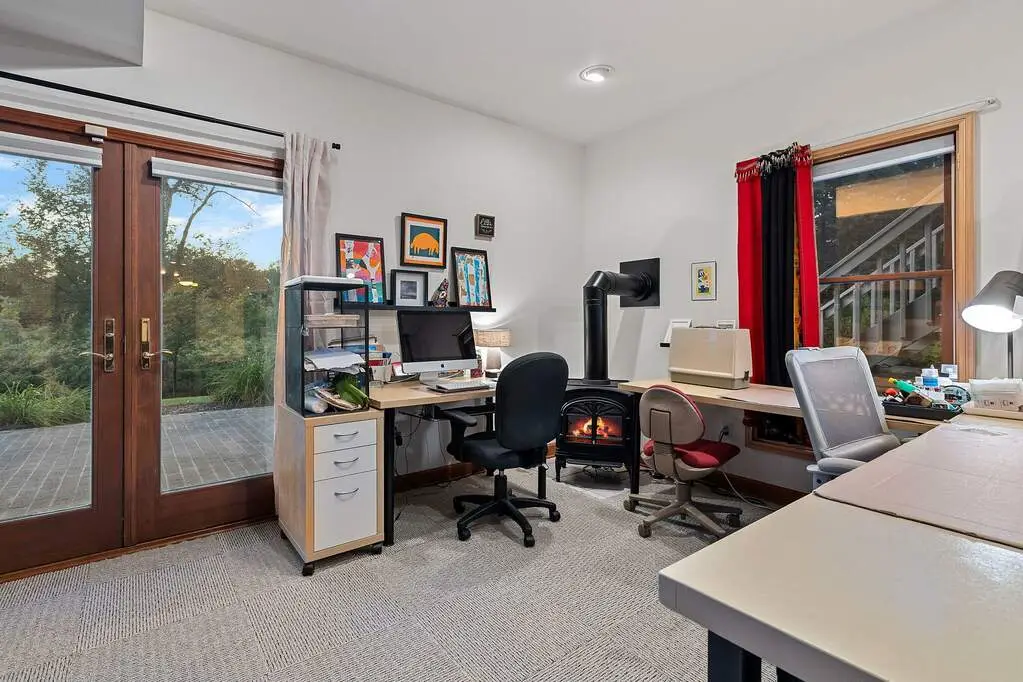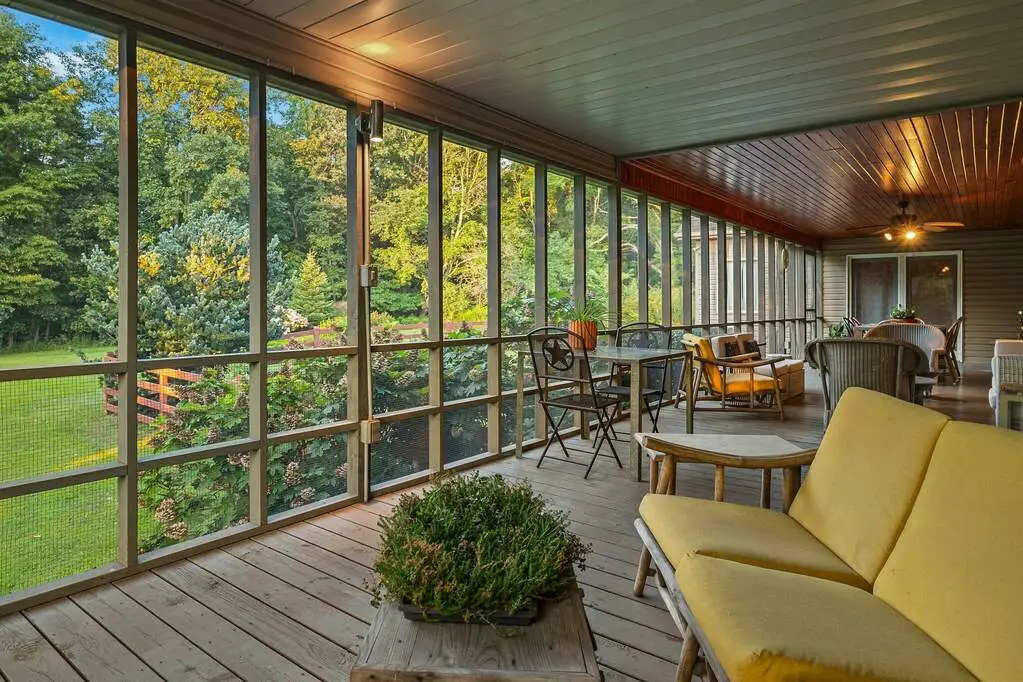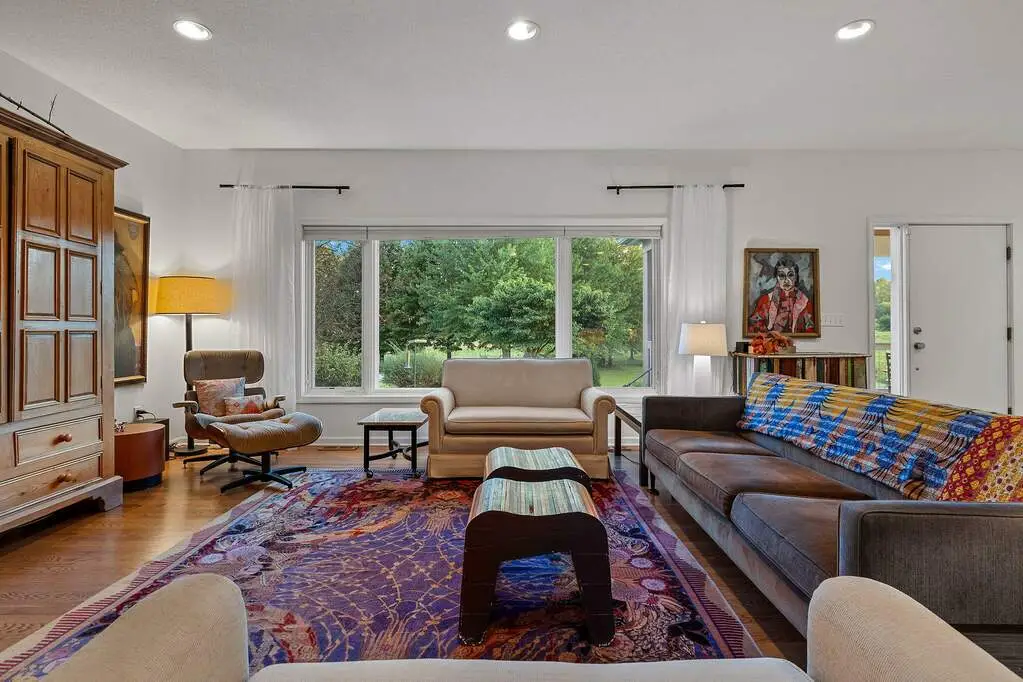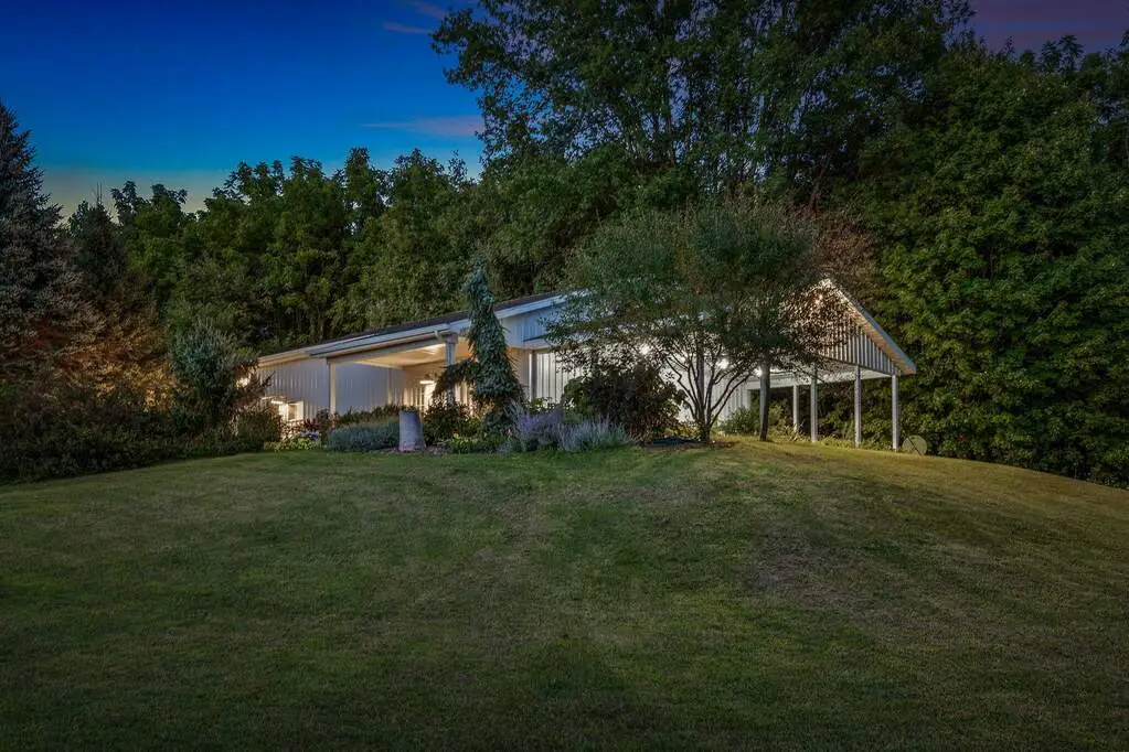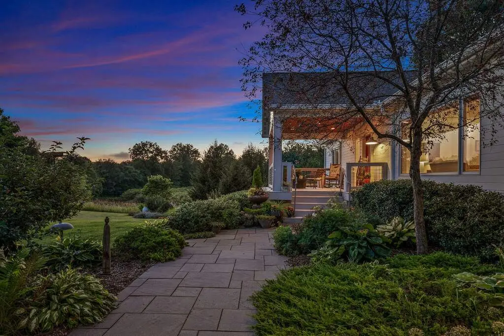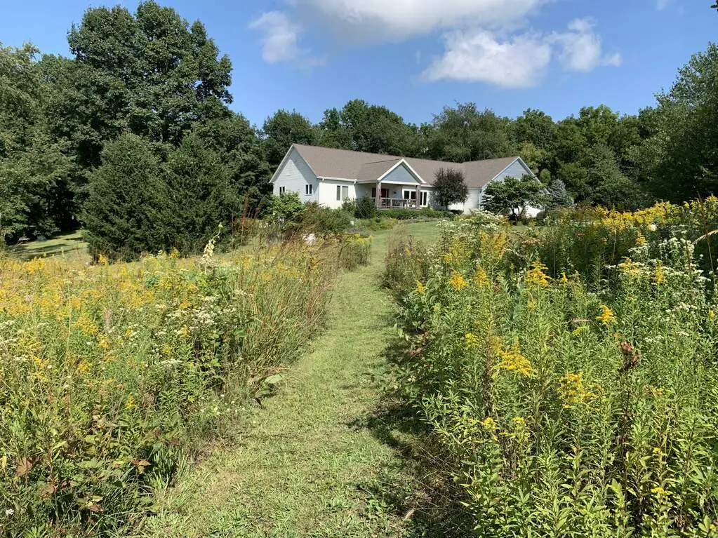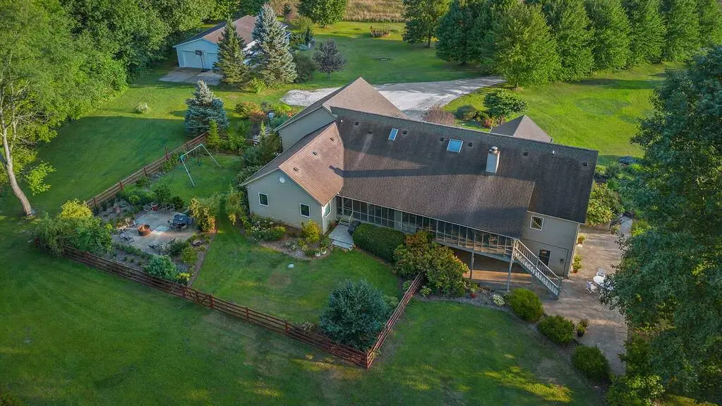 Come and experience 31 rolling acres of quiet, secluded, natural beauty and the generous, welcoming home nestled within. Barely 15 minutes away from New Buffalo, Three Oaks and Lake Michigan beaches, this property is an oasis of beautifully restored and protected land. The lovely refashioned 4,900 square foot, 5 Bedroom, 3.5 bath home provides generous rooms with the ease of main level living. A welcoming space with abundant large windows and skylights which bring light and views to every room. The Great Room with gas fireplace flows into the large attractive Chef's kitchen with quality appliances and quartz counters. The generous Primary Suite has its own wing. The 50' Screened Porch, accessed by four rooms, surrounds the entire backside of the property overlooking unique gardens and the Oak Savannah, and through which is access to a Shirley Heinze protected land trust parcel. The large lower level walk out includes a Conversation area/Library, Theatre space, Studio, and Kitchenette. The attached 3 car plus garage with floored storage above adds to the ease of living. As does the large heated 2 bay Pole Barn perched on the sledding hill, which includes a workshop, storage room, and one of the covered porches. The seamless access between home and land continues throughout the property. Patios, porches, fire pits, and benches are placed for gathering, eating and relaxing. Each with its own views and mood. Each allowing for true immersion into the uniqueness of nature. As are the groomed walking paths which wind through the oaks, the meadows and the gardens. Wildlife abounds as do the changing skies and sights and scents. This is a property that just must be seen to appreciate and experience. Authentic, livable and in its glory.