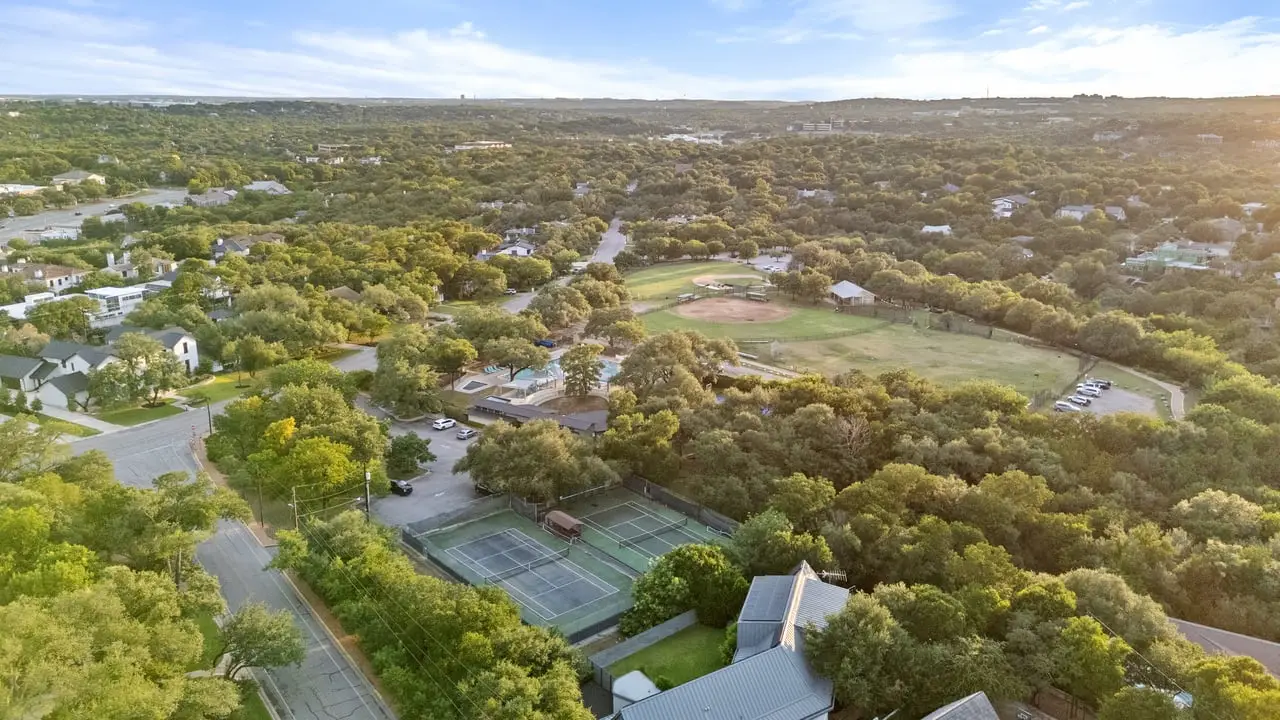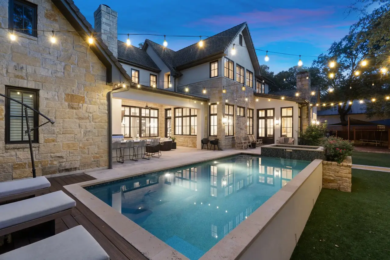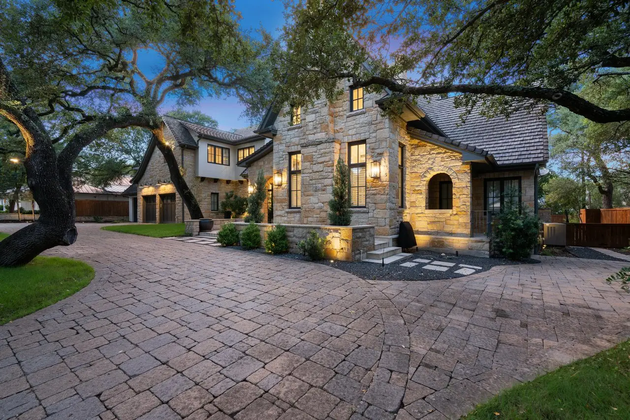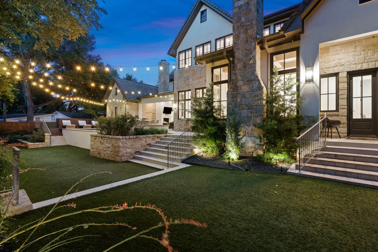 Welcome to 4907 Rollingwood Drive, a striking architectural gem nestled in the heart of one of Austin’s most prestigious neighborhoods. This sprawling 6,655-square-foot estate is a masterclass in transitional modern design—reimagined in 2021 through a collaboration with renowned LaRue Architects, interior design firm Kopfer Taylor Interiors, and luxury home builder ETF. The result is a residence that seamlessly merges timeless craftsmanship with elevated, contemporary style. Sited on an expansive .45-acre tree-lined lot, the home’s European style stone façade and graceful arches immediately command attention. Inside, the entry sets the tone with an expansive great room, abundant natural light, and an effortless flow between living spaces. Walls of glass frame the main living and dining areas, creating a constant visual connection to the outdoor covered patio, pool, and gardens beyond. The interiors exude warmth and refinement, with custom millwork, white oak flooring, designer lighting, and curated finishes at every turn The heart of the home is the open-concept kitchen—a true culinary showpiece featuring an oversized island, tailored cabinetry, premium appliances, and a walk-in pantry. Adjacent to the kitchen, a cozy breakfast nook with a fireplace invites intimate mornings, while a dramatic formal dining room with exposed beams offers a spectacular setting for hosting. Two distinct living rooms—each flooded with natural light—offer versatility for both grand entertaining and relaxed family time. The main-level primary suite is an indulgent retreat, complete with two generous walk-in closets, a spa-like bath with soaking tub and oversized shower, and direct access to a covered porch nestled beneath the trees. A private library adjoins the suite, offering the perfect space to unwind or work in peace. At the opposite wing of the home, a private guest suite with its own bath, walk-in closet, breezeway, and sun porch provides elegant accommodations for extended stays or multi-generational living. Upstairs, three additional bedrooms—each with their own en-suite bathroom—are designed with comfort and style in mind. A centrally located bonus room functions beautifully as a media lounge, game room, or gym creating a central hub for family fun and connection. An upstairs laundry room adds practicality and convenience. Outside, the property is a sanctuary designed for both relaxation and celebration. The expansive covered terrace includes a full outdoor kitchen, stone fireplace, and ample space for al fresco dining and lounging. The shimmering pool is flanked by a spa and surrounded by lush landscaping, offering total privacy and serenity. A mosquito misting system, automated landscape lighting, and whole-home generator ensure year-round comfort and peace of mind. Additional features include a circular driveway, a spacious motor court, and an oversized garage with room for up to twelve vehicles—making this an ideal setting for entertaining on any scale. The property also benefits from a shared well for irrigation and pool systems, ensuring efficiency and sustainability. Membership to the Rollingwood community pool is included, providing access to additional neighborhood amenities just moments away. With its architectural pedigree, exquisite detailing, and seamless blend of form and function, 4907 Rollingwood Drive offers a rare opportunity to own a truly exceptional home in a location that balances privacy, prestige, and proximity to Austin’s best schools, shops, and dining. This is more than a residence—it’s a lifestyle of timeless luxury.