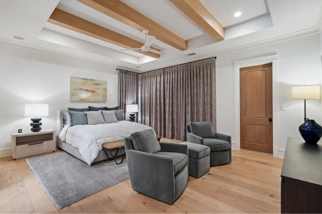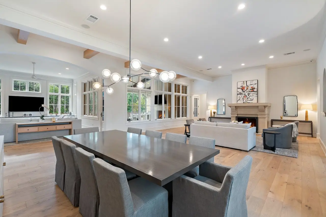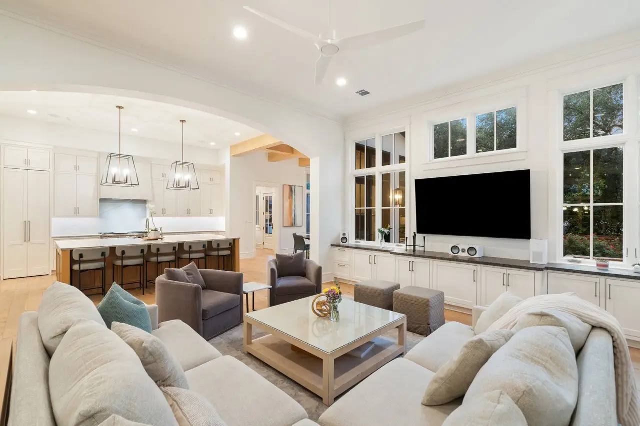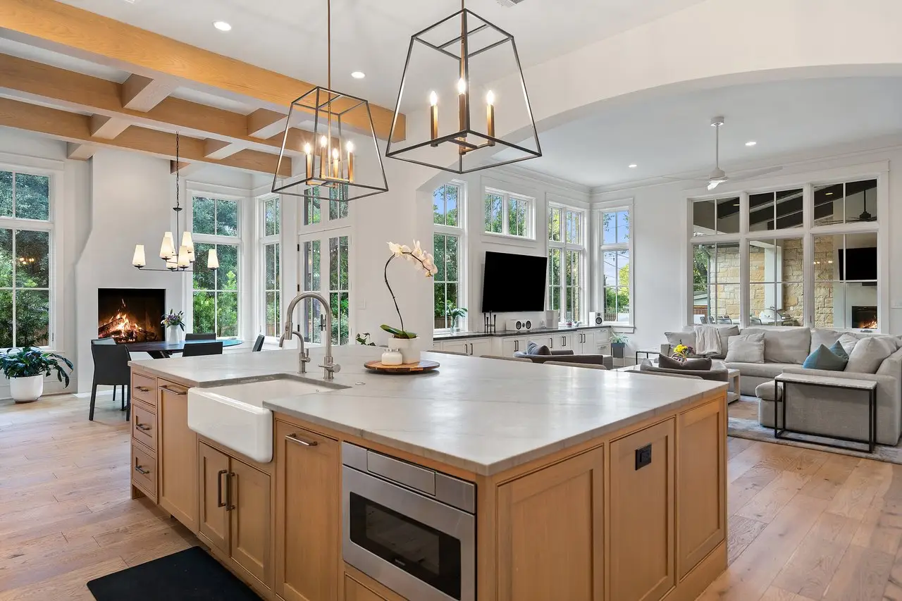 Welcome to 4907 Rollingwood Drive, a striking architectural gem nestled in the heart of one of Austin’s most prestigious neighborhoods. This sprawling 6,655-square-foot estate is a masterclass in transitional modern design—reimagined in 2021 through a collaboration with renowned LaRue Architects, interior design firm Kopfer Taylor Interiors, and luxury home builder ETF. The result is a residence that seamlessly merges timeless craftsmanship with elevated, contemporary style. Sited on an expansive .45-acre tree-lined lot, the home’s European style stone façade and graceful arches immediately command attention. Inside, the entry sets the tone with an expansive great room, abundant natural light, and an effortless flow between living spaces. Walls of glass frame the main living and dining areas, creating a constant visual connection to the outdoor covered patio, pool, and gardens beyond. The interiors exude warmth and refinement, with custom millwork, white oak flooring, designer lighting, and curated finishes at every turn The heart of the home is the open-concept kitchen—a true culinary showpiece featuring an oversized island, tailored cabinetry, premium appliances, and a walk-in pantry. Adjacent to the kitchen, a cozy breakfast nook with a fireplace invites intimate mornings, while a dramatic formal dining room with exposed beams offers a spectacular setting for hosting. Two distinct living rooms—each flooded with natural light—offer versatility for both grand entertaining and relaxed family time. The main-level primary suite is an indulgent retreat, complete with two generous walk-in closets, a spa-like bath with soaking tub and oversized shower, and direct access to a covered porch nestled beneath the trees. A private library adjoins the suite, offering the perfect space to unwind or work in peace. At the opposite wing of the home, a private guest suite with its own bath, walk-in closet, breezeway, and sun porch provides elegant accommodations for extended stays or multi-generational living. Upstairs, three additional bedrooms—each with their own en-suite bathroom—are designed with comfort and style in mind. A centrally located bonus room functions beautifully as a media lounge, game room, or gym creating a central hub for family fun and connection. An upstairs laundry room adds practicality and convenience. Outside, the property is a sanctuary designed for both relaxation and celebration. The expansive covered terrace includes a full outdoor kitchen, stone fireplace, and ample space for al fresco dining and lounging. The shimmering pool is flanked by a spa and surrounded by lush landscaping, offering total privacy and serenity. A mosquito misting system, automated landscape lighting, and whole-home generator ensure year-round comfort and peace of mind. Additional features include a circular driveway, a spacious motor court, and an oversized garage with room for up to twelve vehicles—making this an ideal setting for entertaining on any scale. The property also benefits from a shared well for irrigation and pool systems, ensuring efficiency and sustainability. Membership to the Rollingwood community pool is included, providing access to additional neighborhood amenities just moments away. With its architectural pedigree, exquisite detailing, and seamless blend of form and function, 4907 Rollingwood Drive offers a rare opportunity to own a truly exceptional home in a location that balances privacy, prestige, and proximity to Austin’s best schools, shops, and dining. This is more than a residence—it’s a lifestyle of timeless luxury.