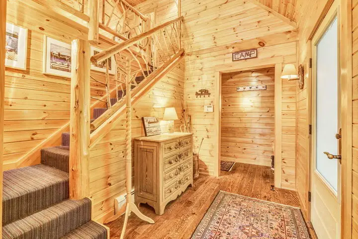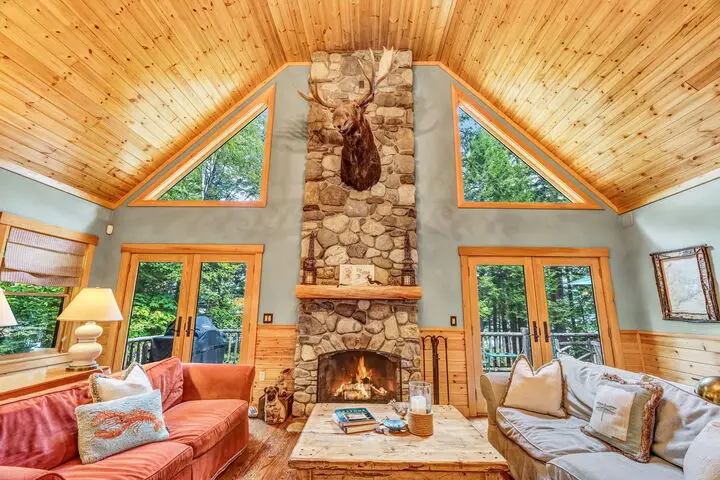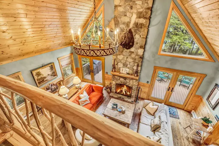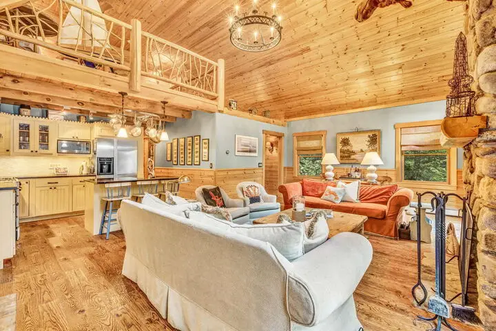 GREAT POND First time offered — a rare opportunity to own a custom-built, year-round log home on Great Pond, the most celebrated of the Belgrade Lakes! Set on nearly an acre in one of the lake's most highly desired neighborhoods, this 4-bedroom (3BR septic), 4-bath retreat combines natural materials, artisan craftsmanship, beautiful gardens & modern comforts. With 100 ft of deep-water frontage, private dock & sunrise views, the property offers both privacy & connection to one of Maine's most iconic lakefront communities. Welcoming foyer opens to a light-filled great room where soaring cathedral ceilings, wood-burning stone fireplace & wall of windows frame unobstructed lake views. The open dining & kitchen area features custom cabinetry, stone counters & center island, flowing seamlessly to the expansive lakeside deck. Primary ensuite includes radiant heat, steam shower, walk-in closet & a private deck wired for a hot tub. Two additional bedrooms & full bath complete the main level. Upstairs, an ensuite guest bedroom offers privacy with a separate loft suitable for a home office or additional guests. The daylight walkout level was designed for gathering, featuring a family & media room with gas fireplace, a game room with pool/ping pong and built-in Murphy bed. Full kitchenette/large laundry room with three refrigerators—full-size, wine & beverage—supports entertaining. The oversized custom-tile shower with stone floor offers spa-level comfort. Walkout access leads to a bluestone patio framed by professionally landscaped gardens, stonework & outdoor lighting. Walk to ''The Mountain'' trailhead, access Maine's snowmobile trail system or enjoy world-class golf at nearby Belgrade Lakes Golf Course. Sugarloaf Ski Resort is just over an hour away. A short walk brings you to the Belgrade Lakes Village with its charming General Store, restaurants, and wine & cheese shop. Less than 30 minutes to Waterville or Augusta, 60 minutes to Sugarloaf & under 90 minutes to Portland.