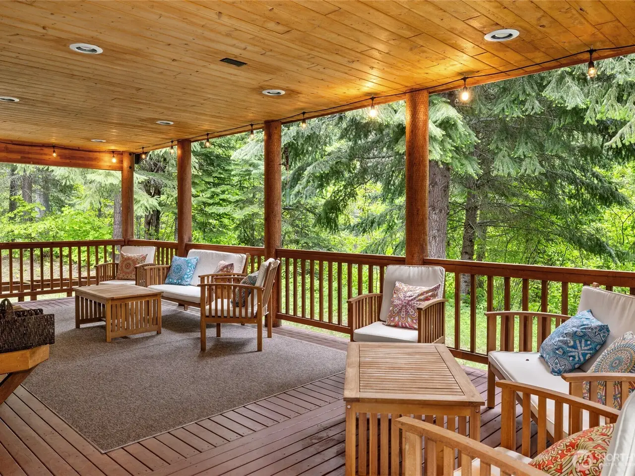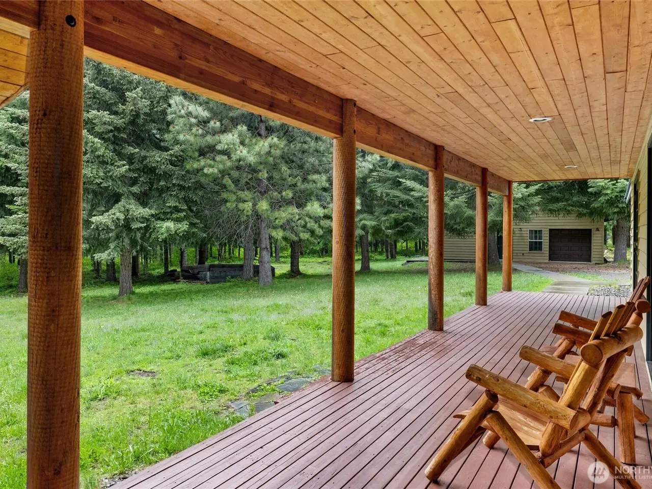 Escape to tranquility on this breathtaking 5-acre retreat, tucked away in the trees along the serene shores of Lake Cle Elum. This secluded retreat offers beauty, privacy, and four seasons of recreational fun! The main house features 3 beds, 3 baths, and a cozy living room with a wood-burning fireplace. The kitchen opens onto a spacious dining area, perfect for entertaining. Enjoy outdoor living on the wrap-around covered deck with a fireplace. Property offers a separate guest house (638 sq ft) with sleeping loft, kitchenette, and garage. Trail access to the beach for a day of relaxation. Whether it's a vacation getaway or your primary residence, this property offers the ultimate in serenity and enjoyment. No HOA, no CC&Rs.