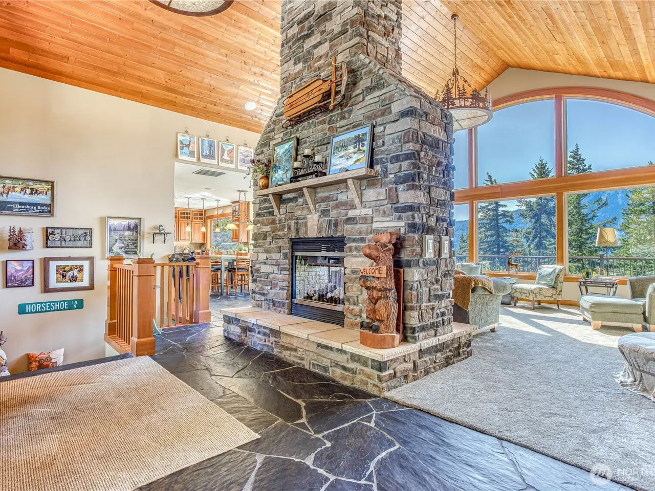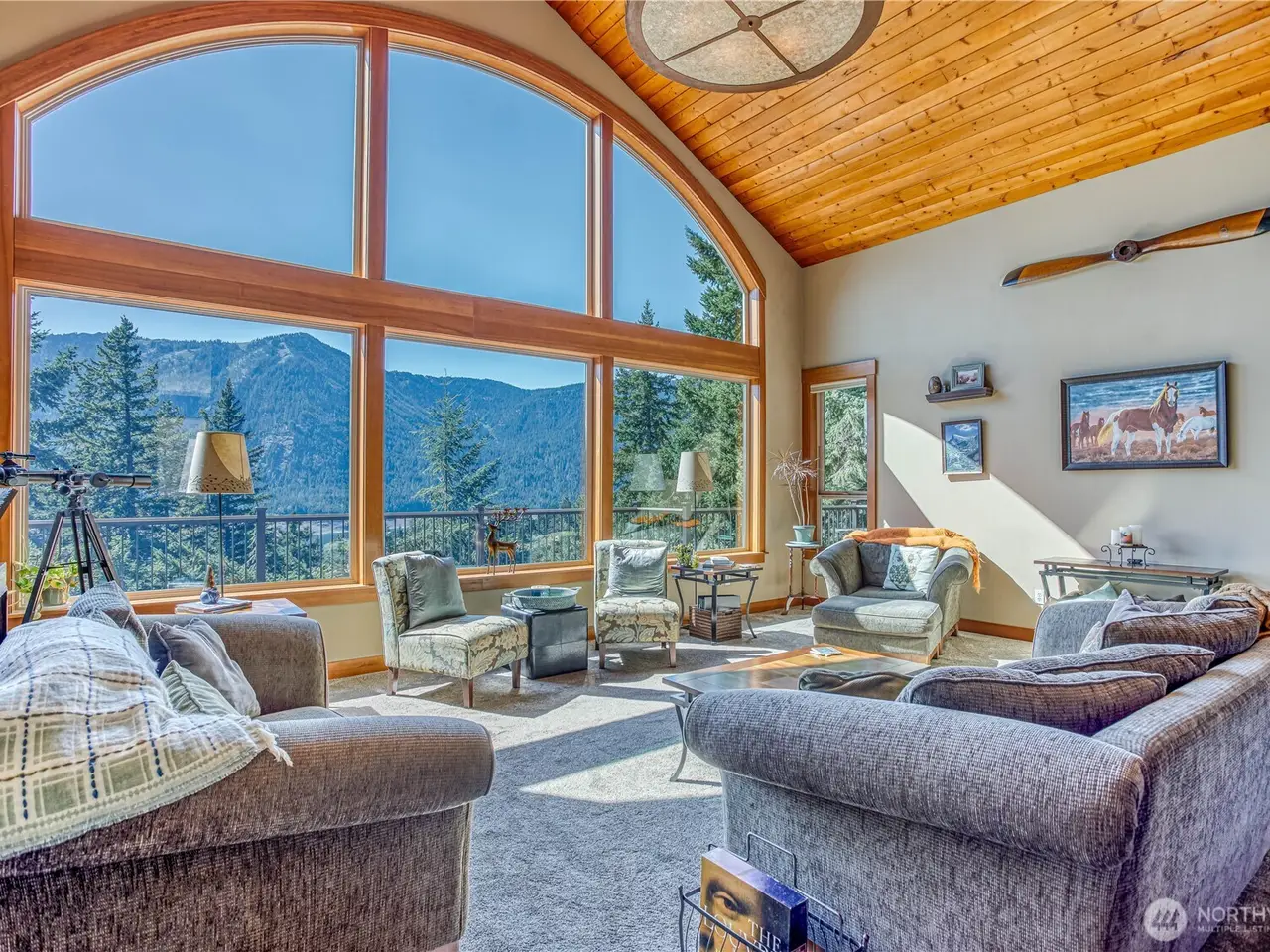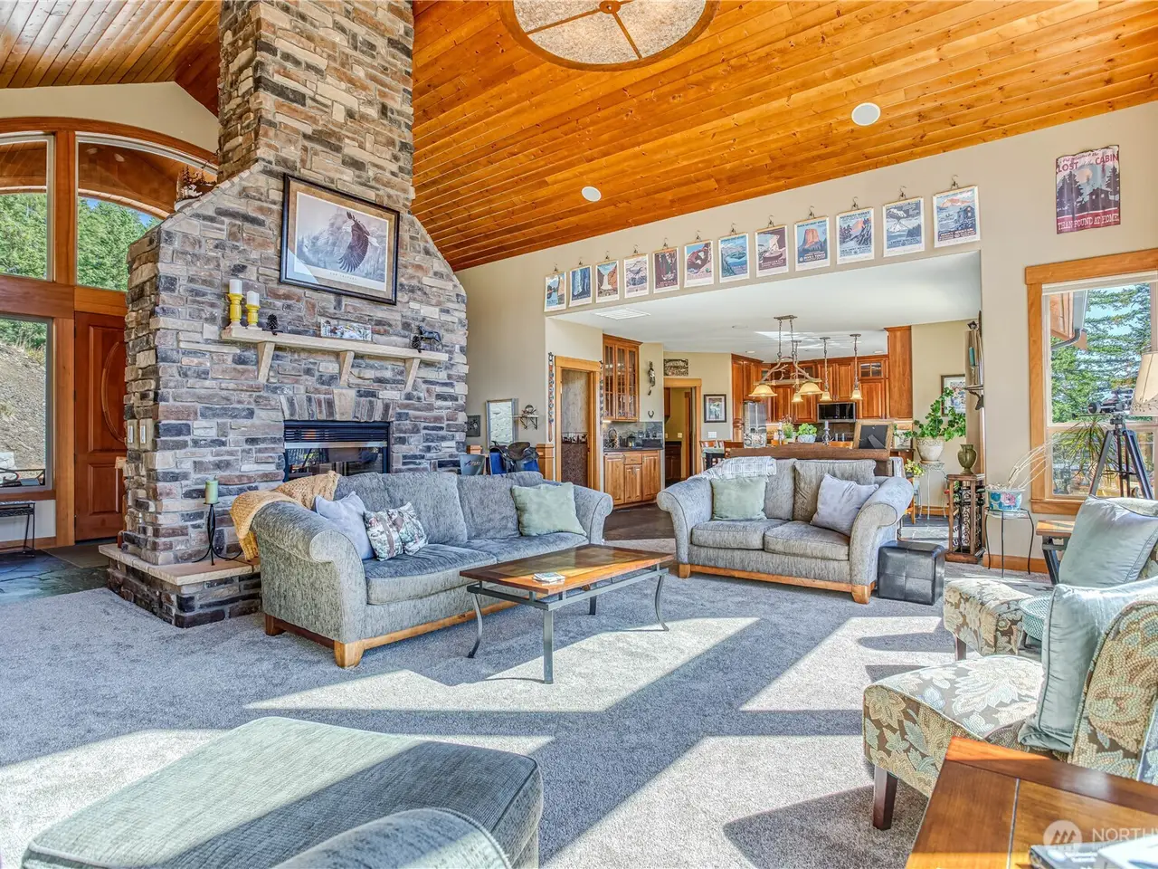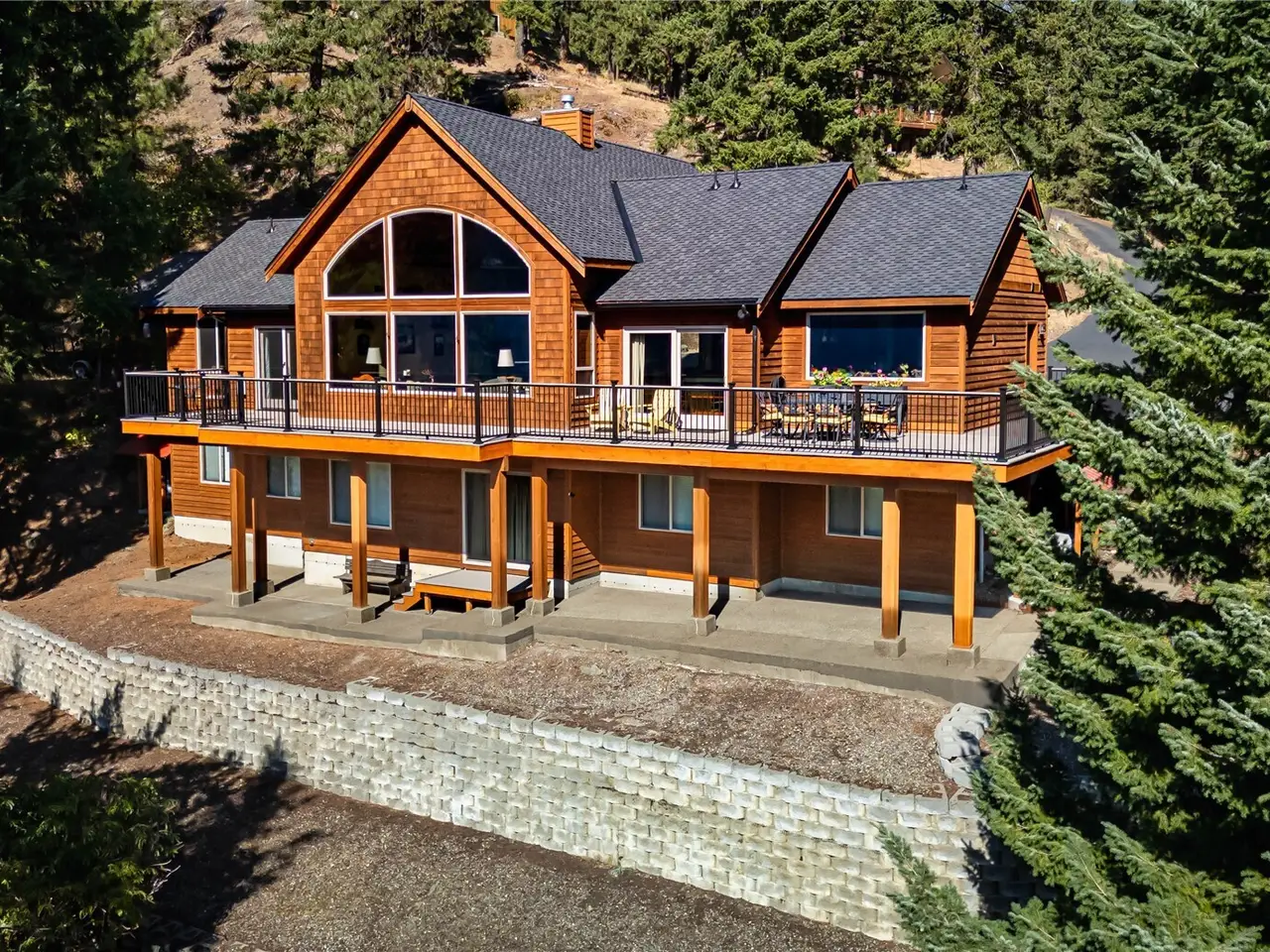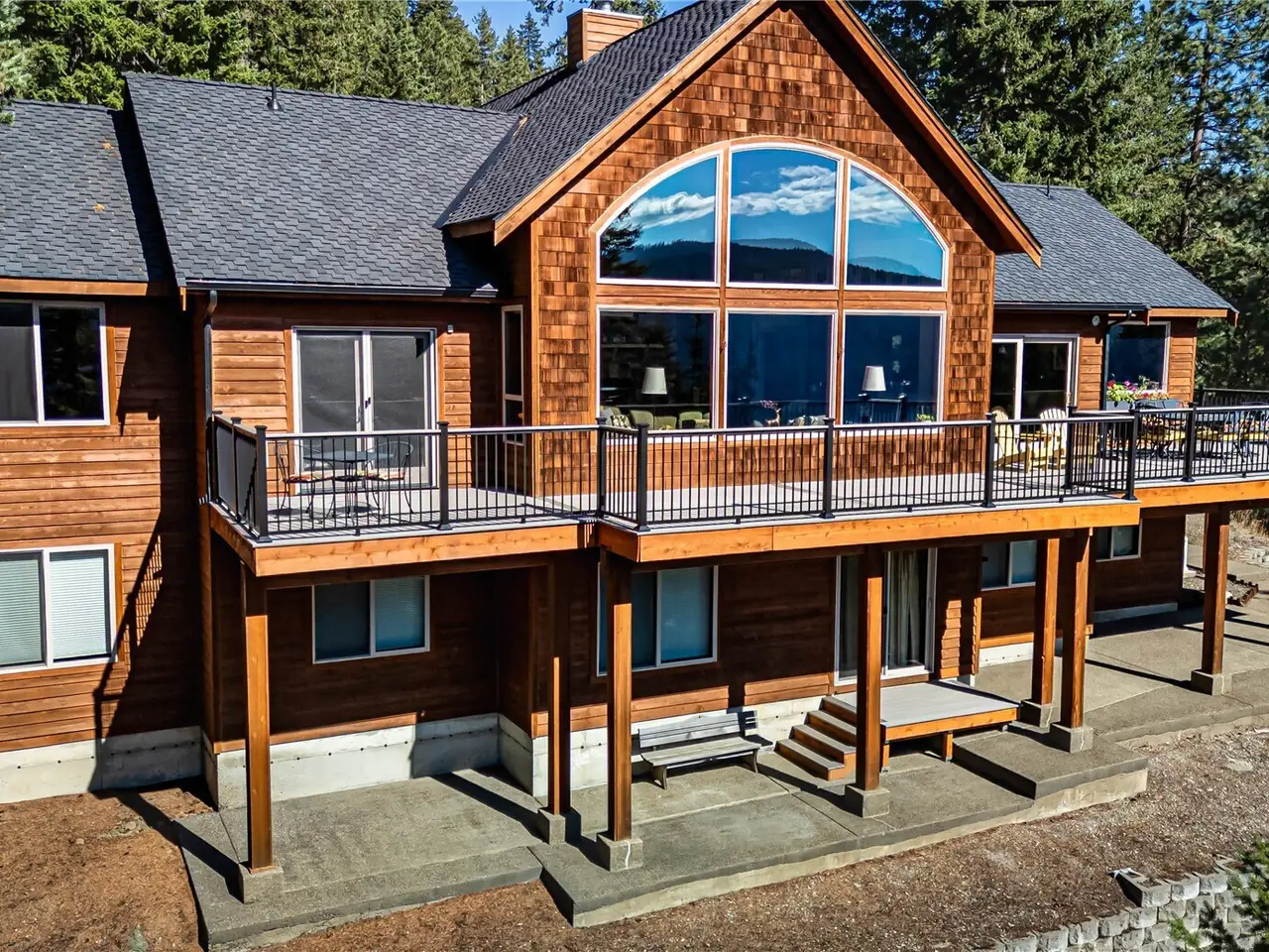 A unique gem! Privacy, views, & craftsmanship in this custom luxury home with views of Lk. Cle Elum in desirable Ridge View Estates has too many special features to list (see the attached docs/pics for more). Custom carved front doors lead into an impressive great room with soaring cathedral ceilings, custom chandeliers, a double-sided gas fireplace, and incredible views of the lake. Open floorplan with a large, beautiful kitchen & primary bdrm. suite on the main floor with French doors to the wraparound deck. Downstairs has a large family/rec room, 3 bdrms., 2 full baths, & office. Views of the lake from every room! Generator & all applances incl. Paved gated driveway, garage, new roof, deck, carpet & so many upgrades.