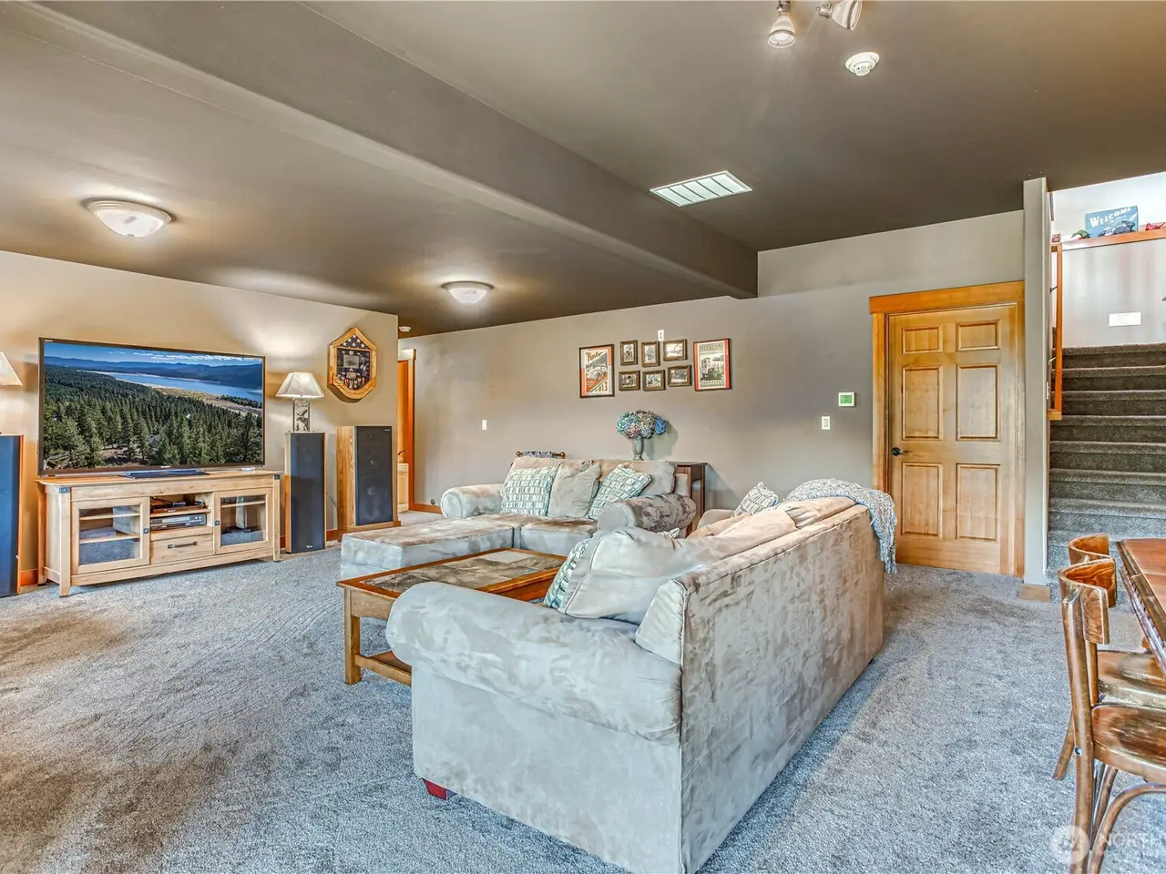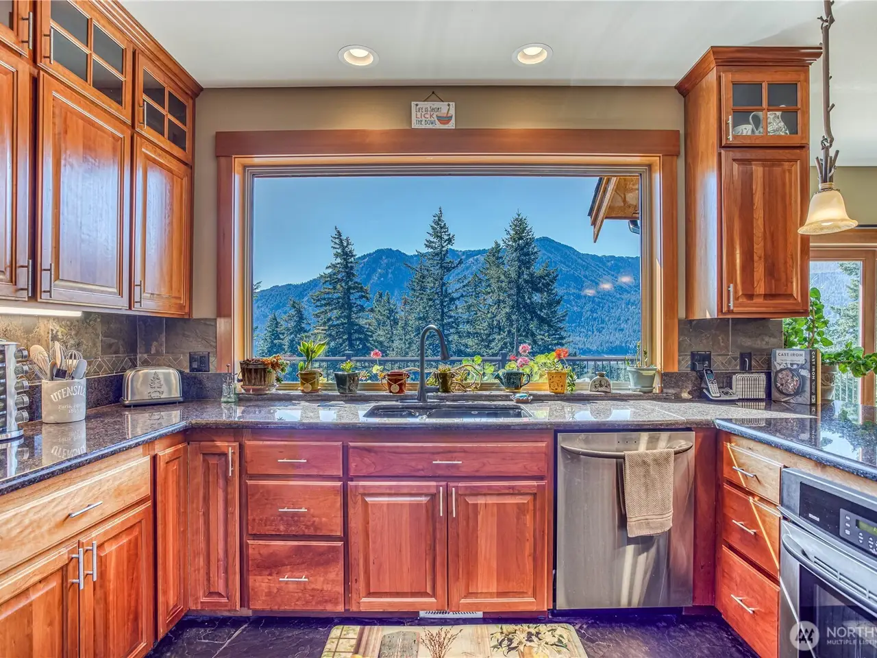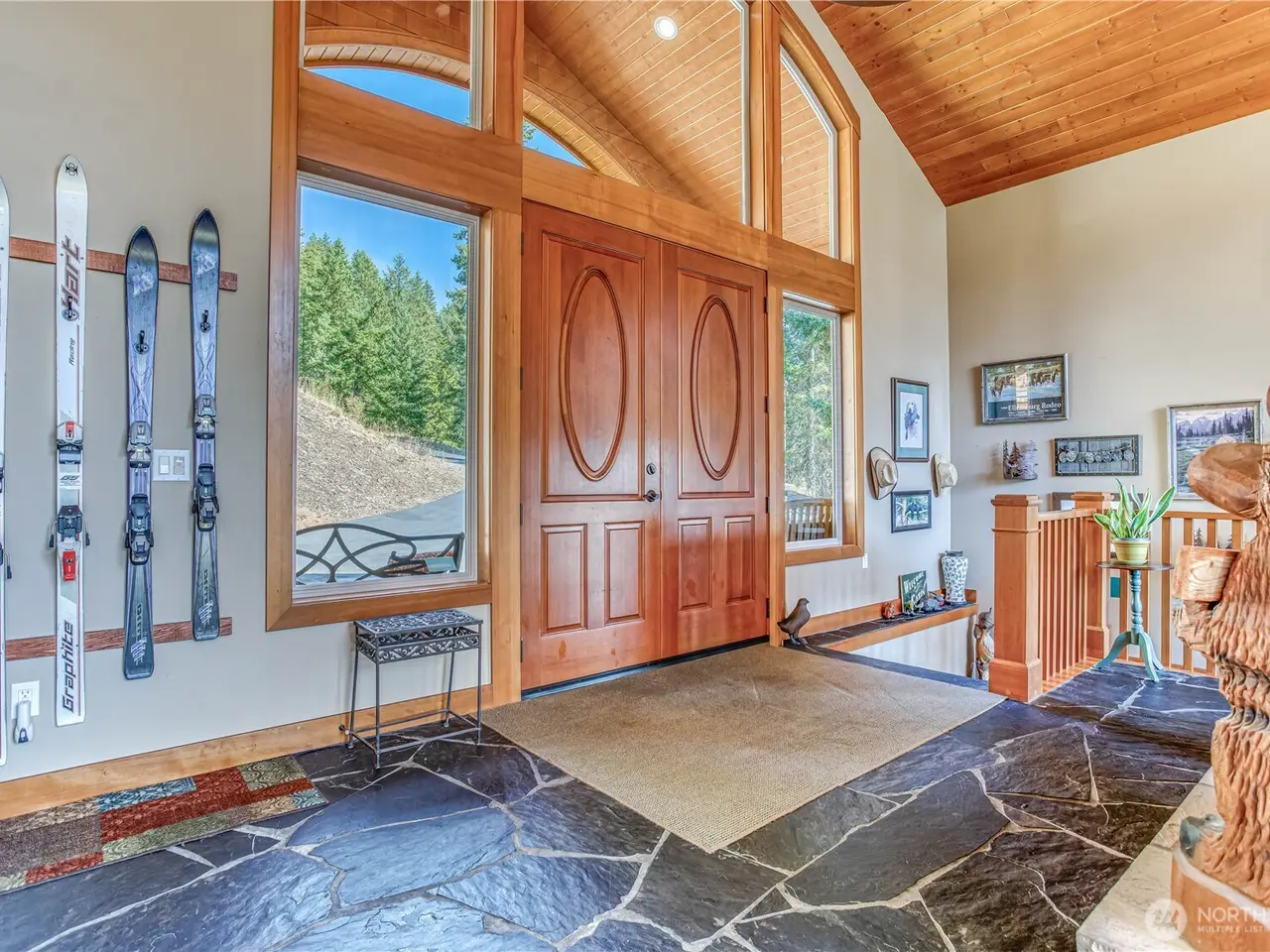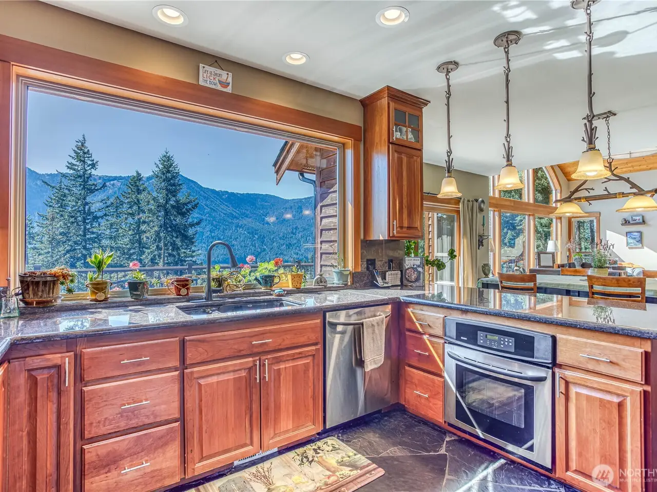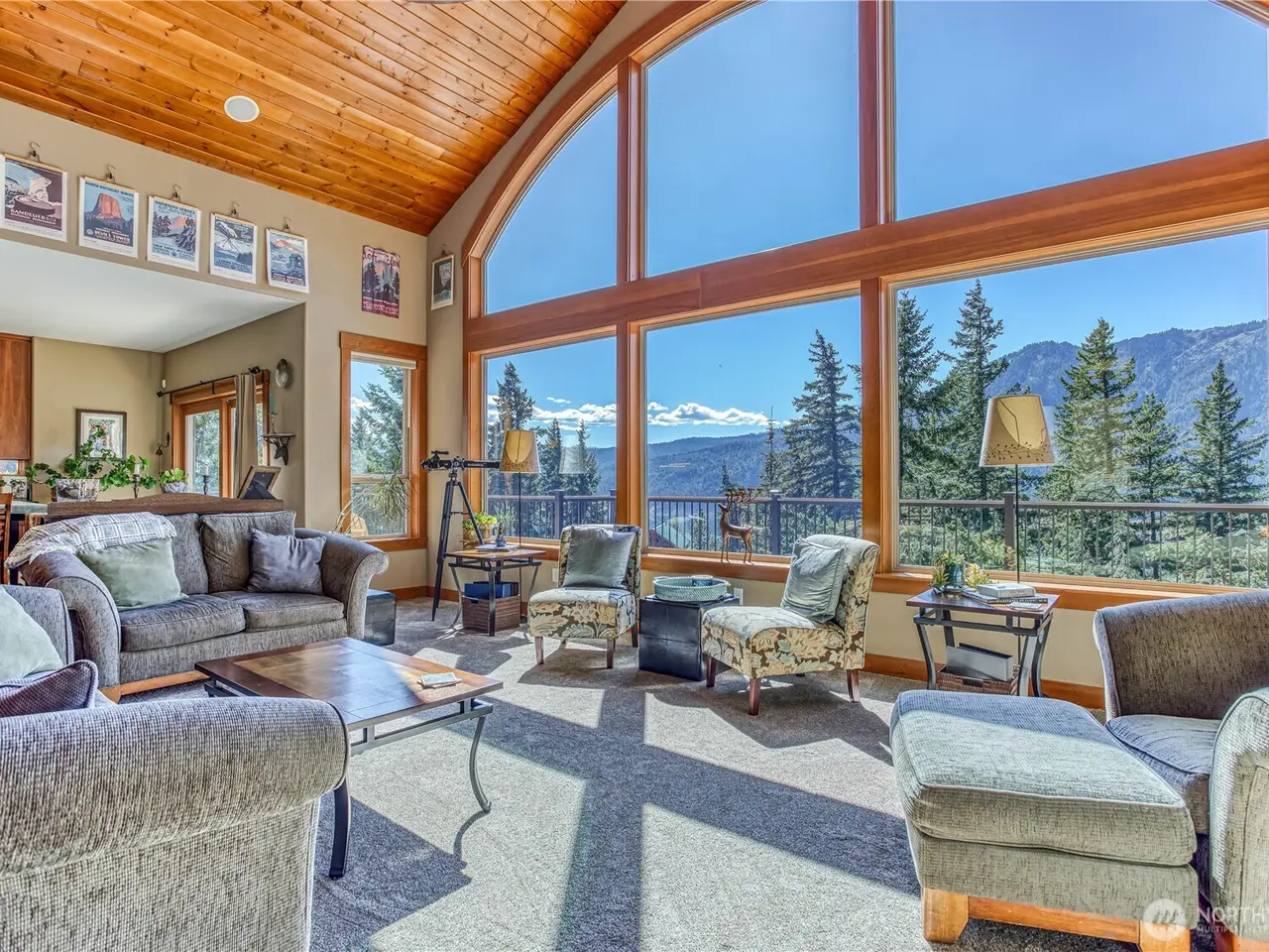 A unique gem! Privacy, views, & craftsmanship in this custom luxury home with views of Lk. Cle Elum in desirable Ridge View Estates has too many special features to list (see the attached docs/pics for more). Custom carved front doors lead into an impressive great room with soaring cathedral ceilings, custom chandeliers, a double-sided gas fireplace, and incredible views of the lake. Open floorplan with a large, beautiful kitchen & primary bdrm. suite on the main floor with French doors to the wraparound deck. Downstairs has a large family/rec room, 3 bdrms., 2 full baths, & office. Views of the lake from every room! Generator & all applances incl. Paved gated driveway, garage, new roof, deck, carpet & so many upgrades.