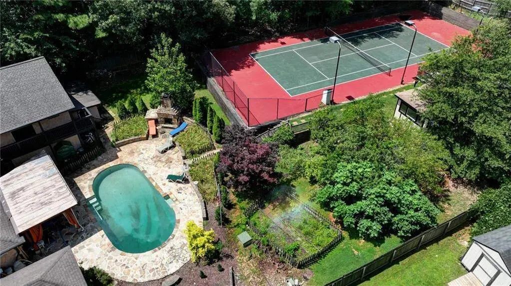 Welcome Home to your Roswell estate! This professionally landscaped (acre) property boasts a main house with 5 bedrooms, 4 and a half baths, including the primary on the main. Space over the garage has all utilities available and ready to be built out to your specifications (gym, office, studio, guest suite...anything you want!) Spacious chef's kitchen with professional appliances, opening to generous areas for living and entertaining, expansive windows allowing for copious amounts of natural light, and endless possibilities. Walkout to the sparkling pool and pool house, and on to the tennis court, and guesthouse. Finished basement and temperature controlled wine room. This private oasis is close to Canton Street and all that downtown Roswell has to offer, including dining, culture, entertainment, as well as Roswell's coveted schools. Priced to sell with room for improving, this is a do not miss!