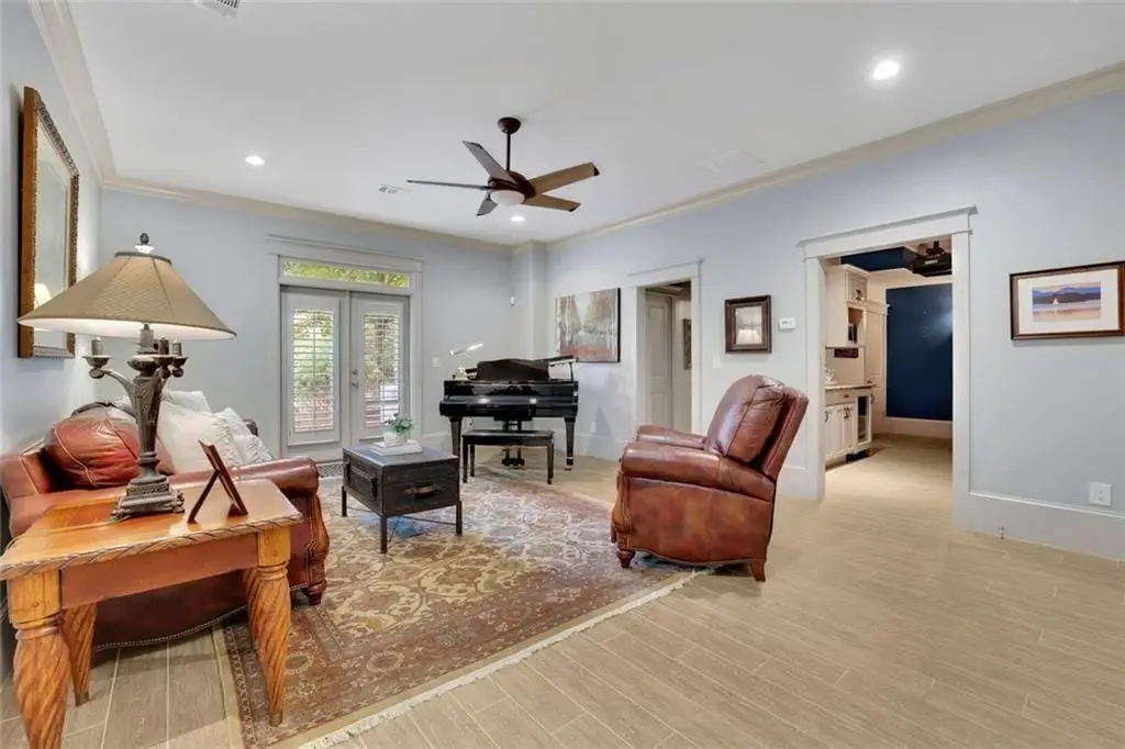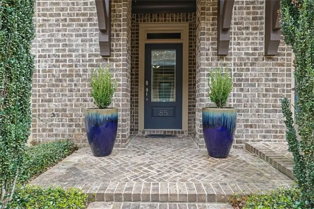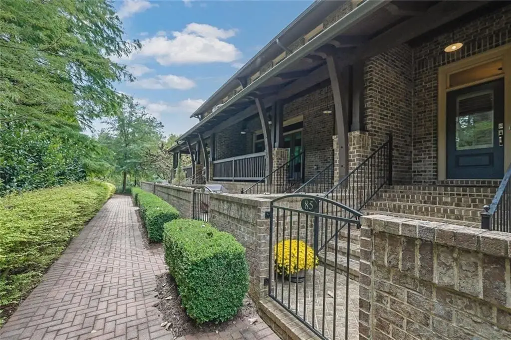 Tucked down a quaint brick path framed by trees, this stunning brownstone in the coveted Providence community redefines in-town living in Historic Roswell - just steps from the vibrant shops and restaurants of Canton Street. Enter through a charming iron gate to an expansive brick courtyard with a built-in grill, dining area, and firepit. A rocking chair front porch overlooks the lushly landscaped entry, offering both beauty and privacy. Inside, the main level boasts 10-foot ceilings, engineered hardwoods, and three elegant living spaces that live like a single-family home. A curved wall defines the spacious family room featuring a stone gas fireplace with wood mantle, built-in bookcases, and window seats. Two sets of French doors open to the front porch while side windows bathe the space in natural light. A gracious dining area easily accommodates a banquet-sized table for gatherings with family and friends. The gourmet kitchen is a true showpiece with custom cabinetry, exotic granite island, and a keeping room. Holiday entertaining is effortless with a 60 six-burner Thermador range with griddle and double ovens, a pot filler, paneled Sub-Zero refrigerator, wine bar with cooler, and walk-in pantry. Upstairs, the primary suite retreat offers a sitting area, beverage fridge, custom walk-in closet, and spa bath with soaking tub and frameless shower. Two secondary bedrooms with large closets and a full bath complete this level. The finished terrace level adds incredible flexibility with a true theater room and serving bar, full bath, flex space for office/gym/guests, and a built-in mudroom. The home is elevator-capable for added convenience. Providence offers pocket parks, an outdoor pavilion with fireplace, and a dog park - all just steps from Roswell's dining, shopping, coffee shops, and festivals. 85 Webb Street is a stunning retreat in the heart of it all. Love Where You Live!