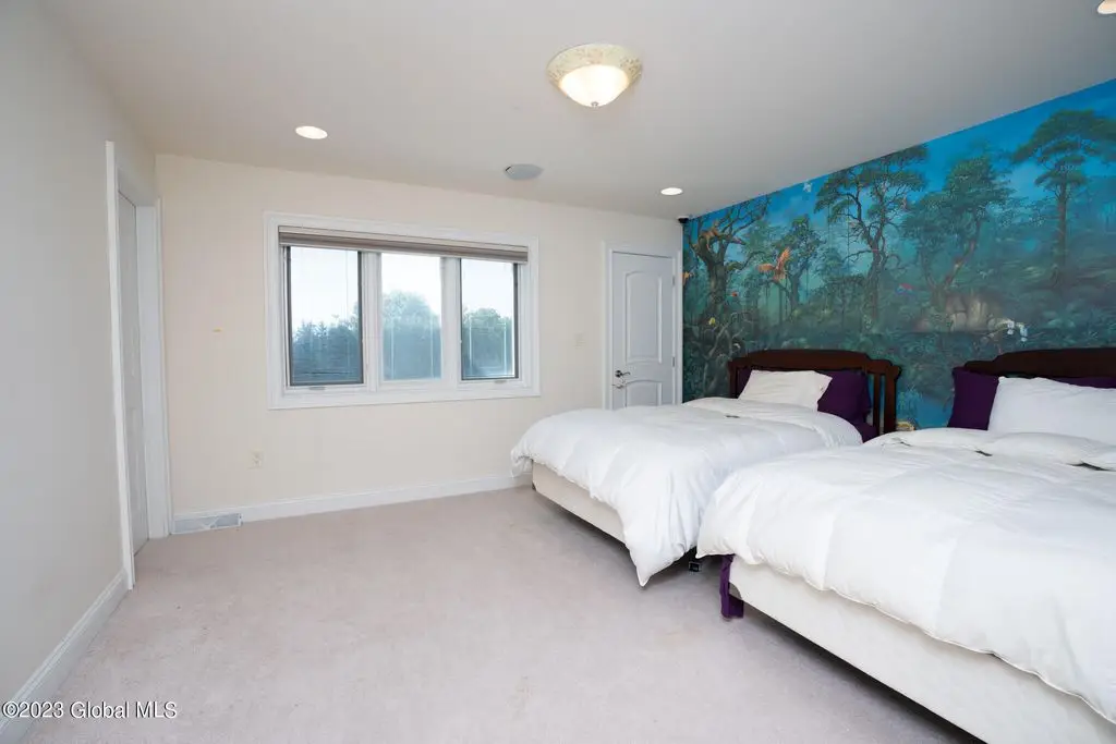 This magnificent estate has a mini, private amusement park w/ helicopter pad! Enjoy huge water slide in heated salt-water pool, go-kart track w/ go-karts included, tennis court, koi pond & volcano display. Two-3 car, temperature controlled oversized garages (6 bays). House comes furnished w/ 5,132 sq. ft. 6 BR, 5 1/2 baths. Surrounded by 30 acres of land, just 20 min from Albany Int'l Airport & 18 min from Sch'dy Airport. Gorgeous, coffered ceilings, gourmet kit, game room & many more upscale features like 4-person jetted tub in one of 3 primary suites! Includes an in-law or guest suite w/ separate entrance. Soak in outdoor hot tub or hang out at the fire pit. Enjoy fall foliage, apple picking, hiking & ski at nearby Maple Ski Ridge or Gore Mt. Close to Saratoga & Lake George. Must see!