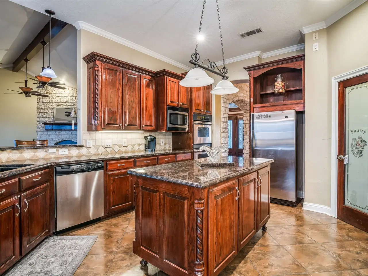 Generous counter space and center island in the kitchen