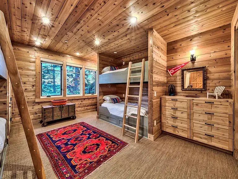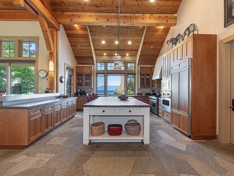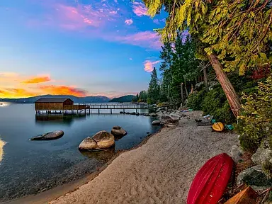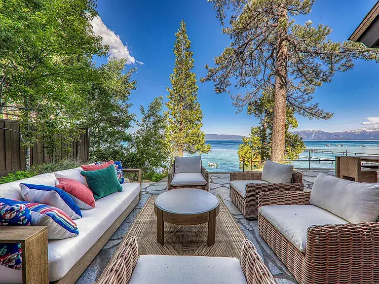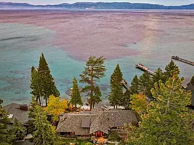 Amazing Rubicon Lakefront with a private sandy cove and one of the few houses to still have a sandy beach even during high water years. Zodiac to be included in sale for boat taxiing! SELLER FINANCING AVAILABLE AND PROPERTY TRADE OPTION available if you have something that suits seller's needs! This custom-built mountain-style lakefront lodge truly encompasses Lake Tahoe, living in a more pure and genuine capacity than measurable. A once in a lifetime opportunity. Escape from the hustle and bustle of the outside world and indulge in a gathering place that is anxiously awaiting for you to kick-back, relax, reconnect, and smell that mountain air. Feel life giving water, and get back to what's really important. Located on the awe-inspiring, iconic West Shore of Lake Tahoe, this private sanctuary truly embraces the serenity of its surroundings. Perfectly situated on a pristine white sand beach cove, protected from the elements by rock jetties at each end, you can truly indulge in the seclusion and privacy this property provides and soak in the infinite benefits of this natural paradise. Built with unparalleled craftsmanship and attention to every last detail, this custom-built mountain-style lodge offers a truly elevated living experience. Prepare to be captivated by sweeping vistas of both the lake and mountains from almost every room. Featuring four ensuite bedrooms, a lakeview den with fireplace, bunk room, family room, and a massive, jaw-droppingly stunning great room, this property was meticulously designed to create an exceptionally comfortable living space allowing for effortless entertaining all the while, providing plenty of privacy. The breathtaking foyer graced with durable walnut flooring overlooks the great room’s soaring vaulted ceilings with grandiose fir trusses and warmly embraces you with a luxurious yet leisurely feel. An exquisitely custom staircase adorned with hand-forged metal railings leads down to the well-appointed chef's kitchen, featuring stainless steel Viking appliances and elegant fixtures that overlook the crystal clear waters of Lake Tahoe. The great room is open and welcoming. Complete with a custom-built pewter bar, handcrafted in Portugal and a massive granite fireplace, this spacious yet cozy gathering place is where cherished memories are waiting to be made. Simplicity is key to lake and mountain life alike, and the Lutron lighting system that brilliantly illuminates every corner with just a touch of a button certainly helps keep things easy. Travertine in-floor hydronic heating adds to the list of the many thoughtful amenities and the custom hardware throughout adds so much character, giving this gorgeous lakefront lodge a sense of sophistication and class. Finally, retreat to the primary suite, which boasts a granite fireplace, walk-in closet, and spa-like bathroom with shower stall and soaking tub, allowing you to unwind and marvel at those captivating turquoise Tahoe waters after a long day of playing outside. Enjoying the lake is of course #1 and with 4 buoys (2 permitted) and you can have all the lake toys you've always dreamed of, accessible via your own PRIVATE white sand beach cove! Attention to every single detail offers as much heartwarming comfortability as it does extravagance. It's Tahoe, it's family, it's friends, it's captivating, it's magical and it's absolutely priceless. Property is part of the optional Rubicon Tahoe Owner's (RTO-South Beach) HOA. The HOA provides beach access, shared pier, buoy rentals, water sport equipment storage (i.e., paddleboards and kayaks), and a volleyball court.