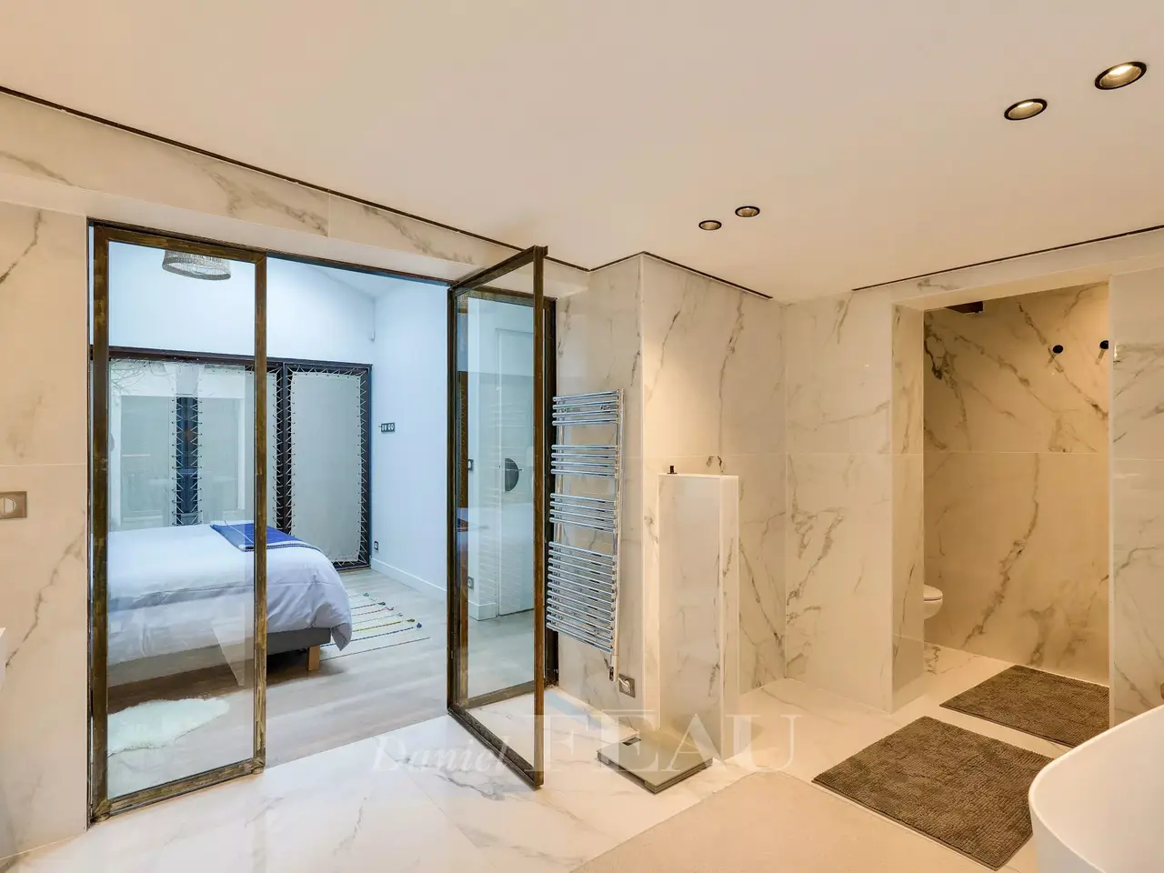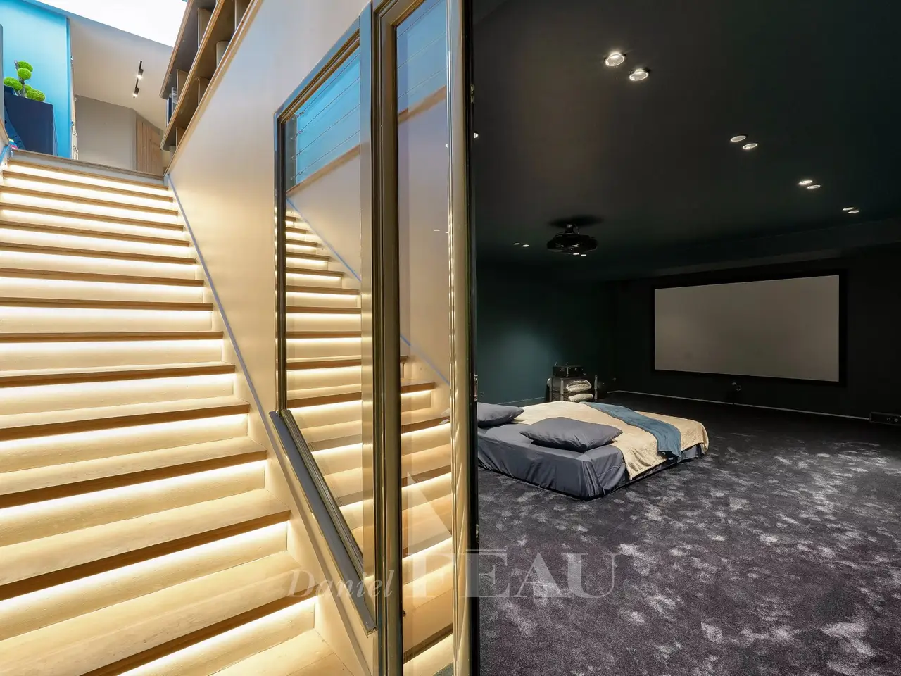 This superb architect-designed loft-style property offers about 410 sqm of living space. Benefiting from four terraces (157 sqm in total), it includes a spacious living/reception room, an immense equipped kitchen, a utility room, and three elegant suites each with a bathroom and accessing the exterior. On a basement with a swimming pool, a home cinema, a room to be fitted as desired, a sauna, a wine cellar, two shower rooms and a wc. With a two-car garage.