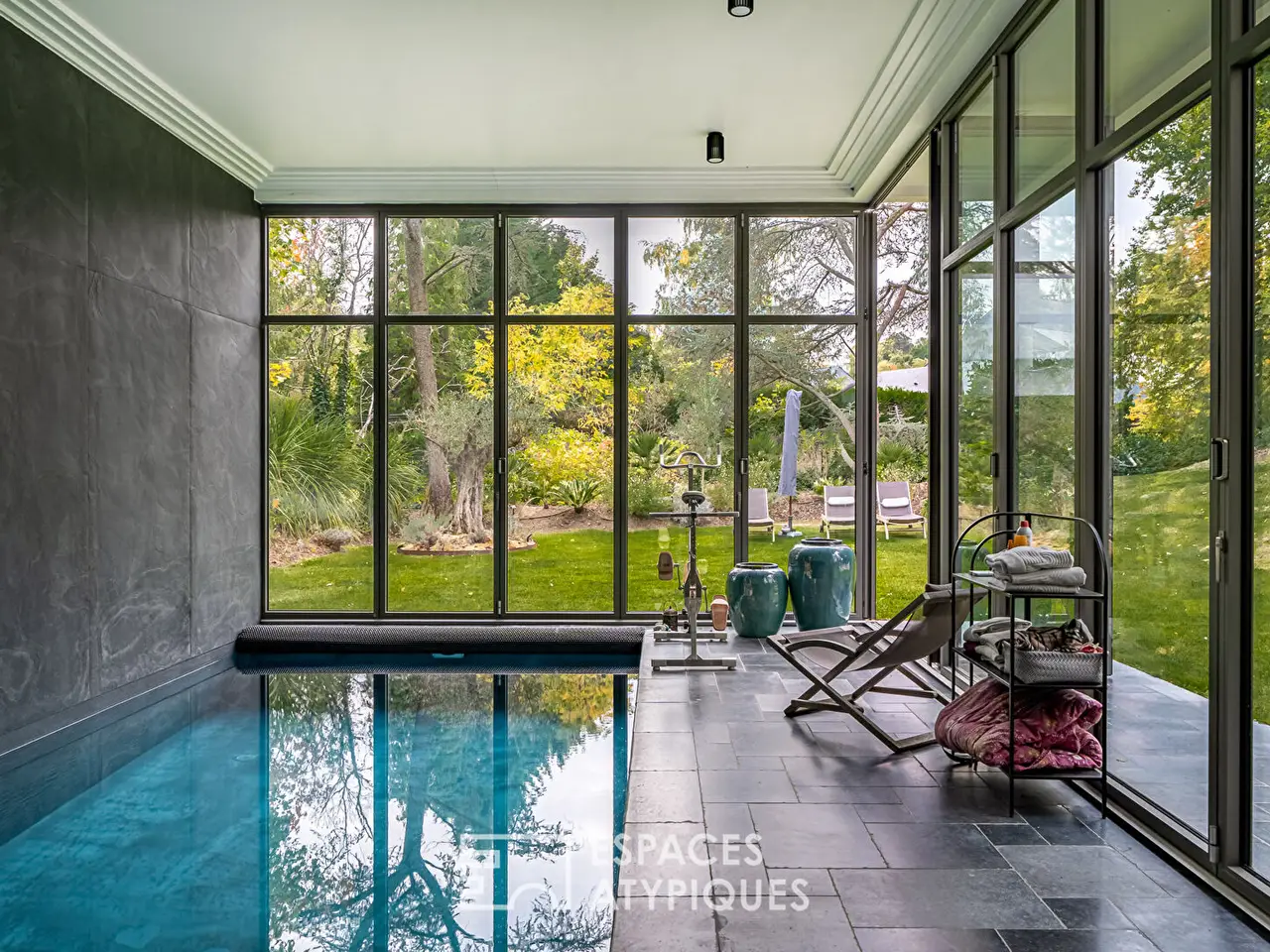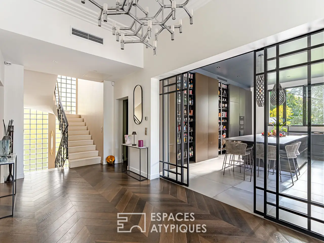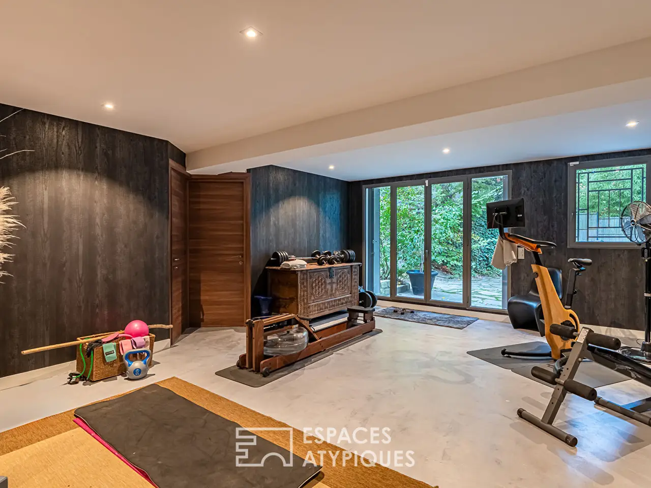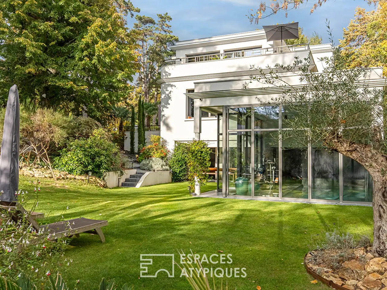 Just minutes from the center of Rueil-Malmaison, nestled in the highly sought-after Hameau de la Jonchere, a private and secure estate bordered by the Saint-Cucufa forest, this exceptional residence offers a rare living experience: that of a contemporary home where refinement blends with the serenity of nature. Behind its discreet gate, the house reveals itself in a refined and contemporary architecture, bathed in light. Its immaculate facades, highlighted by modern lines and generous openings, blend with a verdant garden punctuated by palm trees and mature species. An elegant paved driveway guides the eye to a majestic entrance, while an intimate terrace invites relaxation. The harmony between the building and nature creates an atmosphere of tranquility and rare refinement. Inside, the volumes unfold gracefully. The 80 sqm reception area opens onto large bay windows that let in light and the surrounding nature. The marble fireplace is its vibrant heart, bringing family and friends together in a warm atmosphere. A high-end contemporary 33 sqm kitchen, designed as a living space, where aesthetics and functionality blend in an open, elegant, and welcoming space, while the chosen materials-dekton, wood, and sculptural pendant lights demonstrate the attention to detail and quality of the finishes. A utility room has been designed to combine practicality and discretion. A laundry room, cloakroom, and guest toilet complete this level. Upstairs, the master suite opens onto a private terrace, a custom-made dressing room, and a refined bathroom with a walk-in shower. Two other bedrooms, each with their own shower room or bathroom, one of which has a terrace, make up this intimate level. The garden level, designed for well-being and conviviality, houses a gym, a cinema room, a wellness area with sauna and hammam, a swimming pool with counter-current swimming whose large bay windows open entirely onto the garden to form a single space. An independent apartment of 35 sqm, perfect for receiving or accommodating guests, completes these services. A unique place, where contemporary comfort dialogues with nature, designed for those seeking beauty, calm and fluidity of life. in the immediate vicinity of major roads and the best international schools. Access A86, A13: 3 min EIB de la Jonchere: 5 min walk, Danielou, Passy Buzenval, Lycee International de Saint-Germain-en-Laye. REF. 13376 Additional information * 9 rooms * 5 bedrooms * 2 bathrooms * 3 shower rooms * 1 floor in the building * Outdoor space : 3047 SQM * Parking : 3 parking spaces * Property tax : 5 500 € Energy Performance Certificate Primary energy consumption b : 103 kWh/m2.year High performance housing