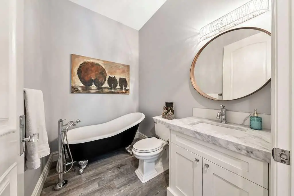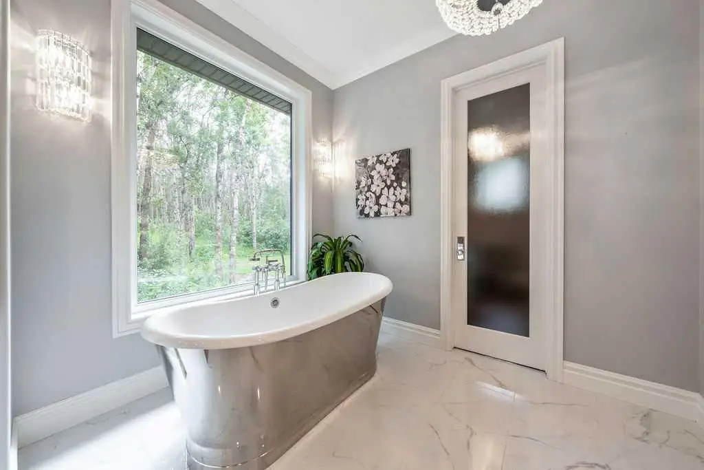 Spa-like bathroom with marble tiles