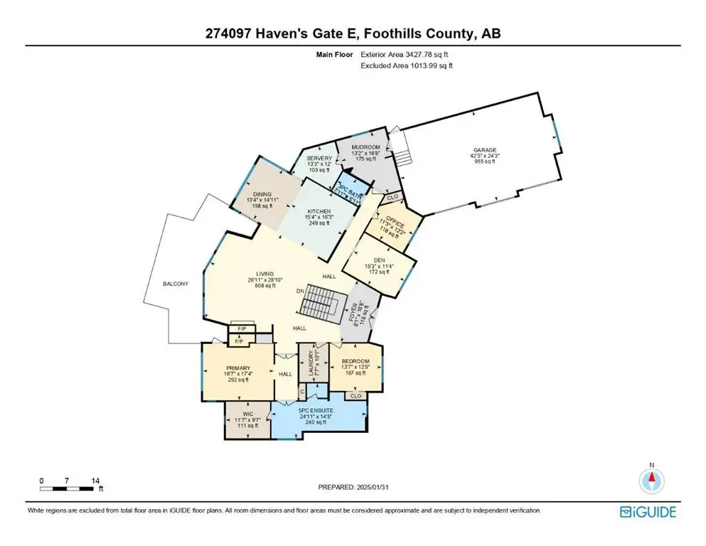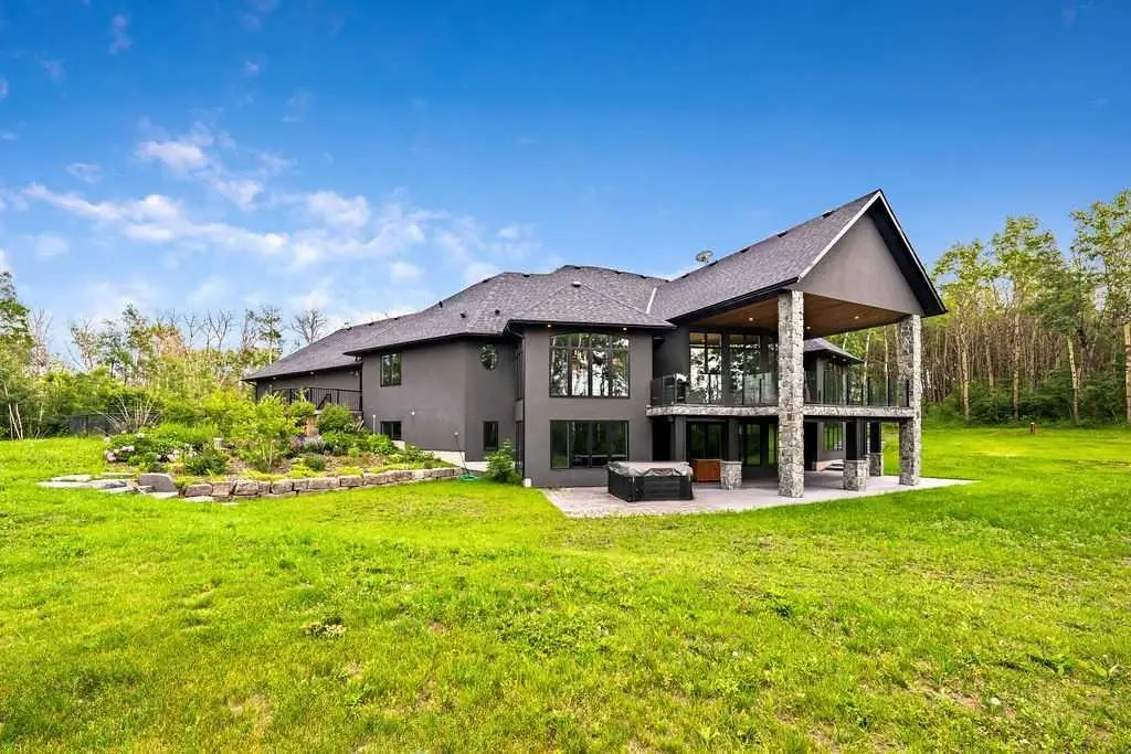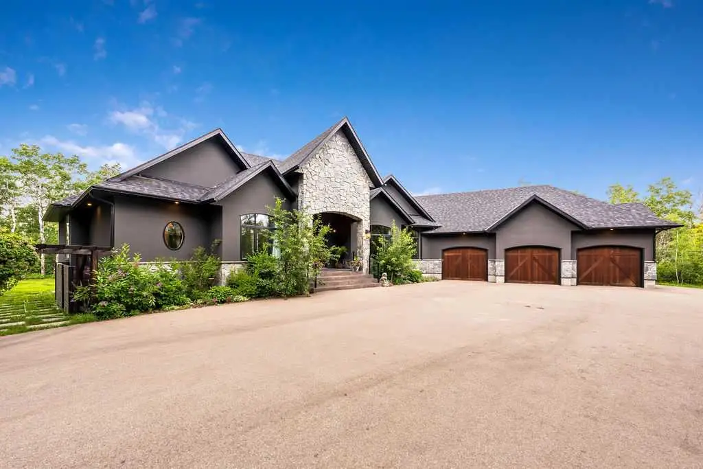 Surrounded by an environmental reserve on both the rear and side of the property, this spacious executive bungalow with walk-out basement is tucked into a beautifully treed 3.16-acre lot, making it a secluded and tranquil homestead. This property is only 10 minutes from the Town of Okotoks and only 14 minutes to Calgary's South Health Campus Hospital, making all amenities just a short distance away. The home is stunning and boasts 3,400 sq ft of impeccably finished living space on the main floor, featuring 3+ bedrooms and remarkable 12-foot high ceilings in the main area, with 10-foot ceilings throughout the rest of the rooms. The spacious main area is perfect for entertaining family and friends, highlighted by expansive windows that bring in natural light and breathtaking views. The gourmet kitchen is equipped with everything a chef could desire, including a massive gas stove with grill, built-in wall oven and warming drawer, and both a full-size built-in fridge and freezer encased in clear maple-stained facades and trim. A huge walk-in pantry off the dining area completes this culinary dream. The private primary suite, accessible through double doors, features a gas fireplace surrounded by sandblasted Italian marble, large windows overlooking the Feng Shui Garden and Rocky Mountains, and a spa-like bathroom with marble tiles, a massive soaker tub next to an oversized picture window, a glass-enclosed shower, double vanity with ample storage, and a huge walk-in closet with interior lit built-in glass-front cabinets. The primary bedroom has a door that opens out to the expansive covered rear deck that wraps across the back of the main floor to the dining room entrance. The undeveloped walk-out basement, with 10-foot ceilings, is ready for customization. With roughed-in plumbing for 3 bathrooms and a separate furnace, this basement presents the perfect opportunity to create a home theater, games room, additional bedrooms, or a secondary suite for multi-generational living (upon approval from Foothills County). There are 2 exterior doors that lead out to a stamped concrete patio that is covered by a pine ceiling fit with pot lights. This impressive acreage property is gated with a paved driveway leading to a 3-car oversized garage and additional RV parking along with a fenced-in dog run that is conveniently located behind the garage. Don't miss the chance to own this exquisite executive bungalow in Haven’s Gate, where luxury meets nature.